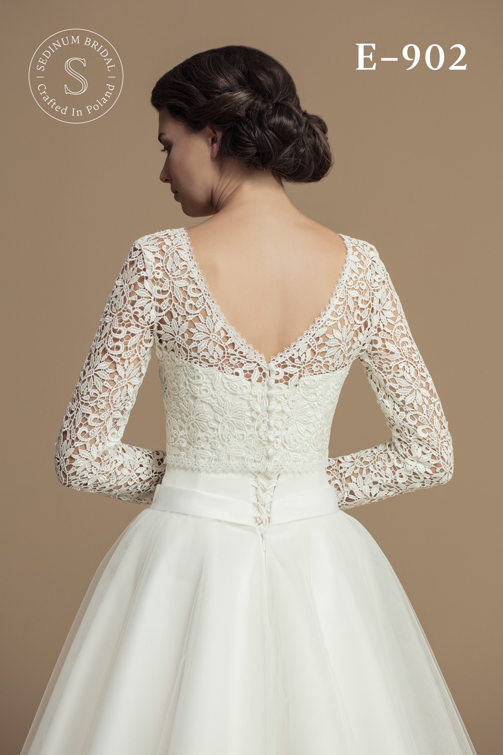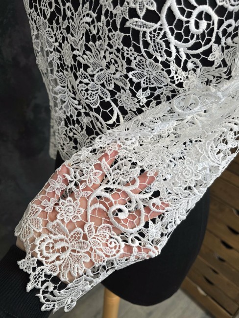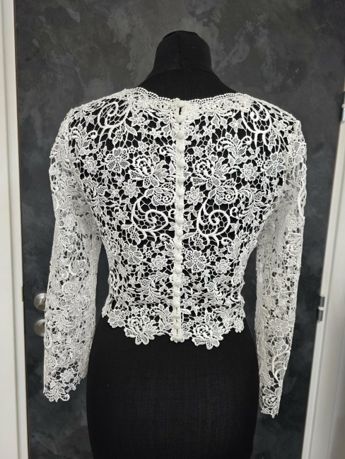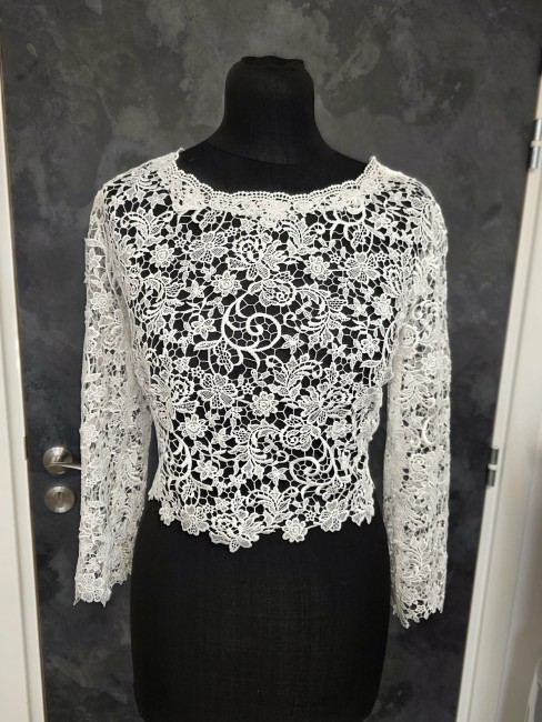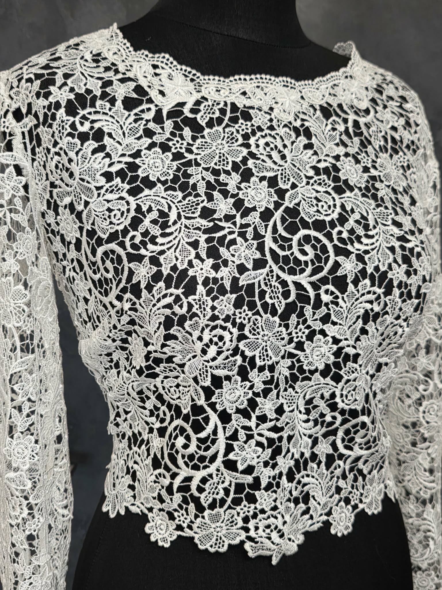 Top en dentelle guipure manches longues style vintage pour mariée ivoire ou blanc