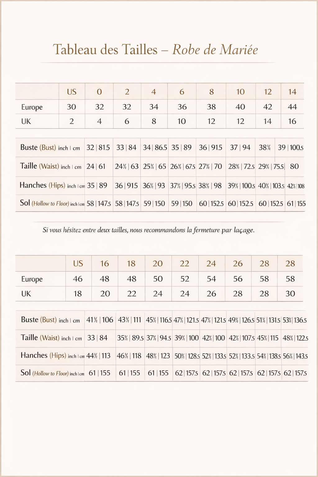 En cas de doute entre deux tailles, la fermeture par laçage est recommandée pour un ajustement optimal.