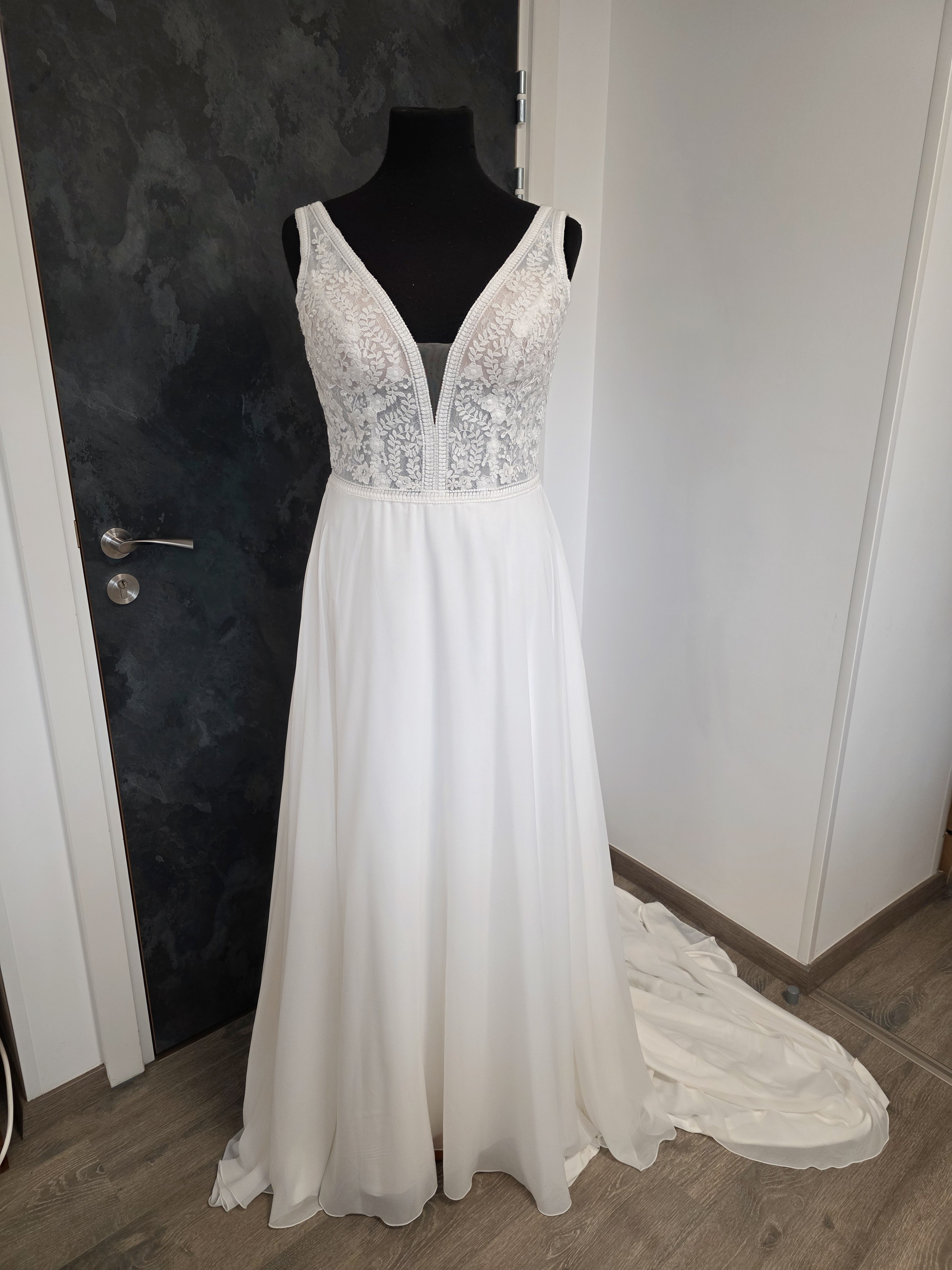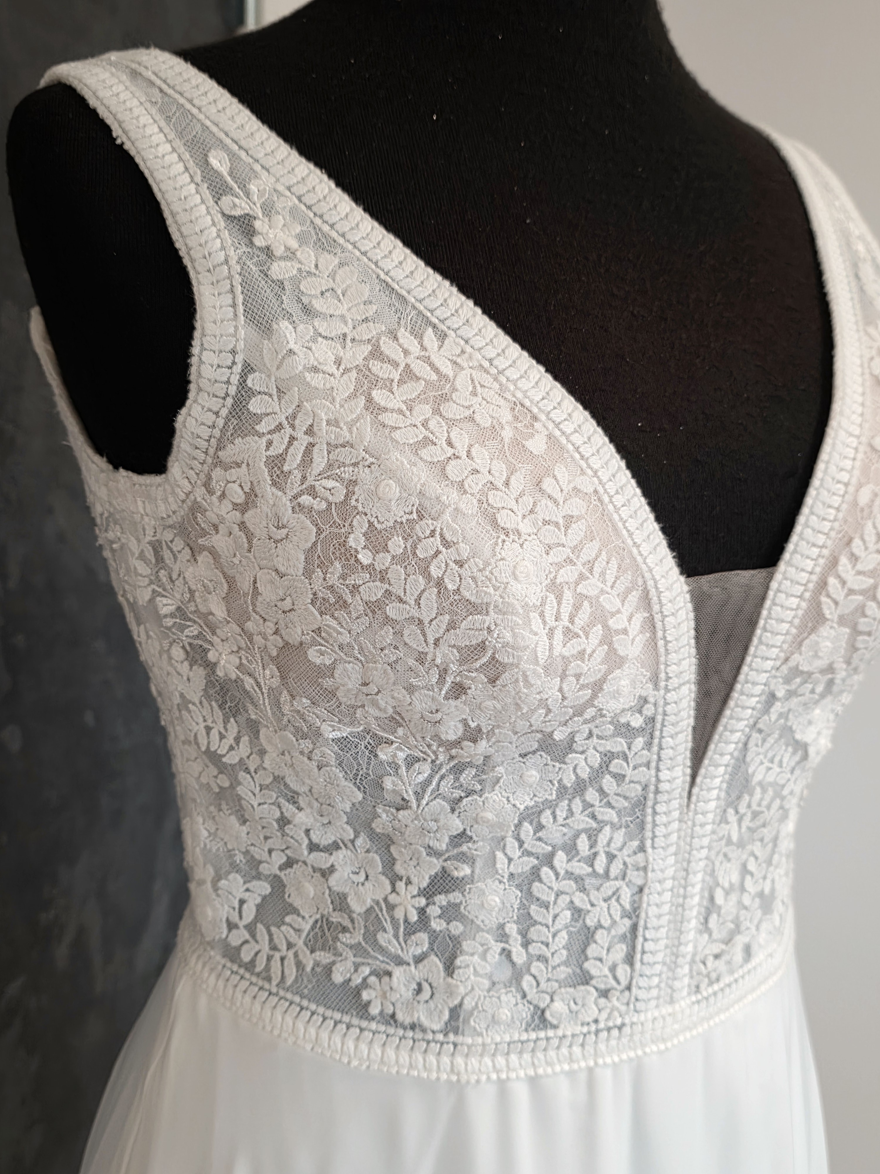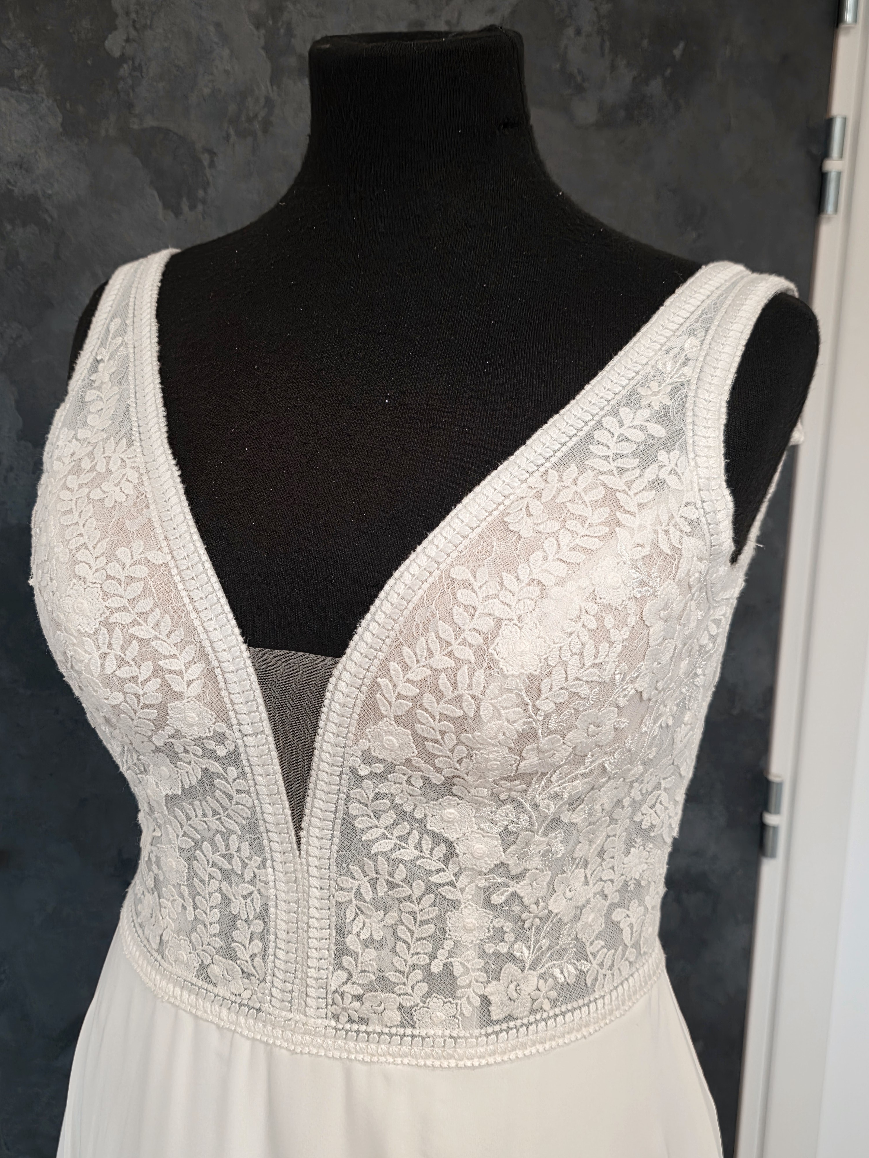 Nous tenons à préciser qu'une robe de mariée doit être ajustée par une couturière professionnelle. Il est extrêmement rare que la robe aille parfaitement sans retouches.