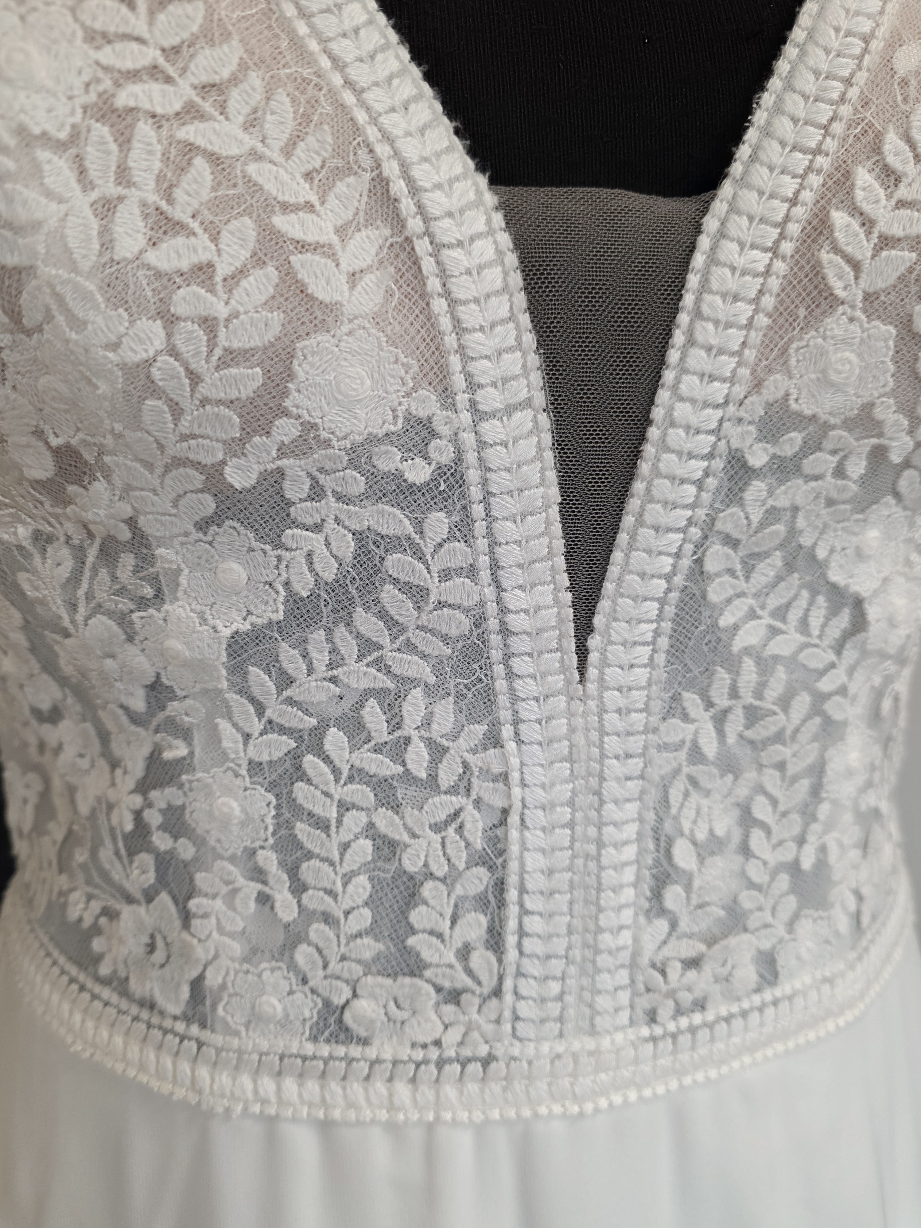 Buste en tulle et dentelle motif feuilles, dos boutonné.