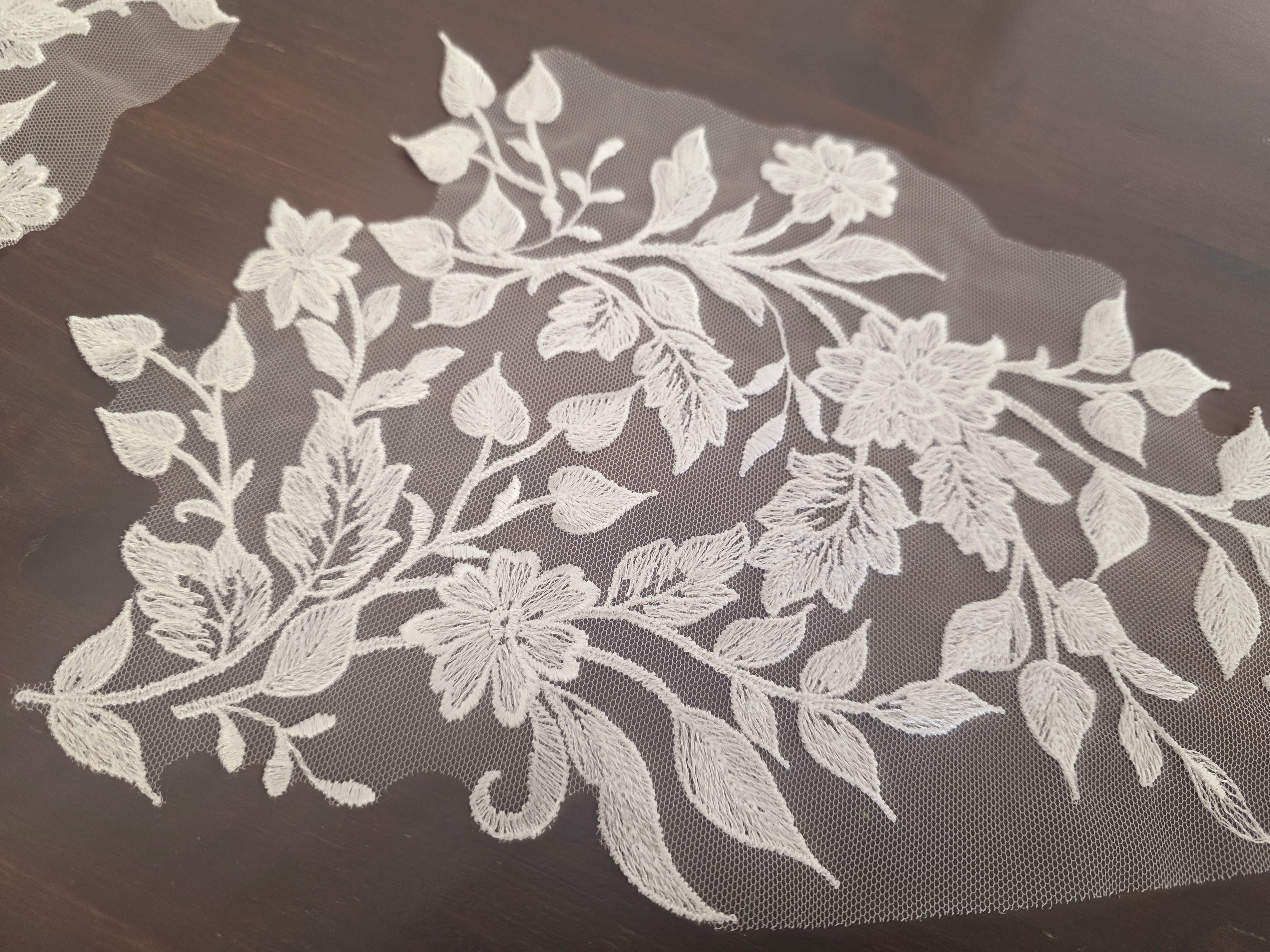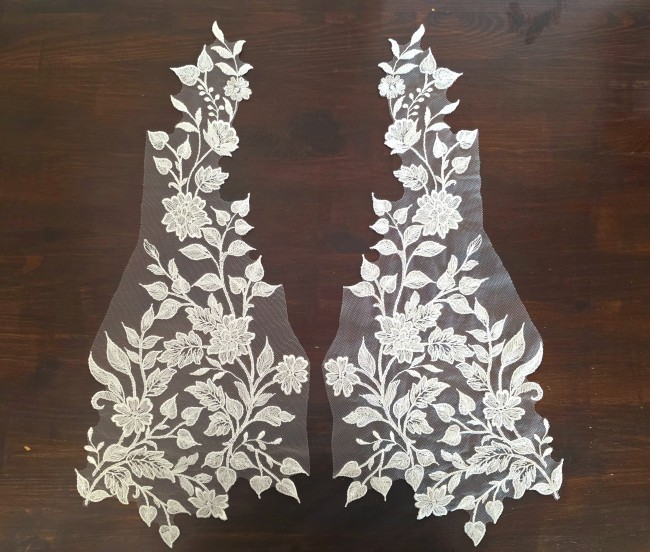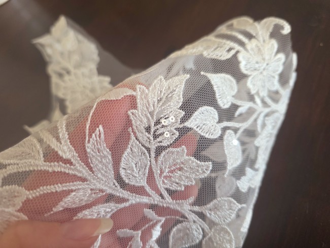 Applications en dentelle légère avec une finition époustouflante et des sequins brodés