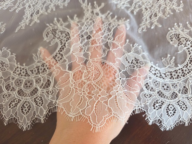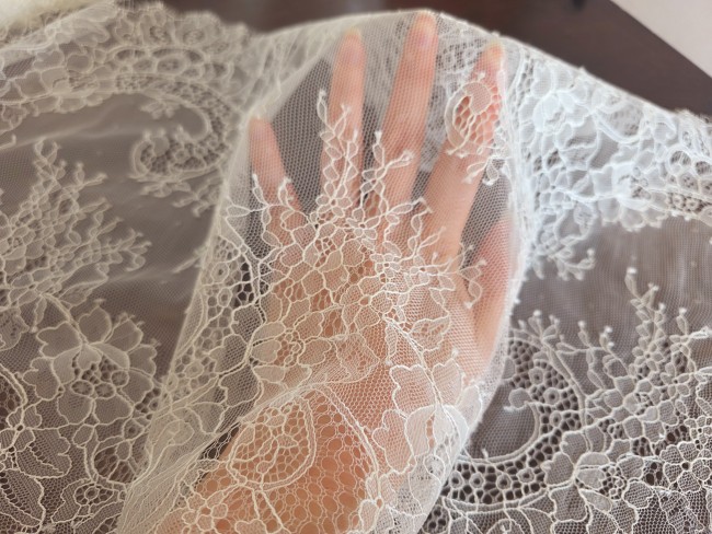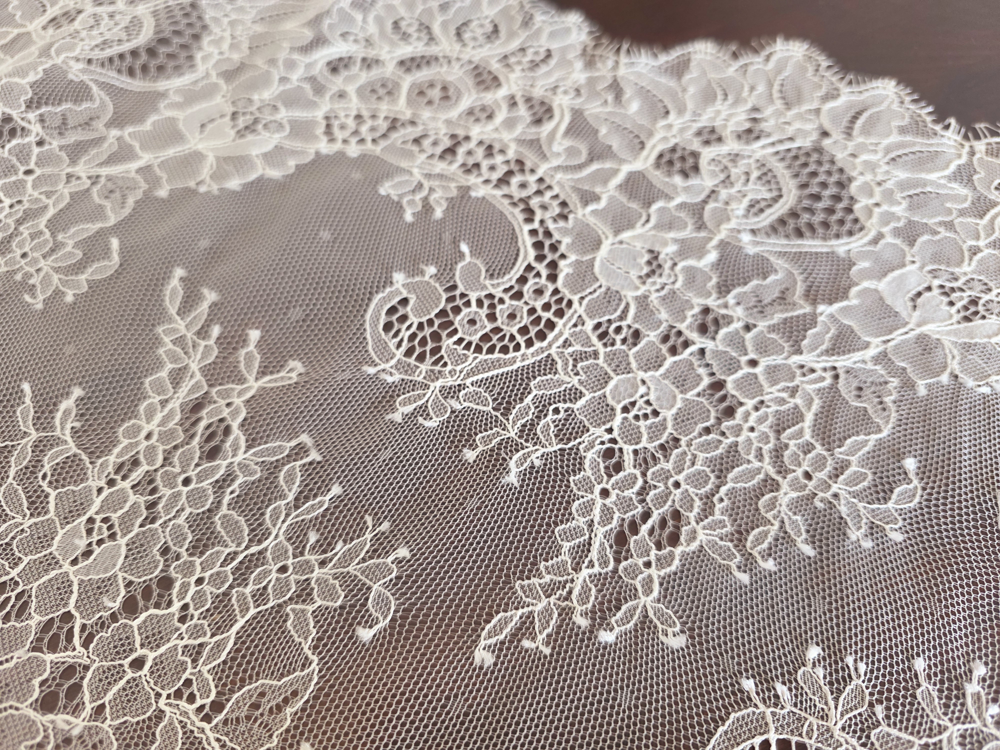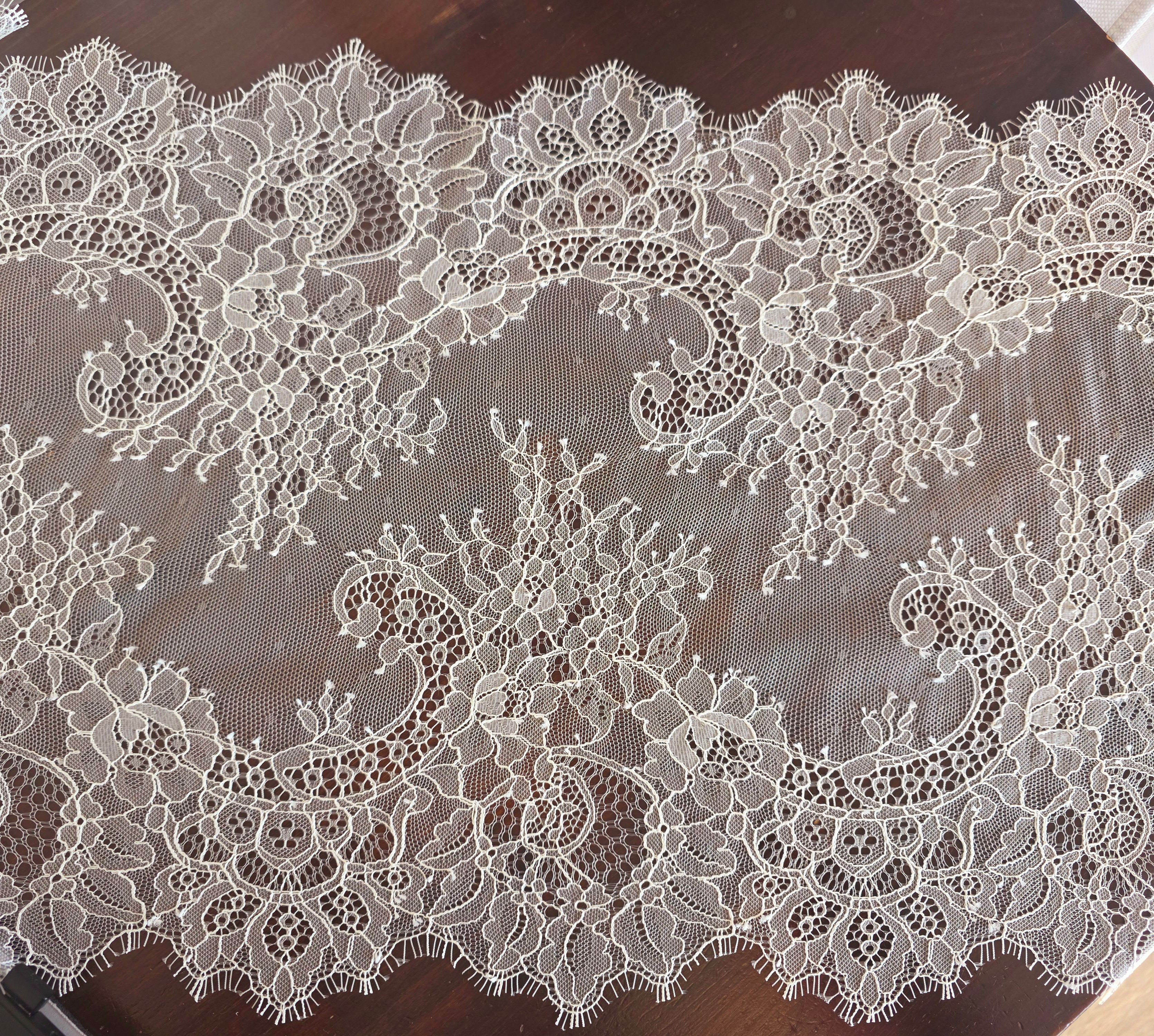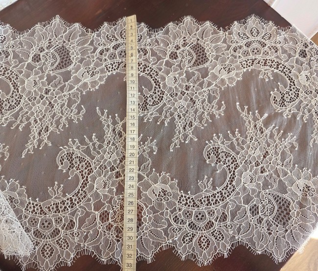 Fournitures pour coudre une robe de mariée. Dentelle, tissus, appliqués, galons, boutons. Robes et accessoires pour la mariée.
