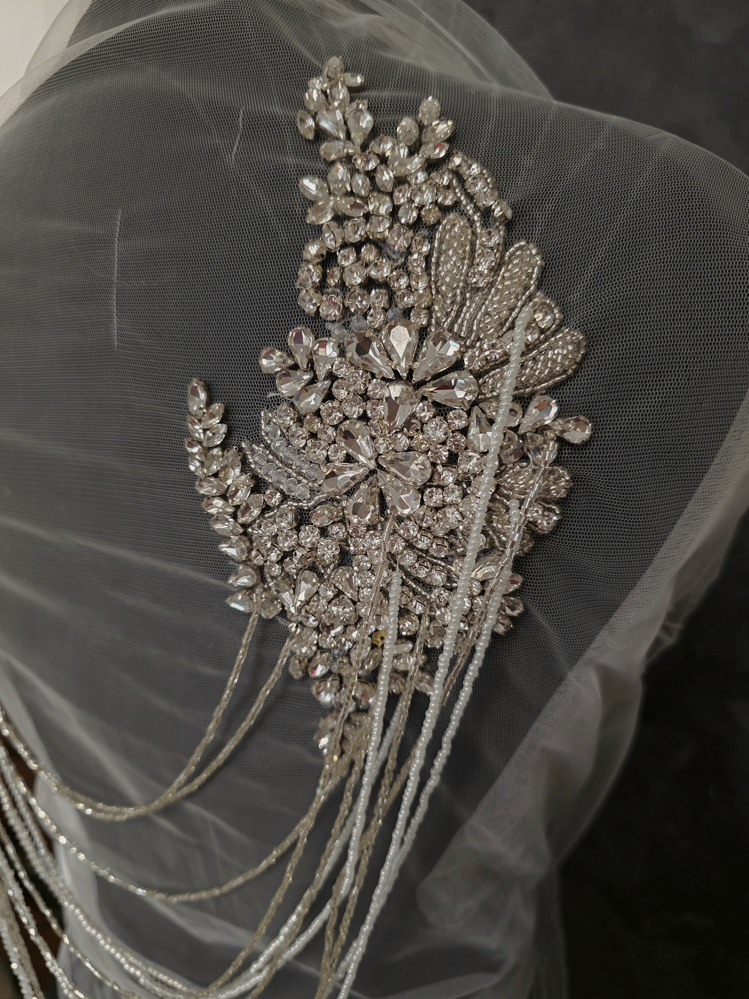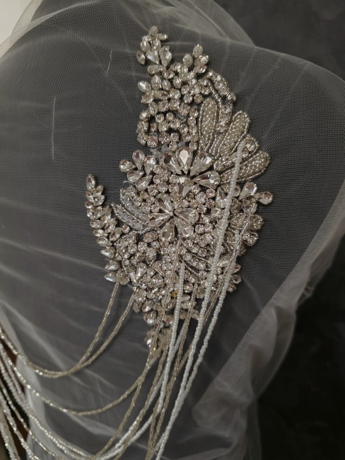 Motif dos strass avec chute de perles pour dos robe de mariée ou cocktail