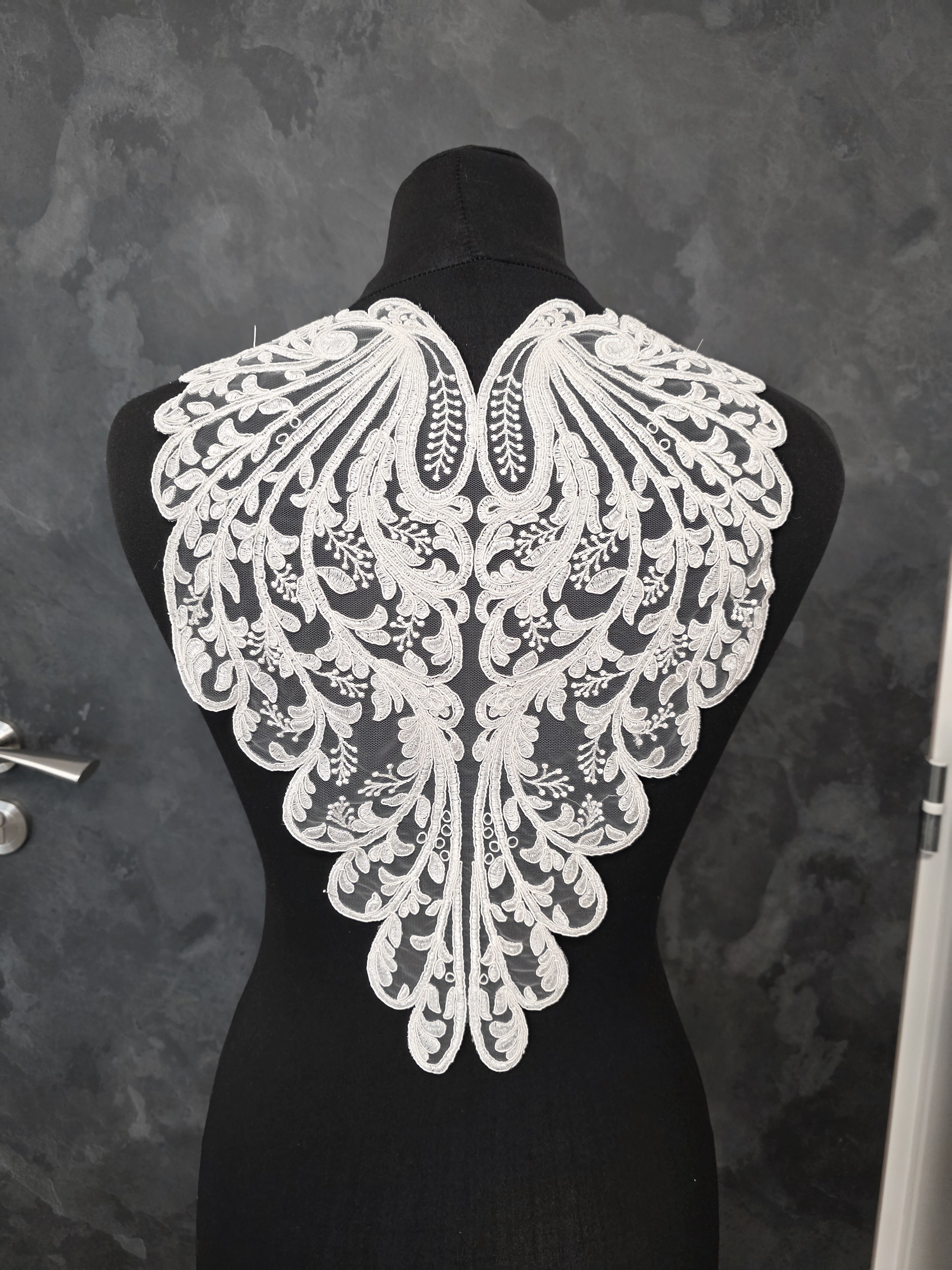 Motif dos en dentelle ivoire pour dos de robe de mariée