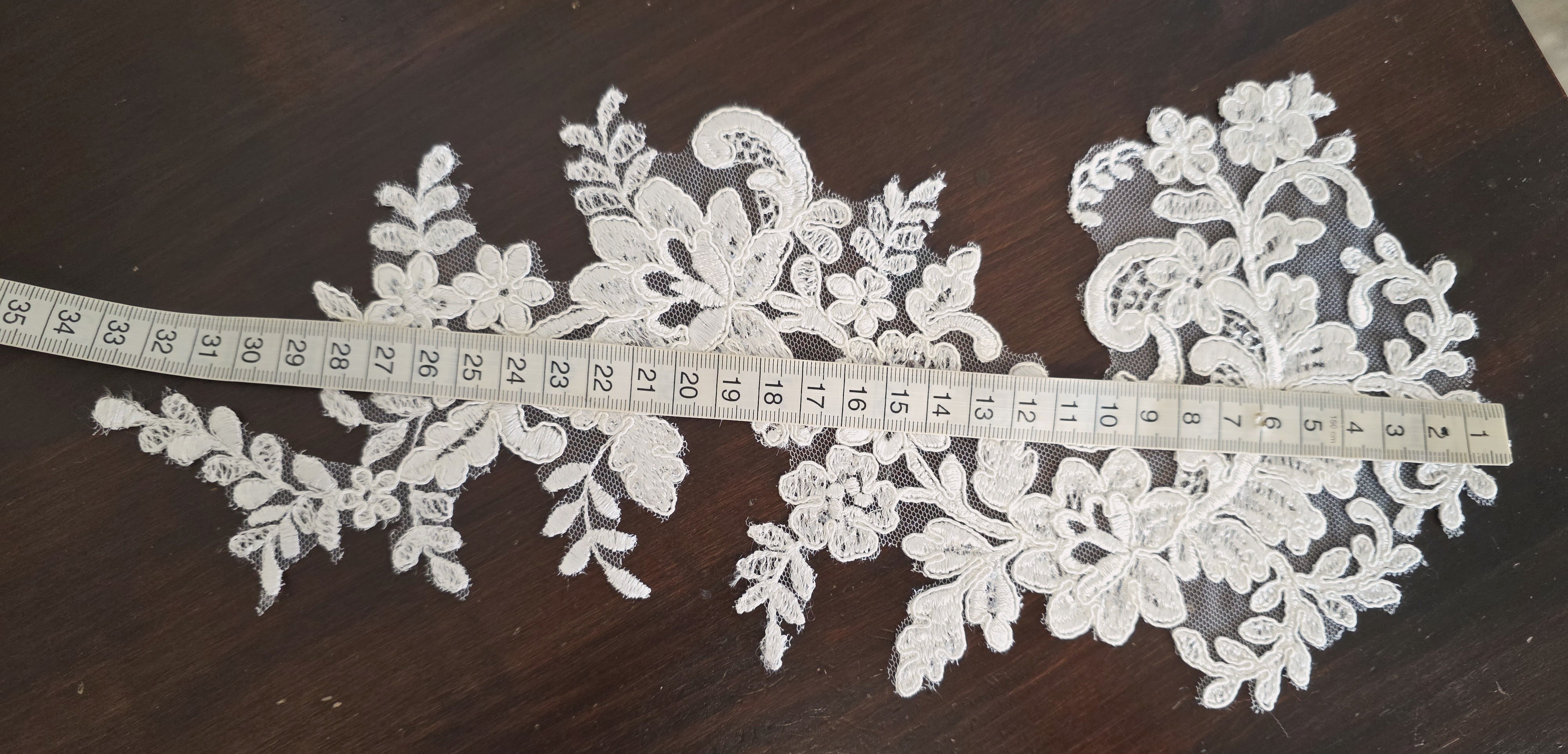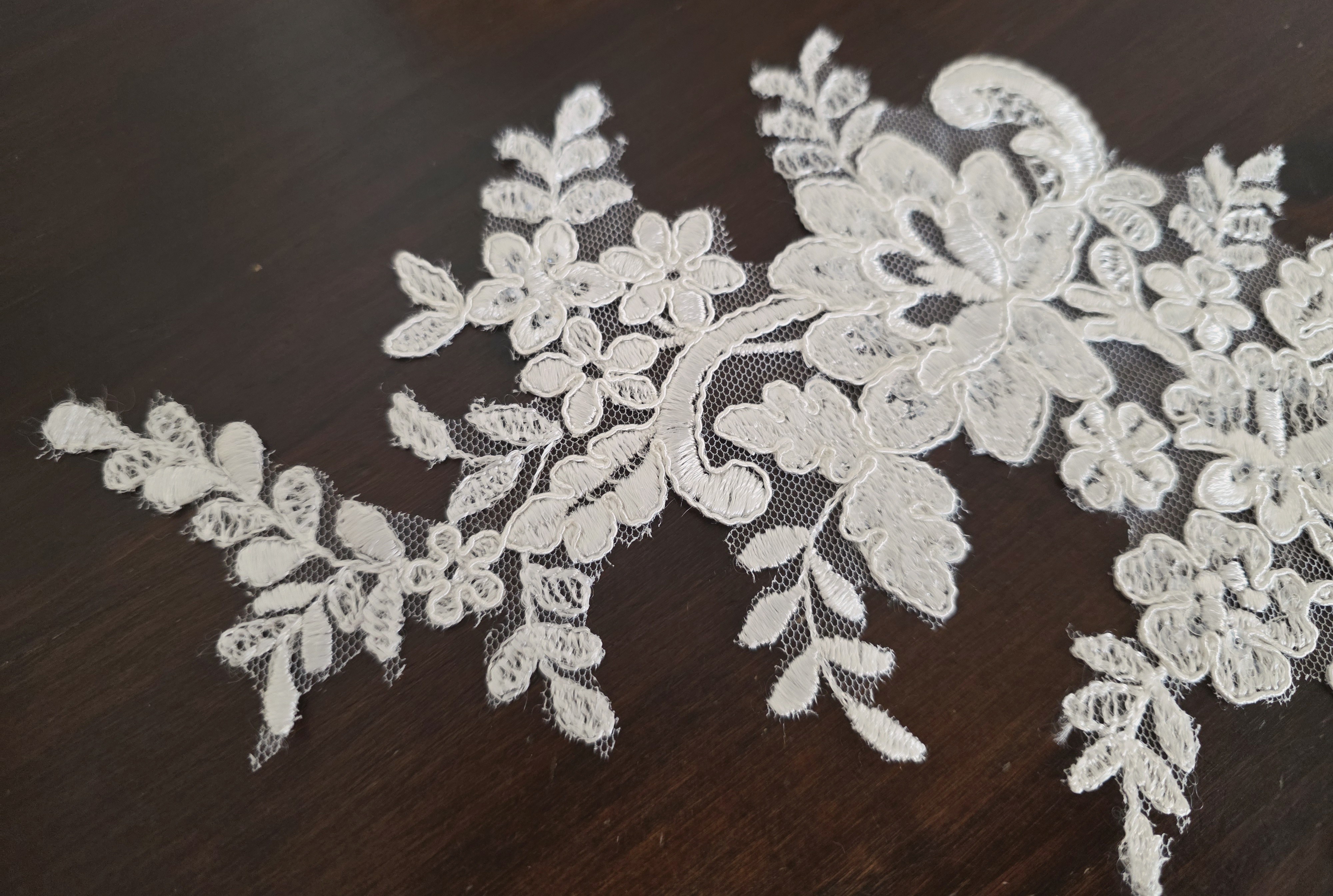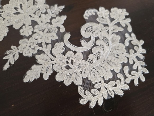 Grand motif ivoire brillant brodé de sequins pour robe de mariée