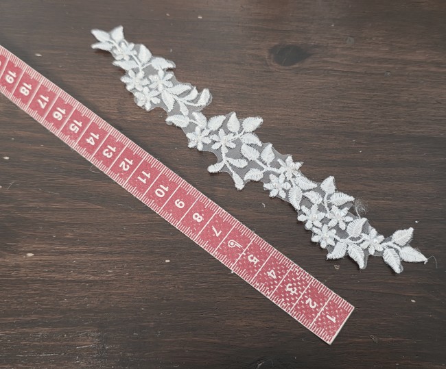 Fournitures pour coudre une robe de mariée. Dentelle, tissus, appliqués, galons, boutons. Robes et accessoires pour la mariée.