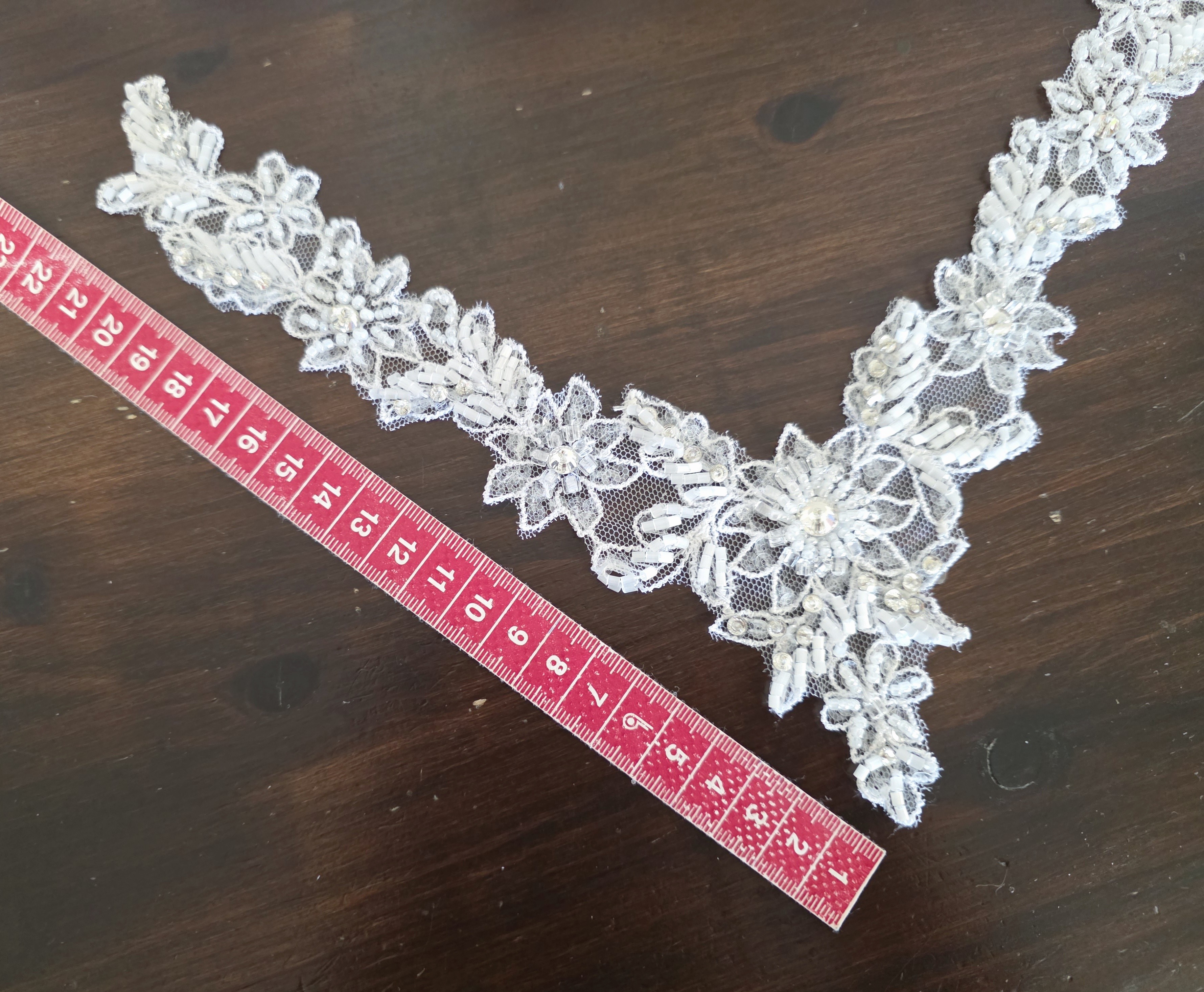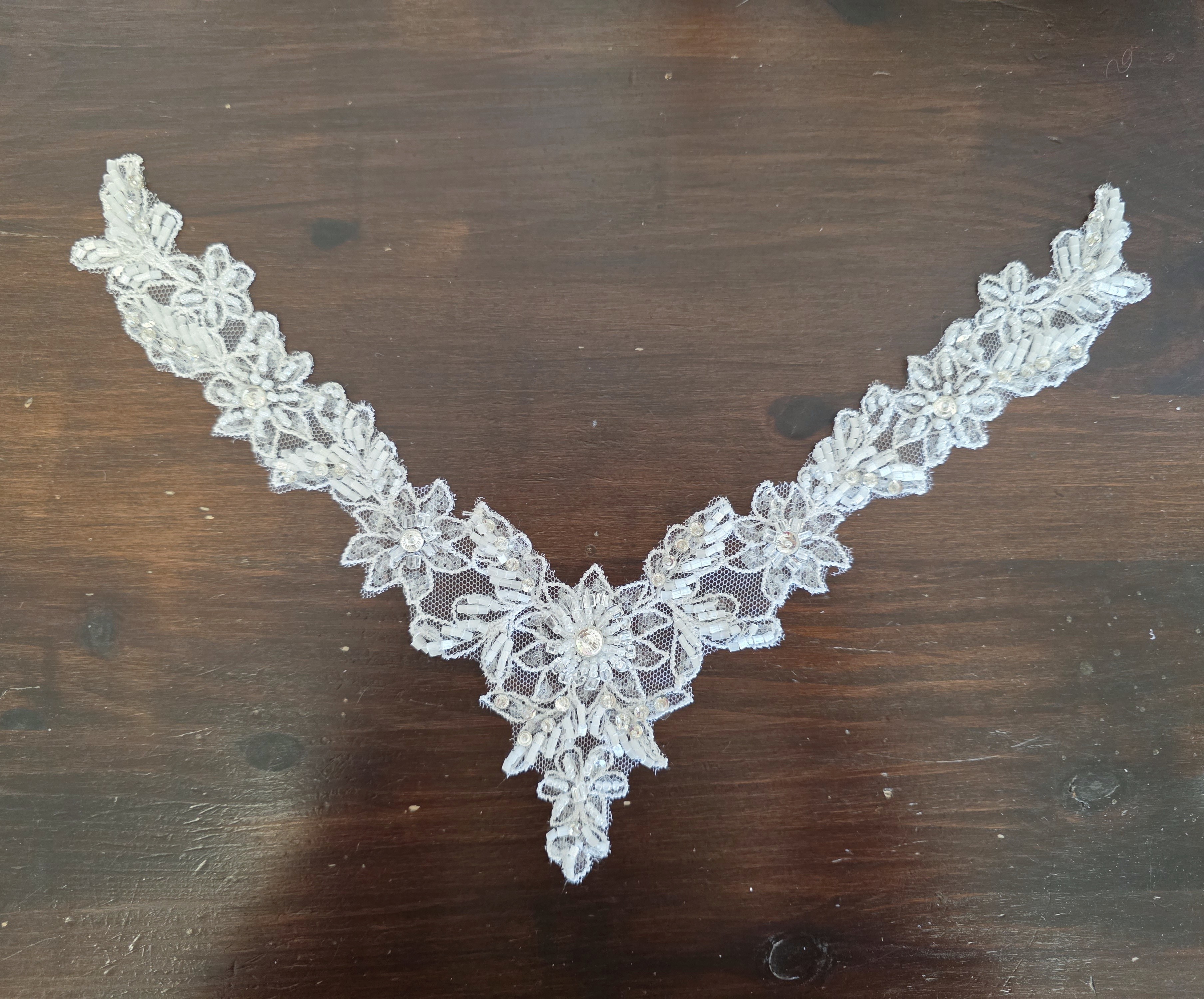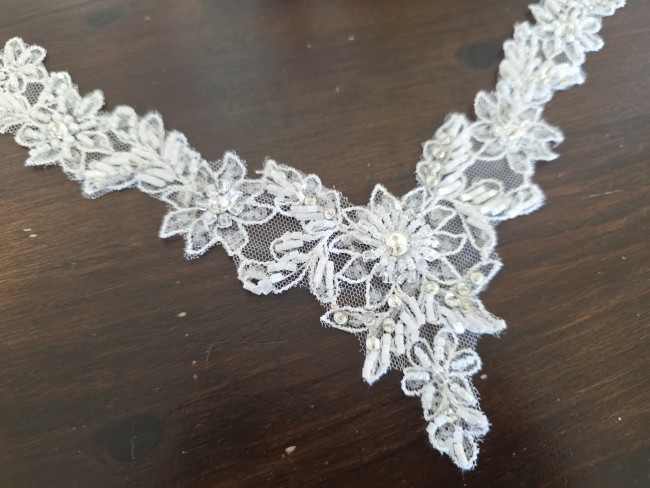 Motif encolure V blanc perles et strass pour robe de mariée