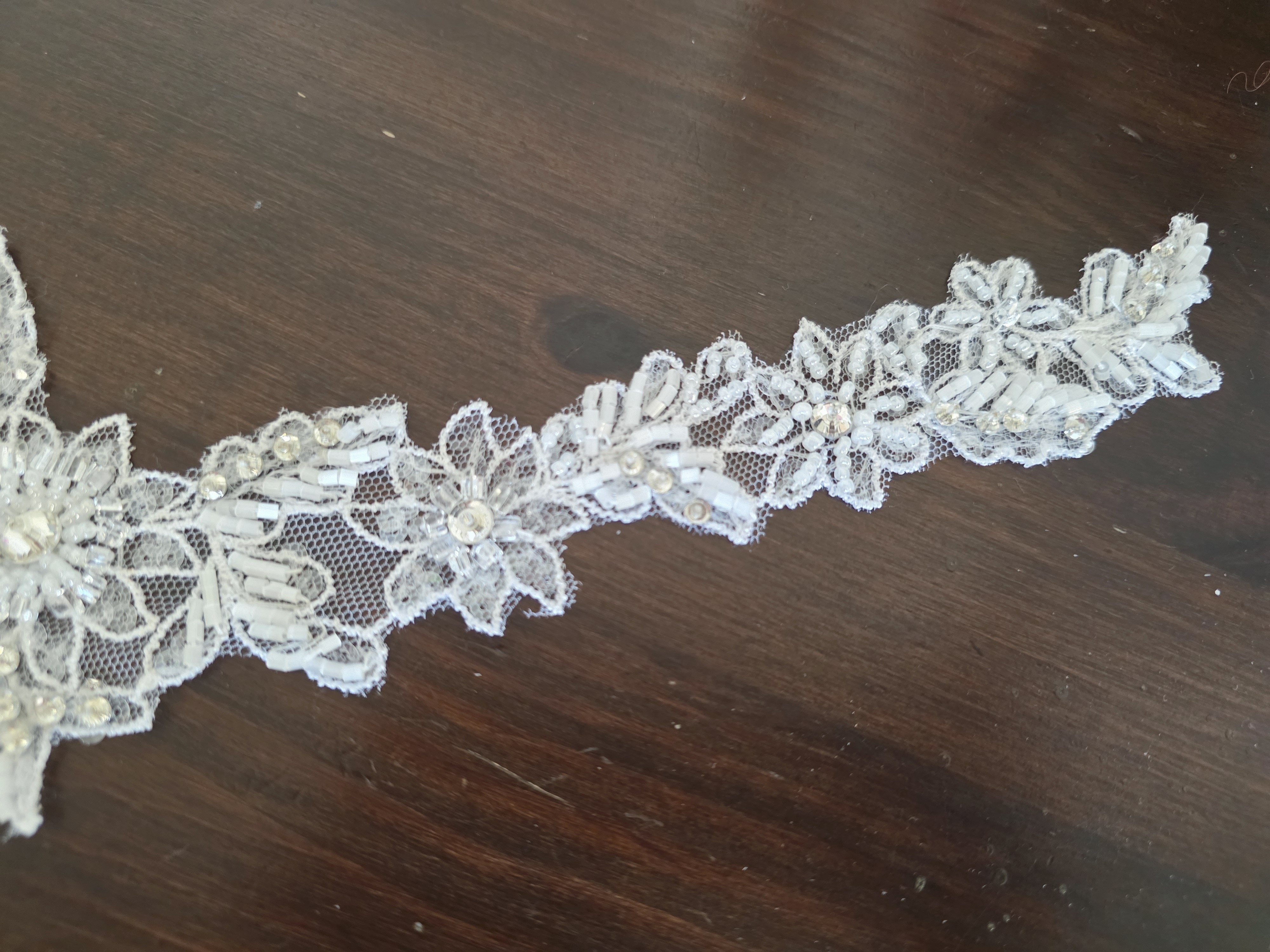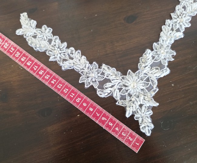 Fournitures pour coudre une robe de mariée. Dentelle, tissus, appliqués, galons, boutons. Robes et accessoires pour la mariée.