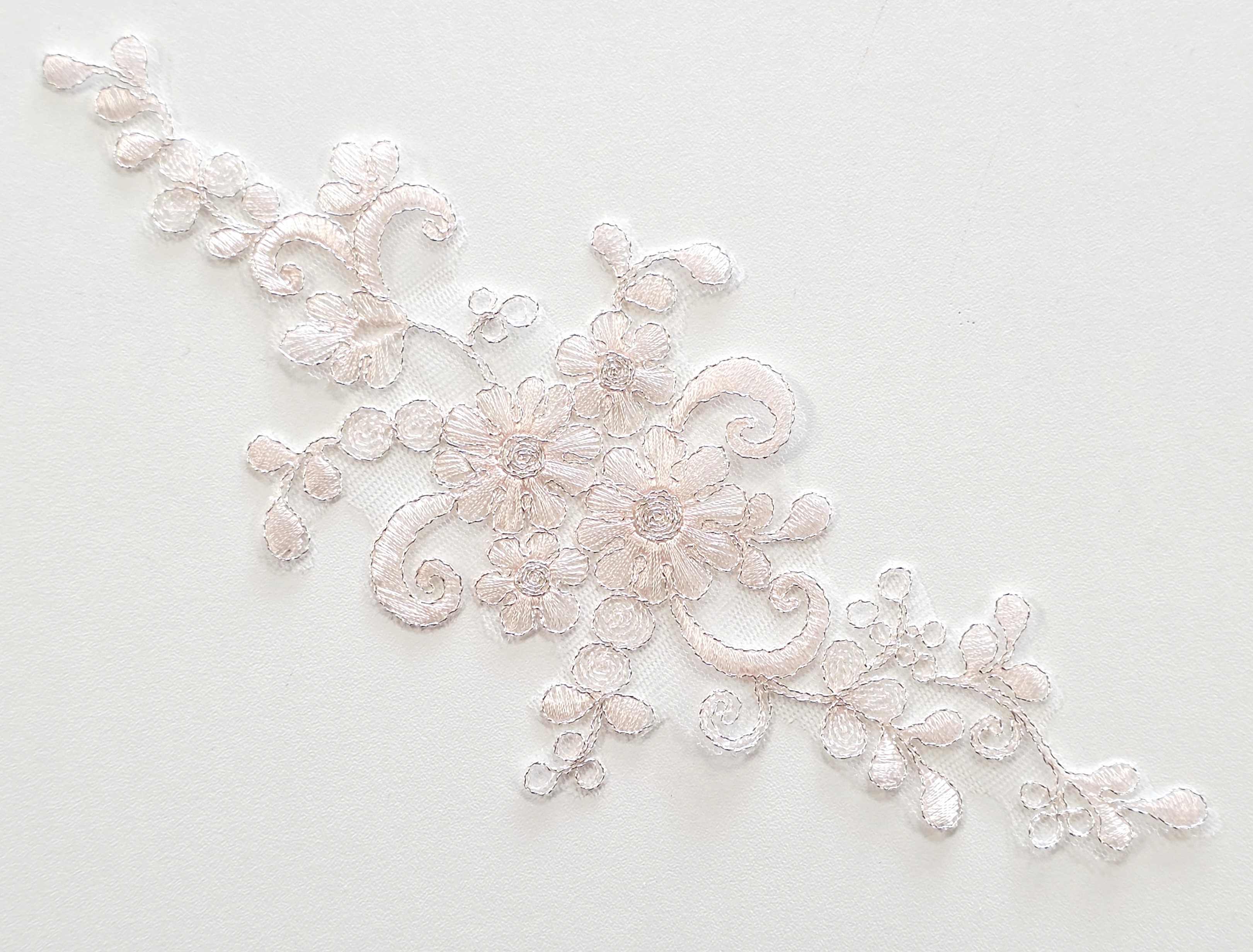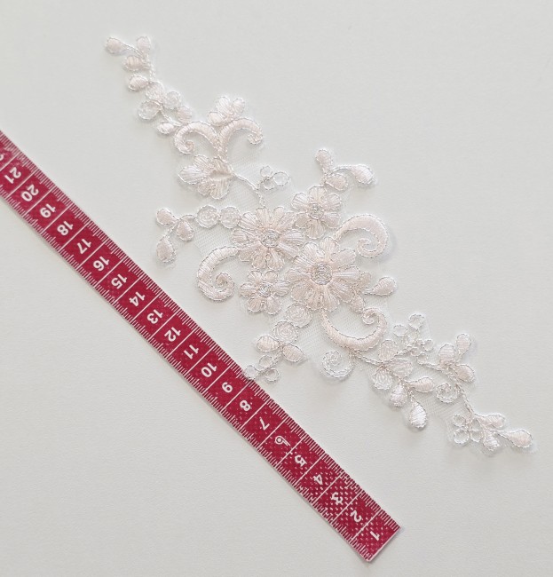 Fournitures pour coudre une robe de mariée. Dentelle, tissus, appliqués, galons, boutons. Robes et accessoires pour la mariée.
