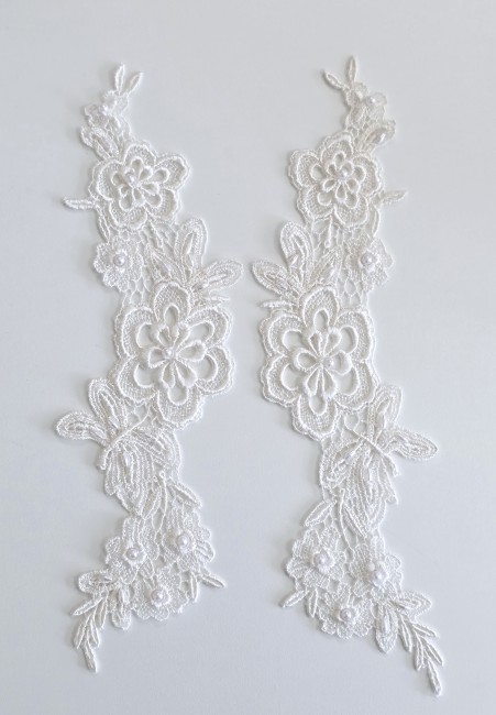 Fournitures pour coudre une robe de mariée. Dentelle, tissus, appliqués, galons, boutons. Robes et accessoires pour la mariée.