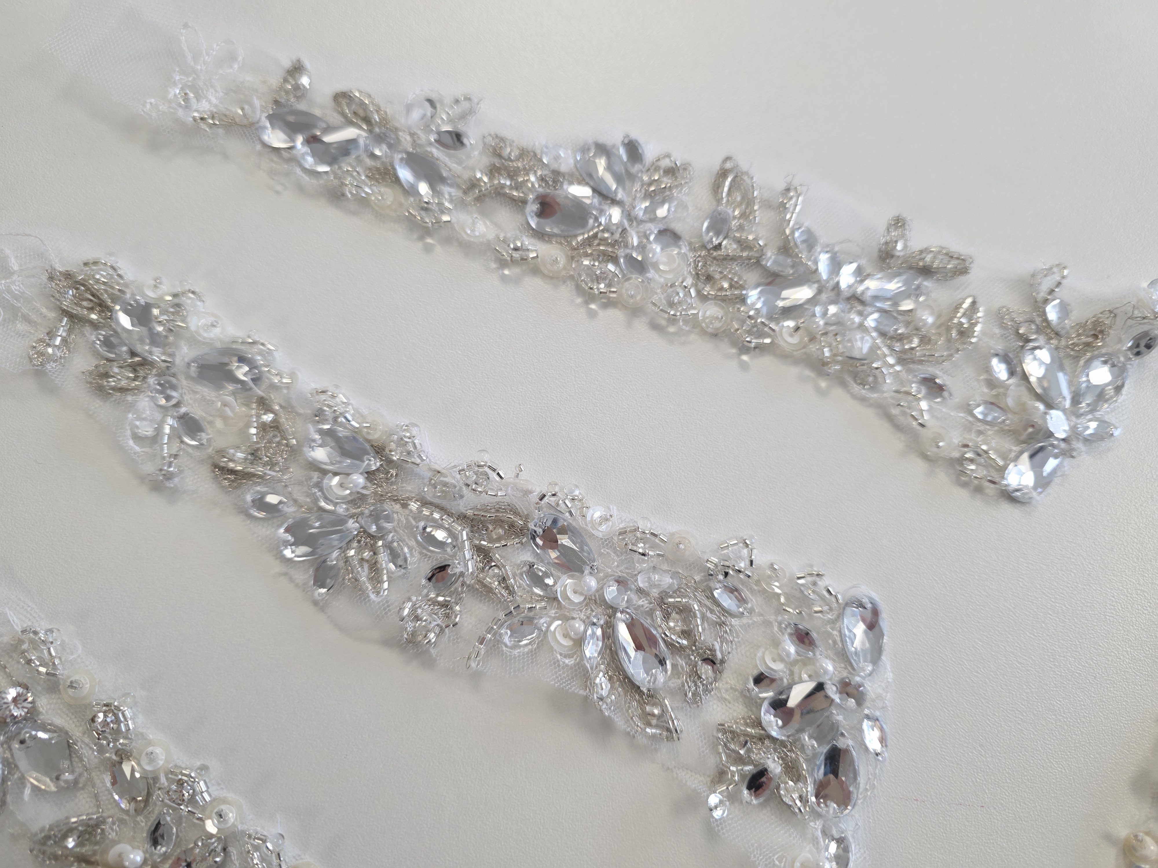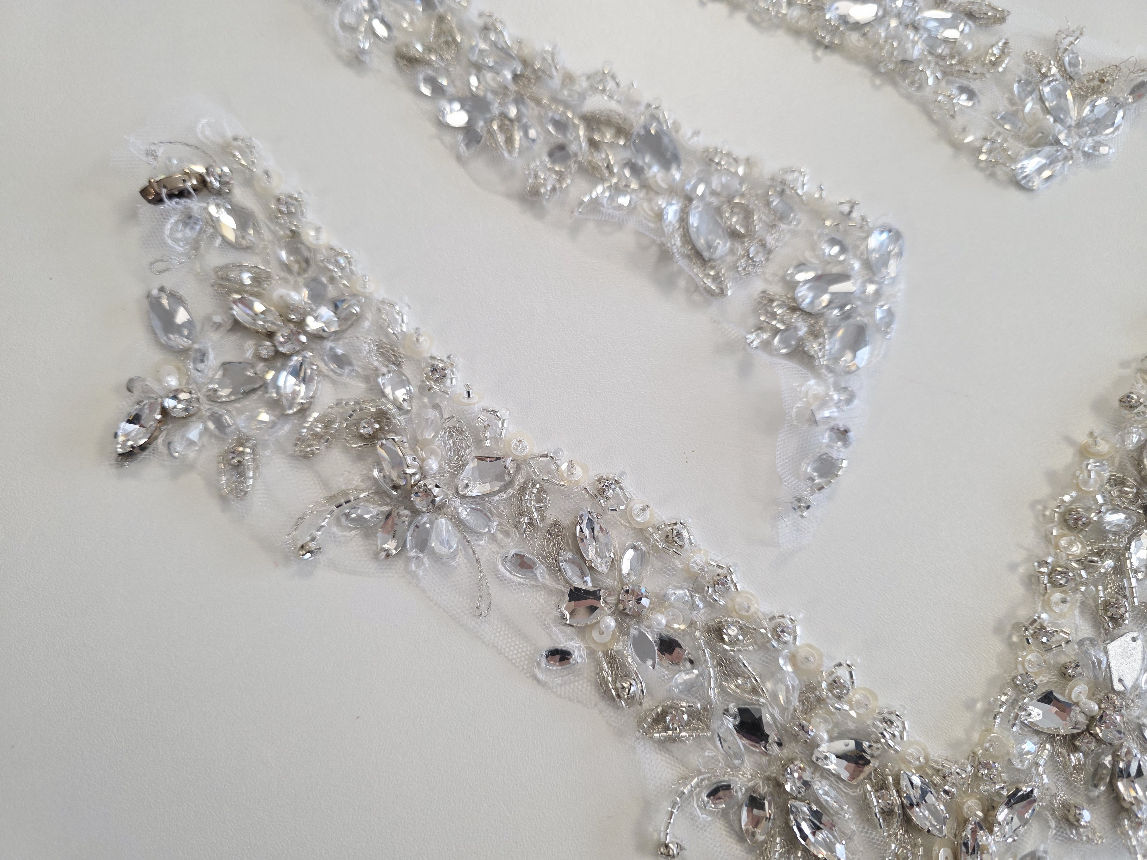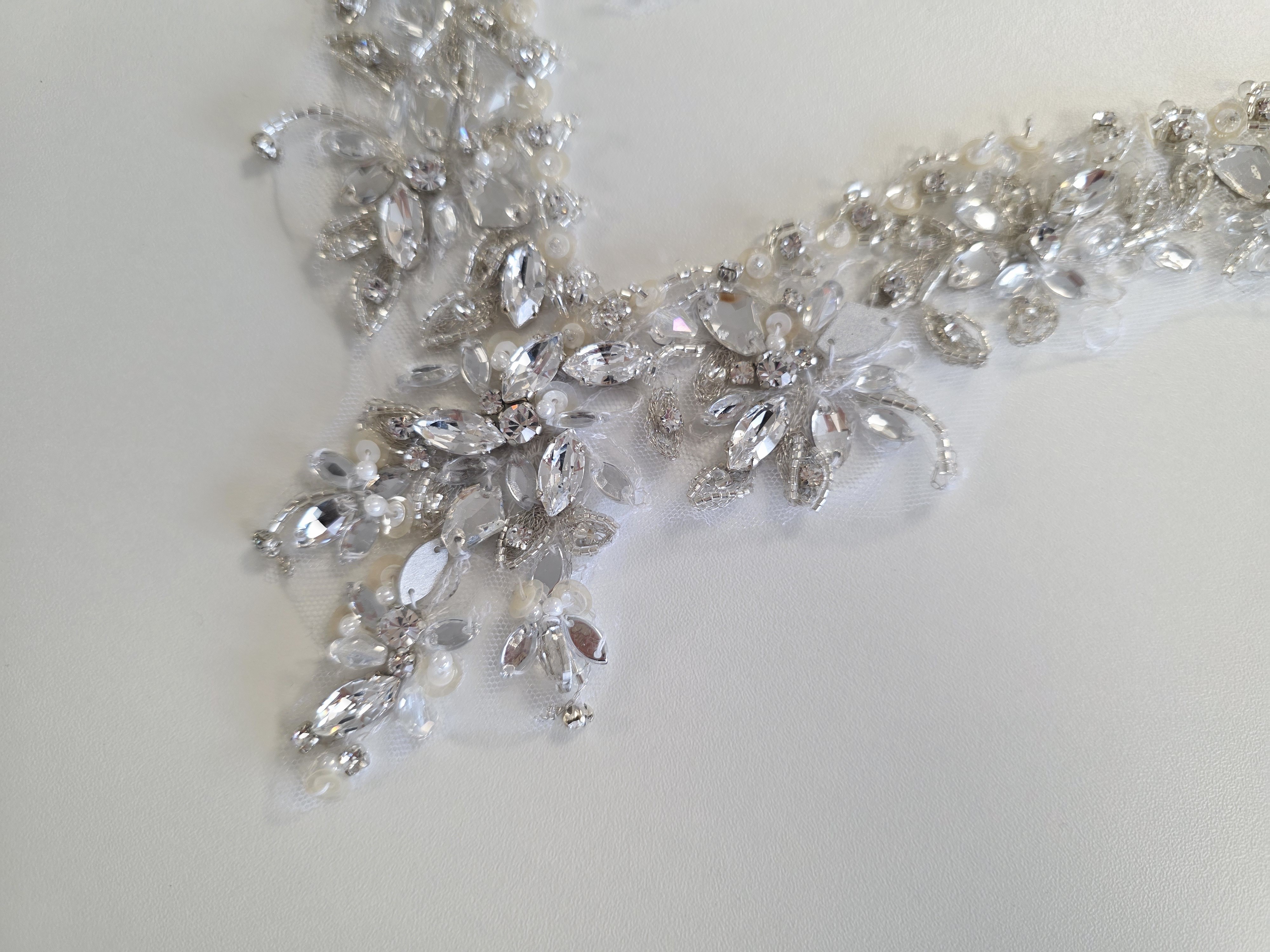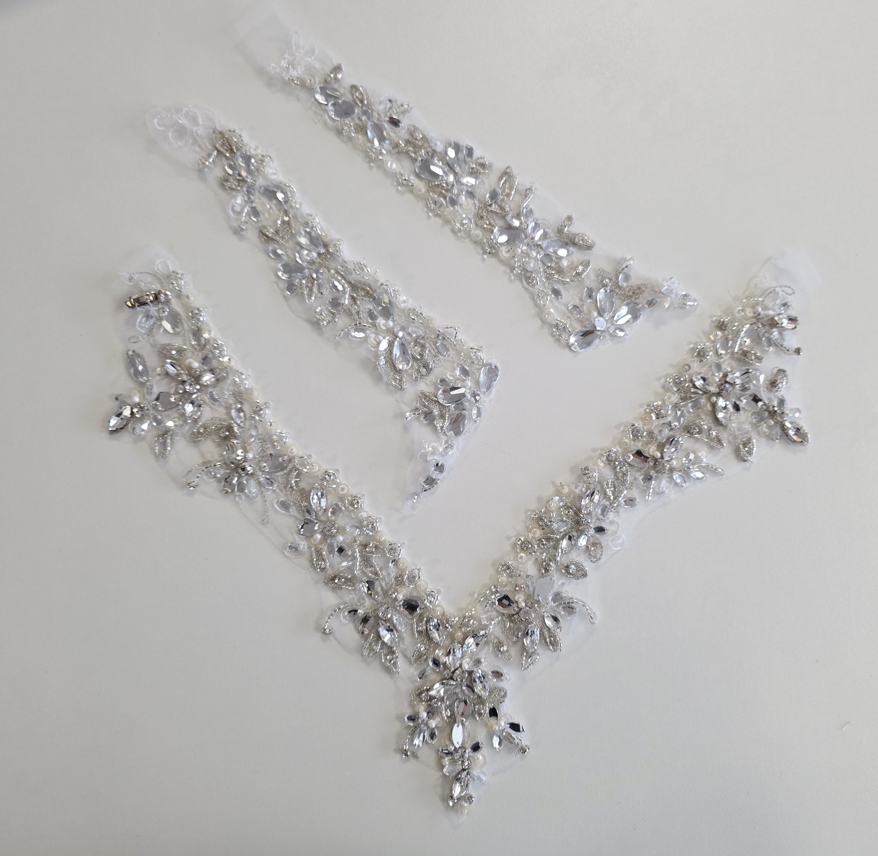 Set motif encolure V et 2 motifs strass et perles robe cocktail mariée