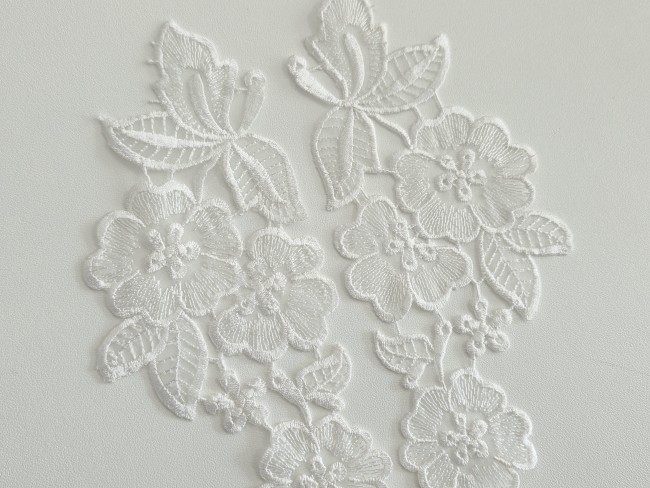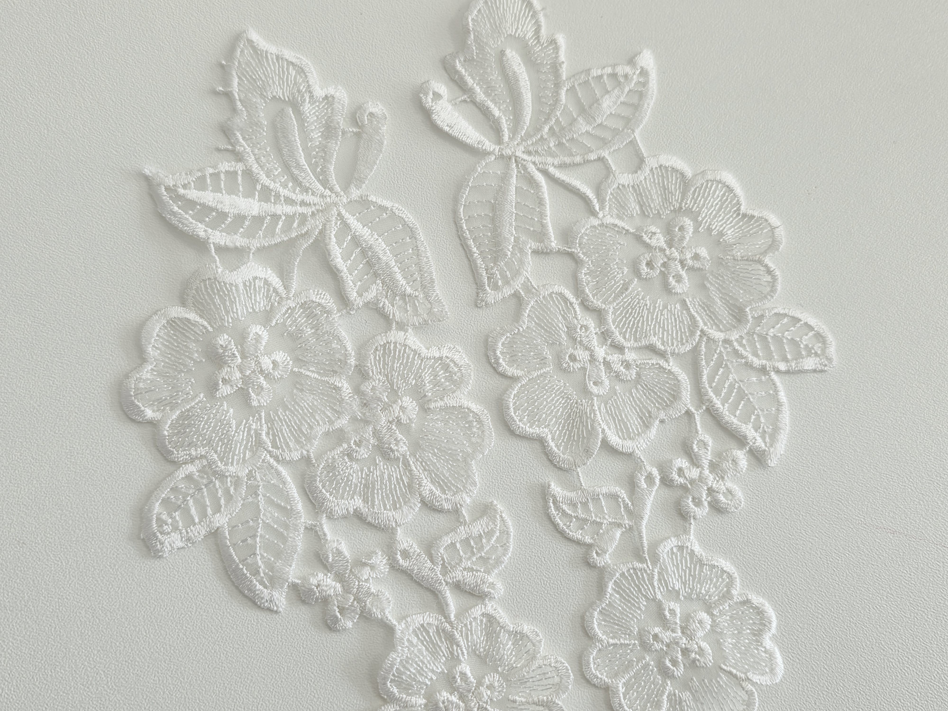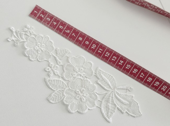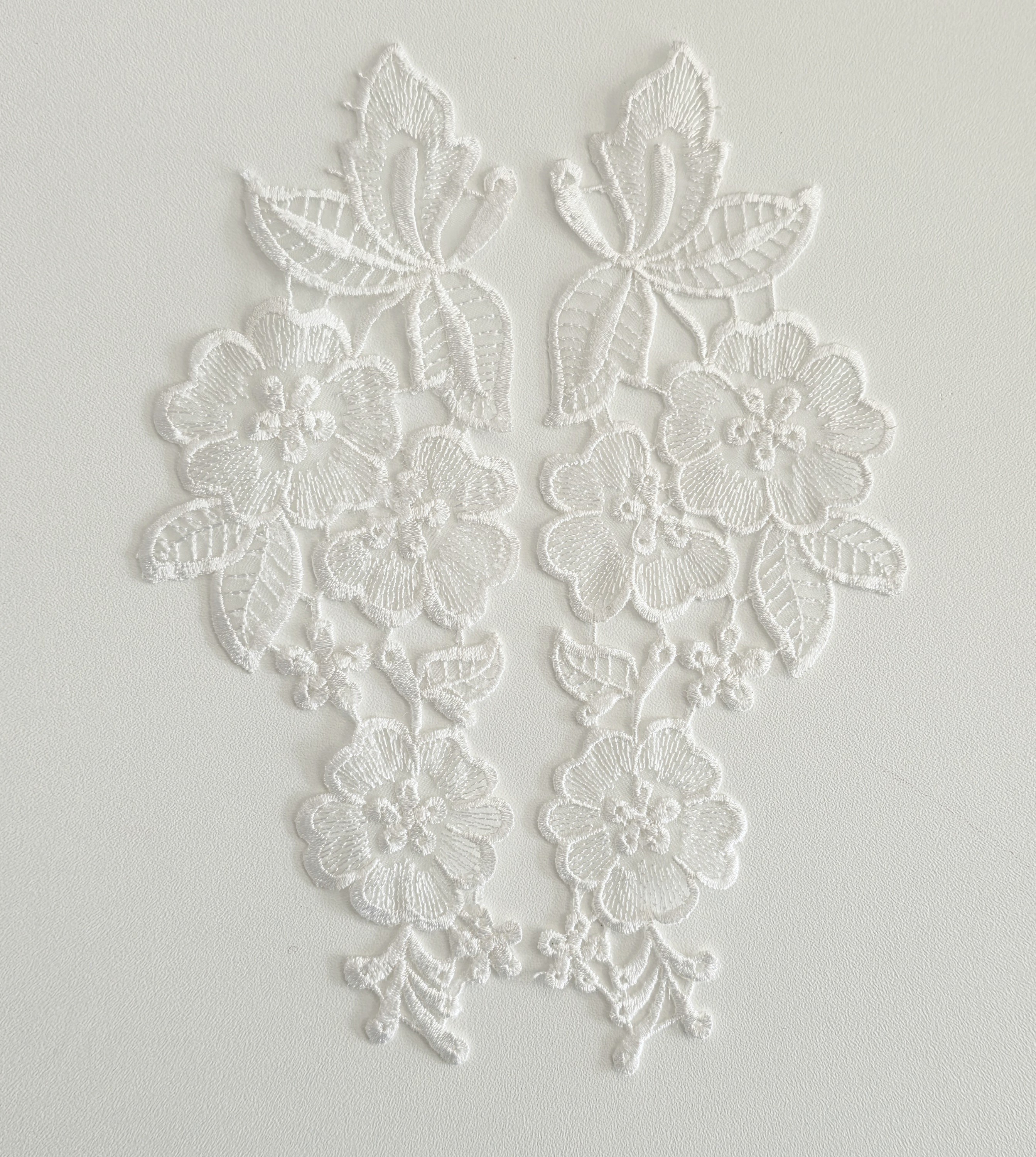 Fournitures pour coudre une robe de mariée. Dentelle, tissus, appliqués, galons, boutons. Robes et accessoires pour la mariée.