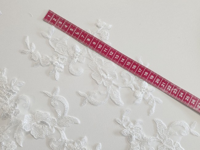 Fournitures pour coudre une robe de mariée. Dentelle, tissus, appliqués, galons, boutons. Robes et accessoires pour la mariée.