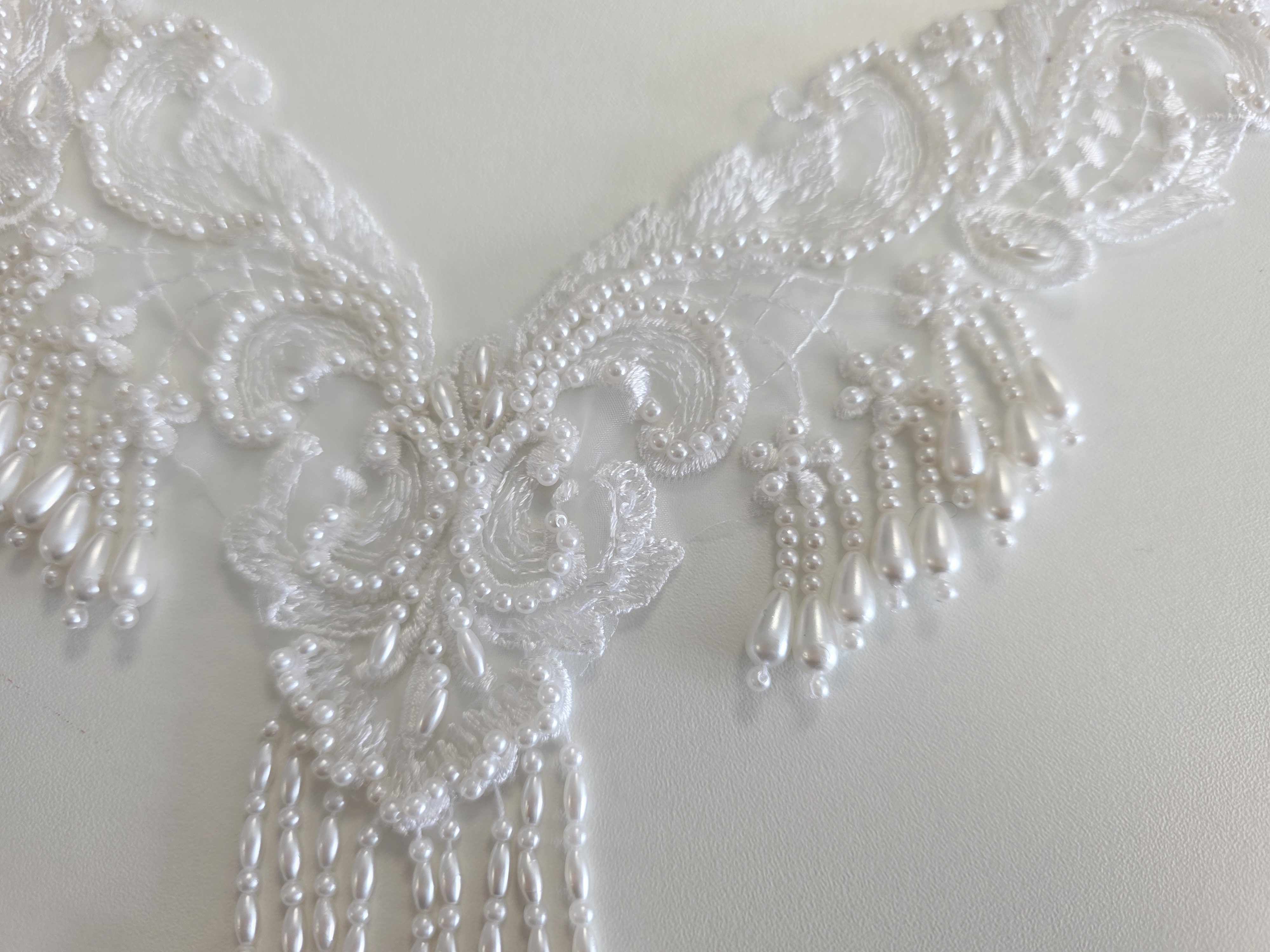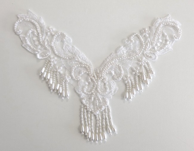 Motif en V blanc véritable avec perles vintage