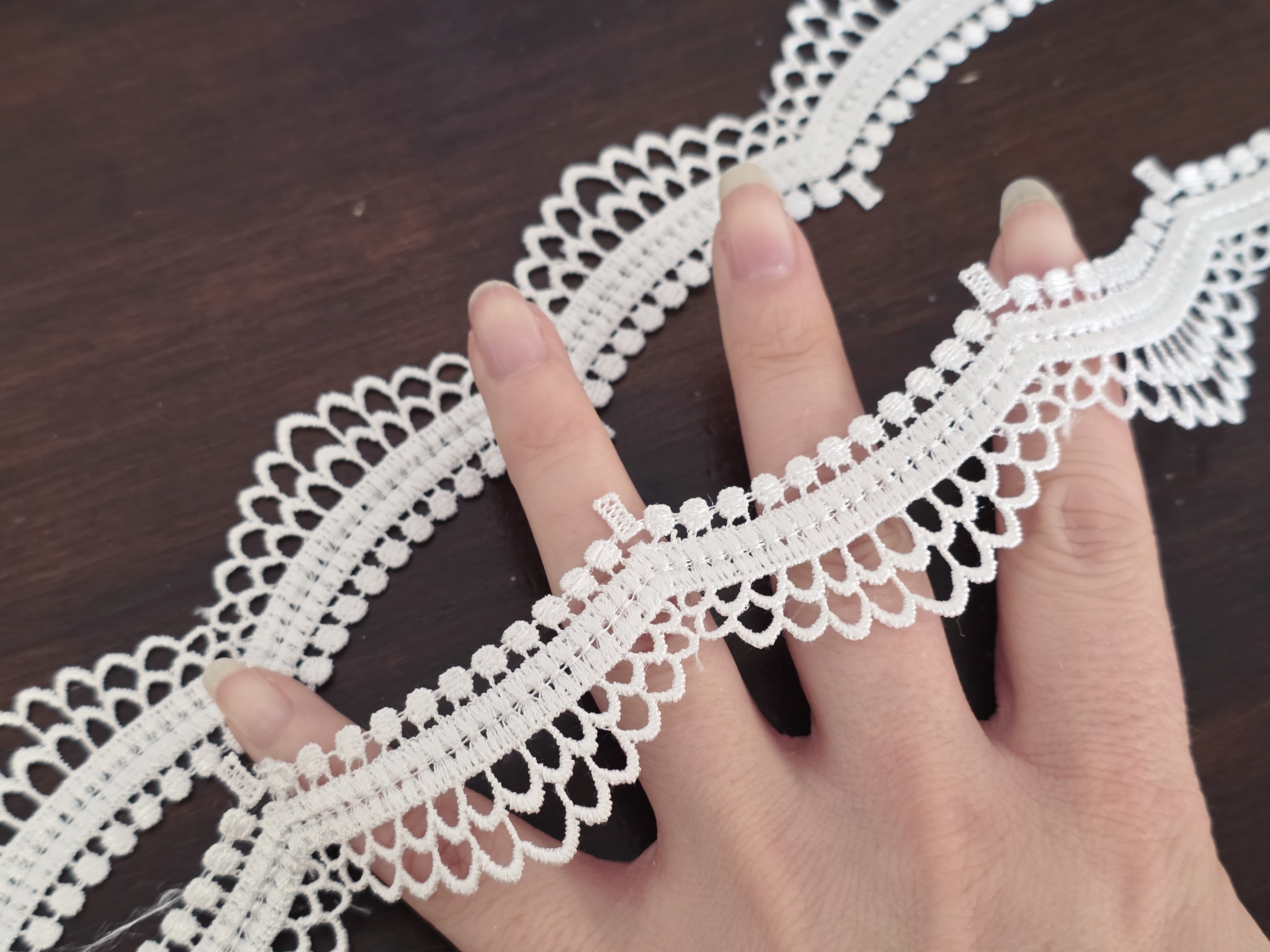 Galon ivoire clair festonné écaille création mariée bohème