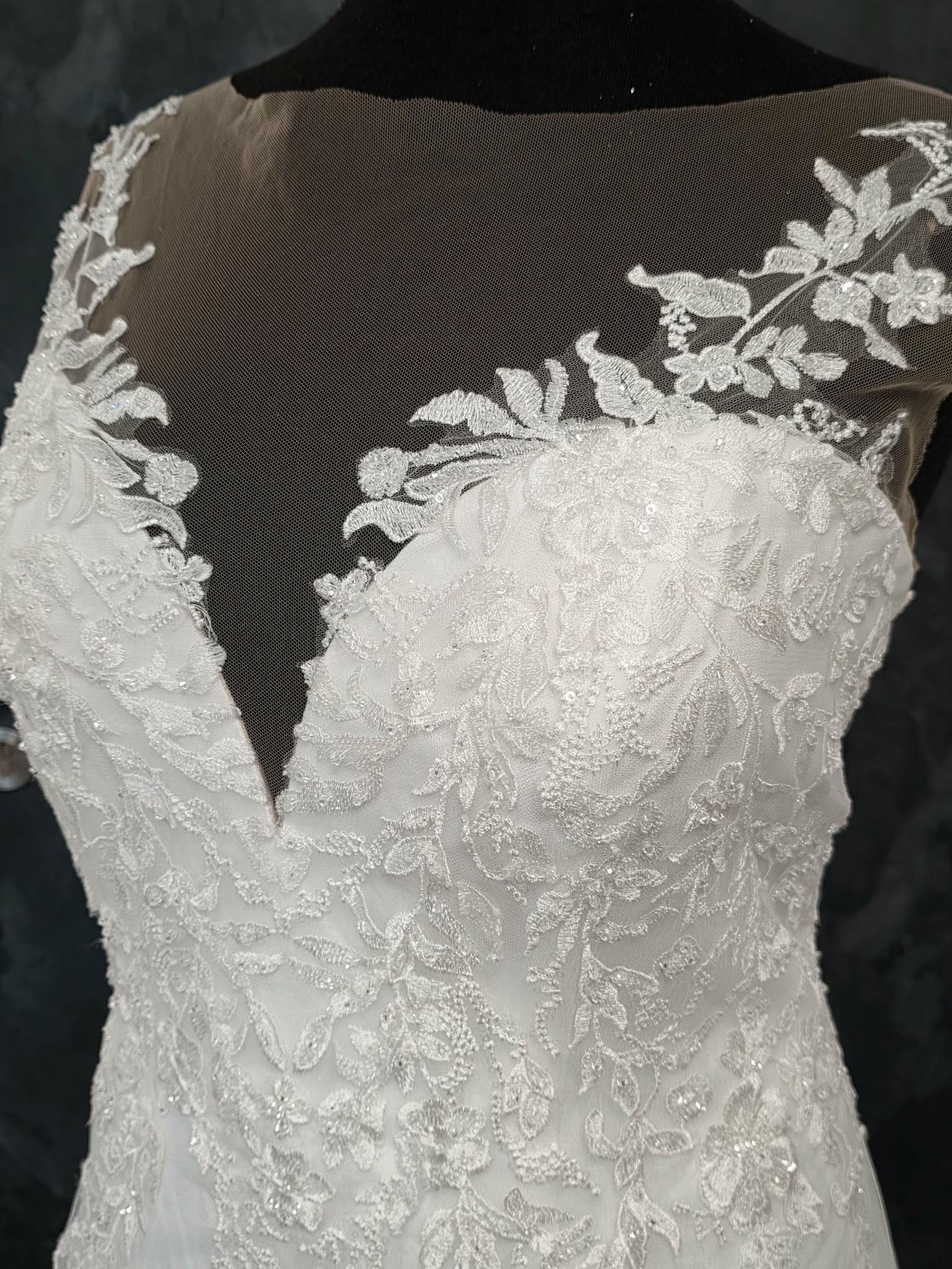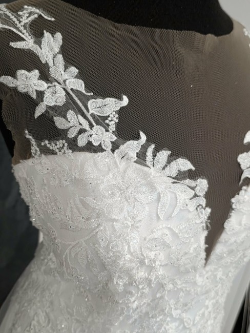 un buste avec joli décolleté, tulle illusion avec appliqués de dentelle effet tatoo
