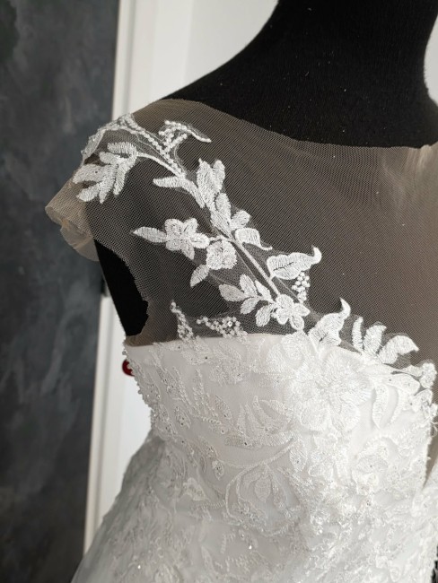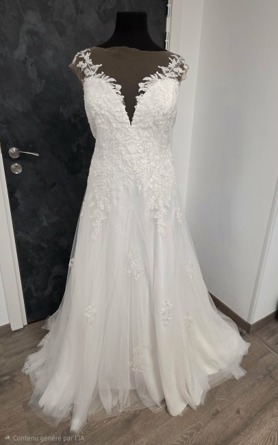 Robe de mariée en dentelle et tulle de la marque Lilly