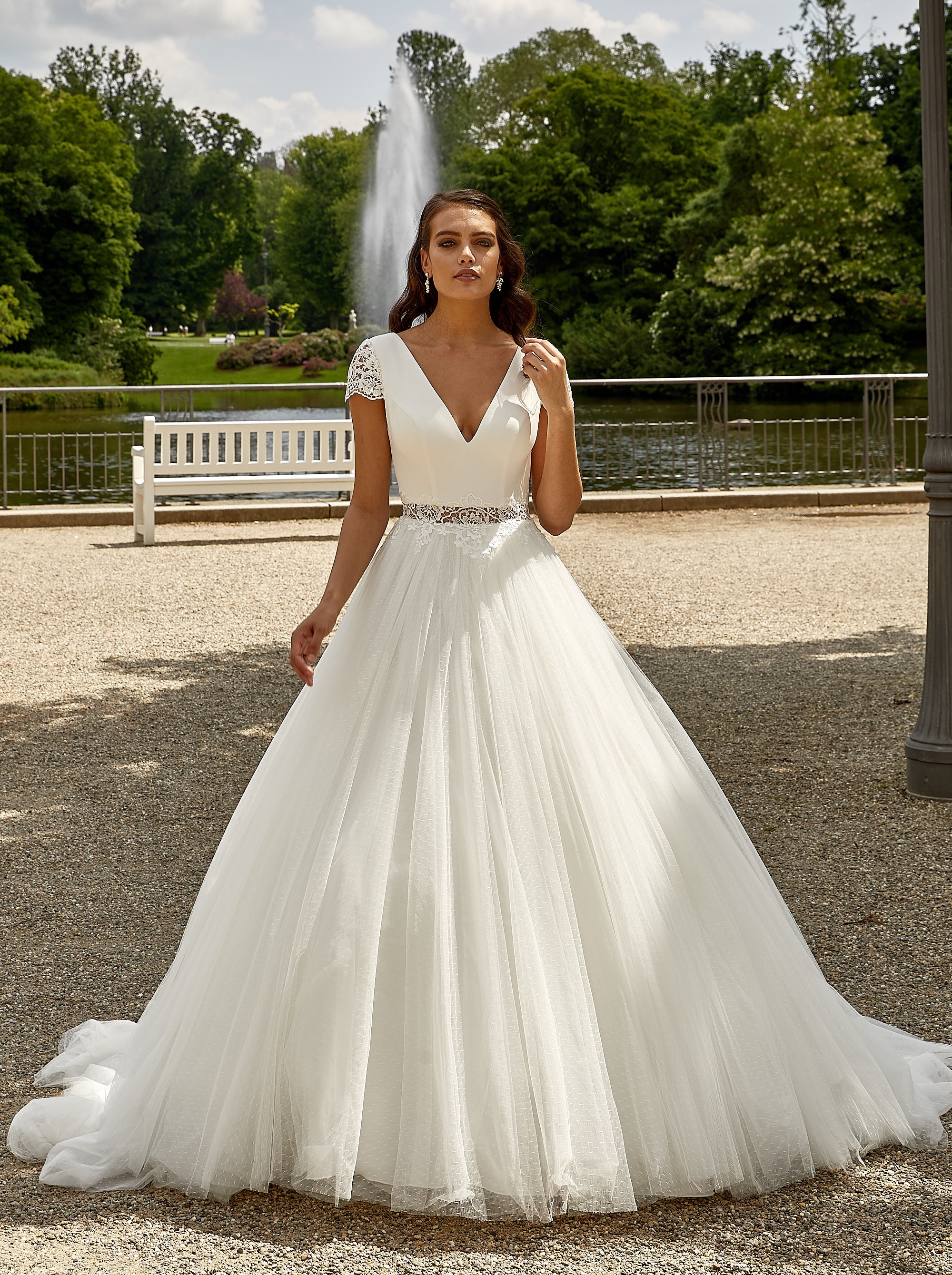 Large jupe en tulle et tulle plumetis avec belle traine.