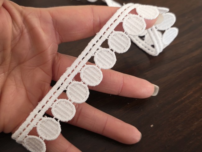 Fournitures pour coudre une robe de mariée. Dentelle, tissus, appliqués, galons, boutons. Robes et accessoires pour la mariée.