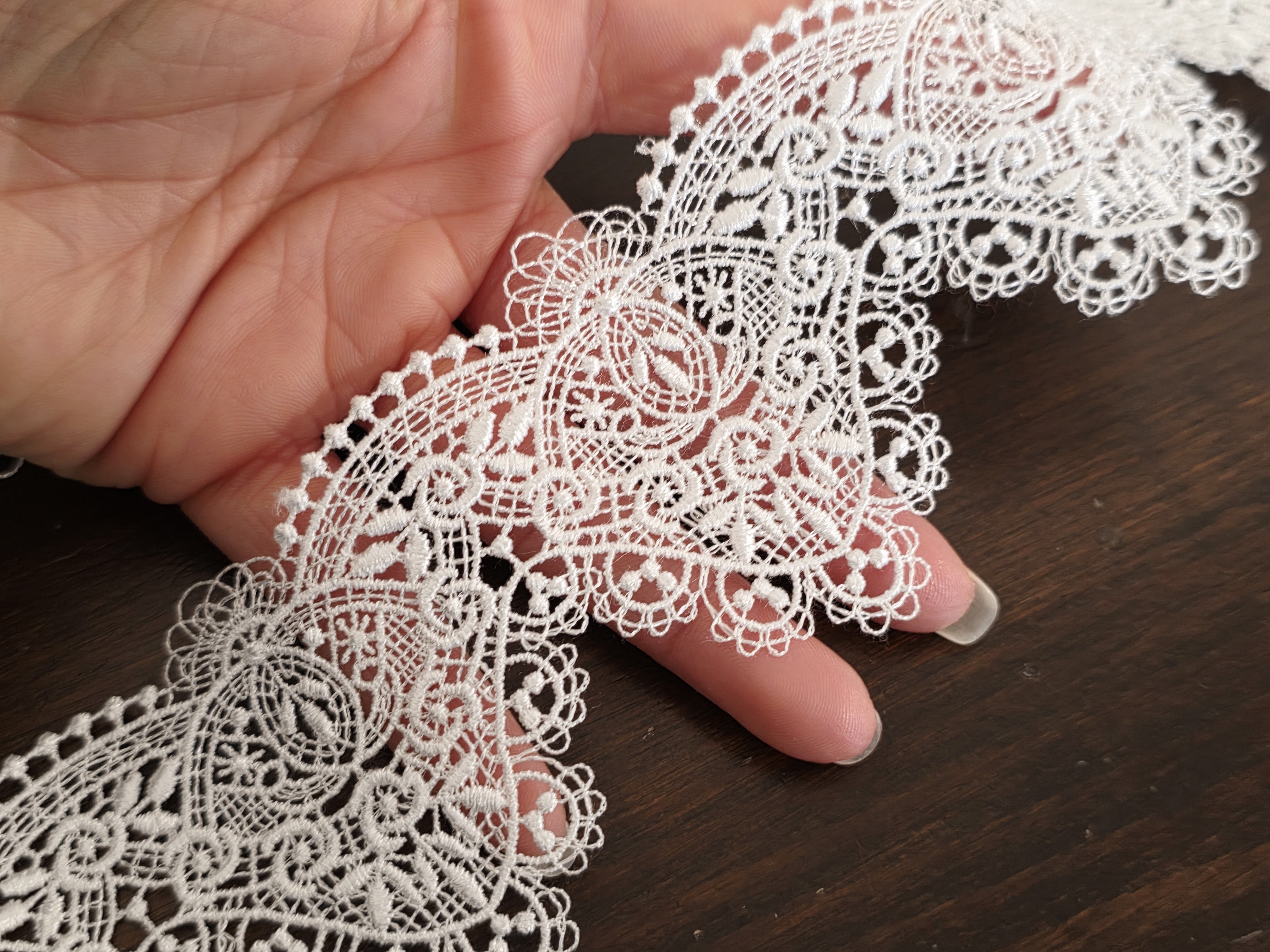 Fournitures pour coudre une robe de mariée. Dentelle, tissus, appliqués, galons, boutons. Robes et accessoires pour la mariée.