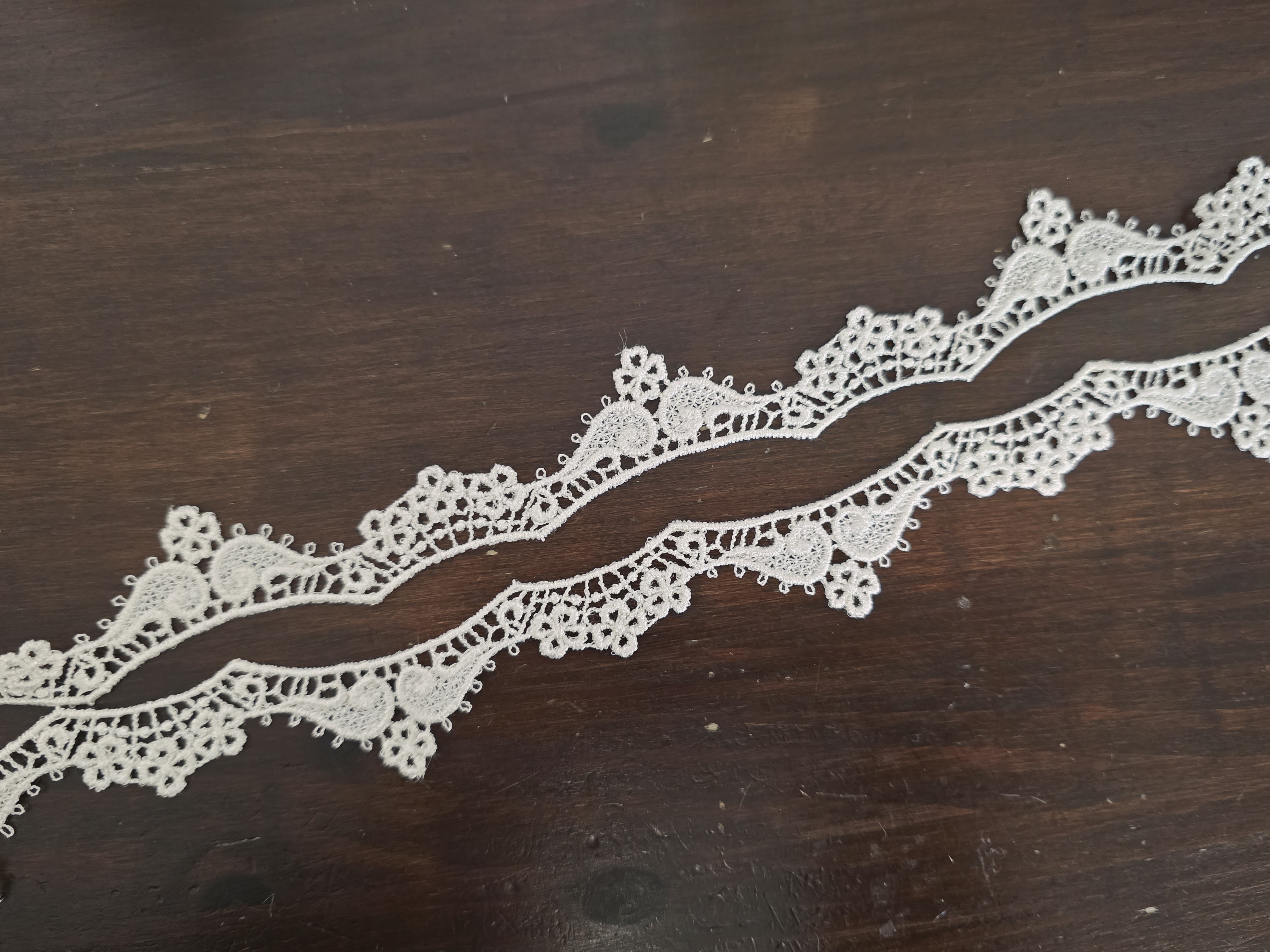 Fournitures pour coudre une robe de mariée. Dentelle, tissus, appliqués, galons, boutons. Robes et accessoires pour la mariée.