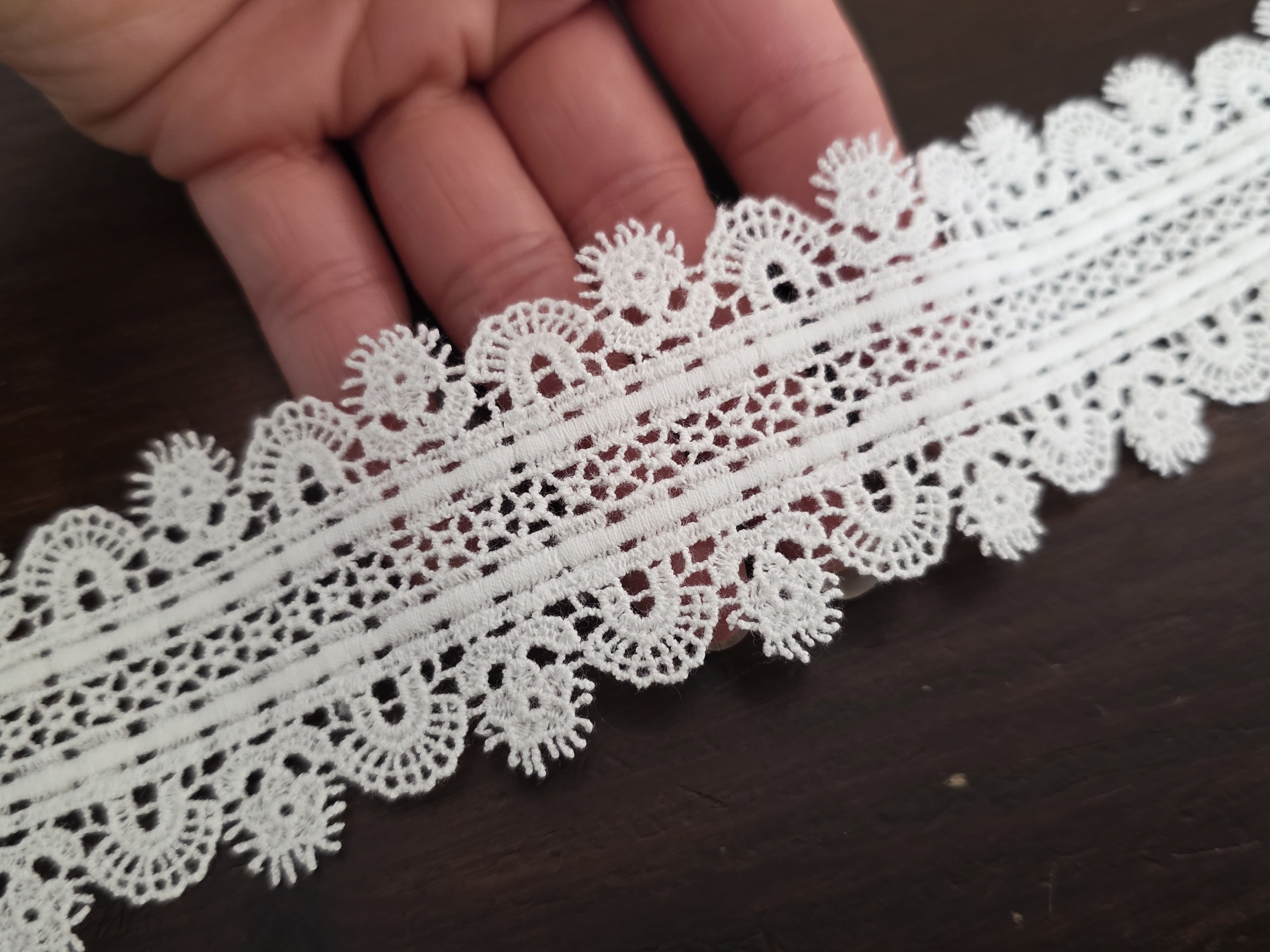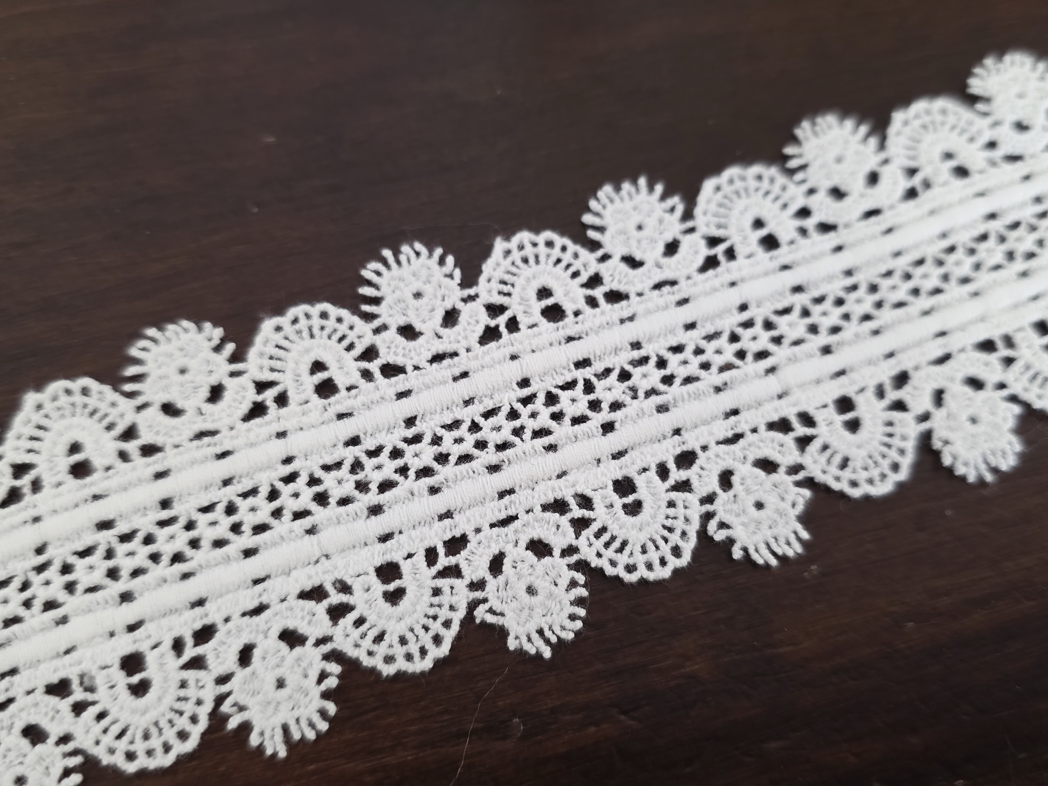 Fournitures pour coudre une robe de mariée. Dentelle, tissus, appliqués, galons, boutons. Robes et accessoires pour la mariée.