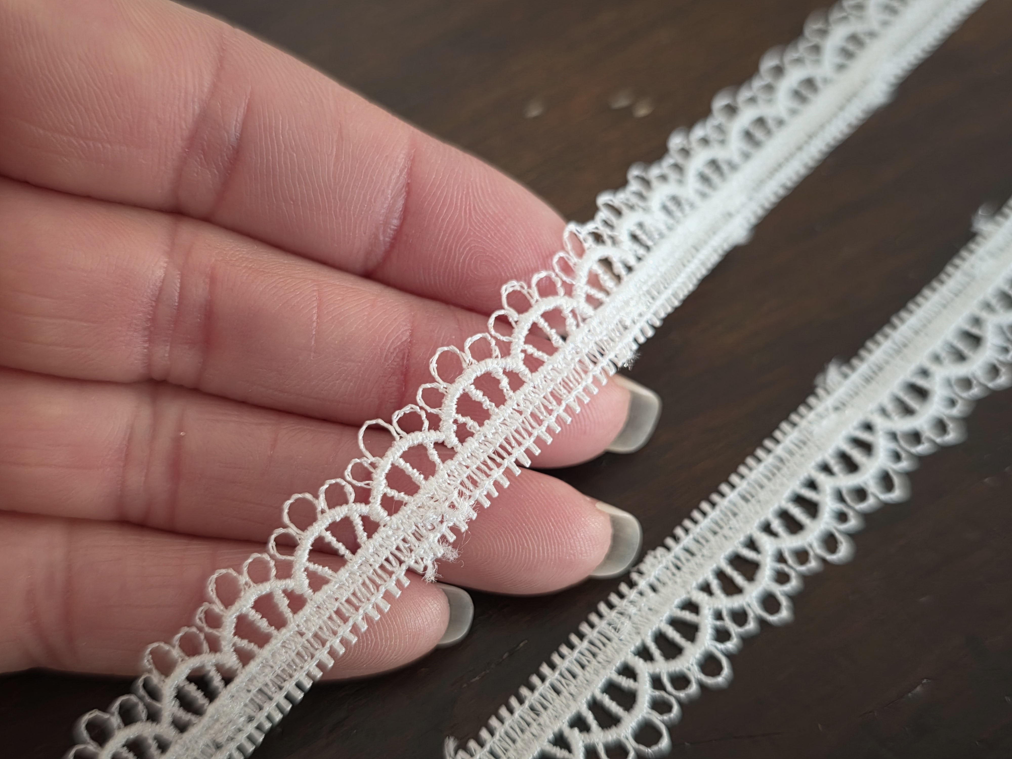 Fournitures pour coudre une robe de mariée. Dentelle, tissus, appliqués, galons, boutons. Robes et accessoires pour la mariée.
