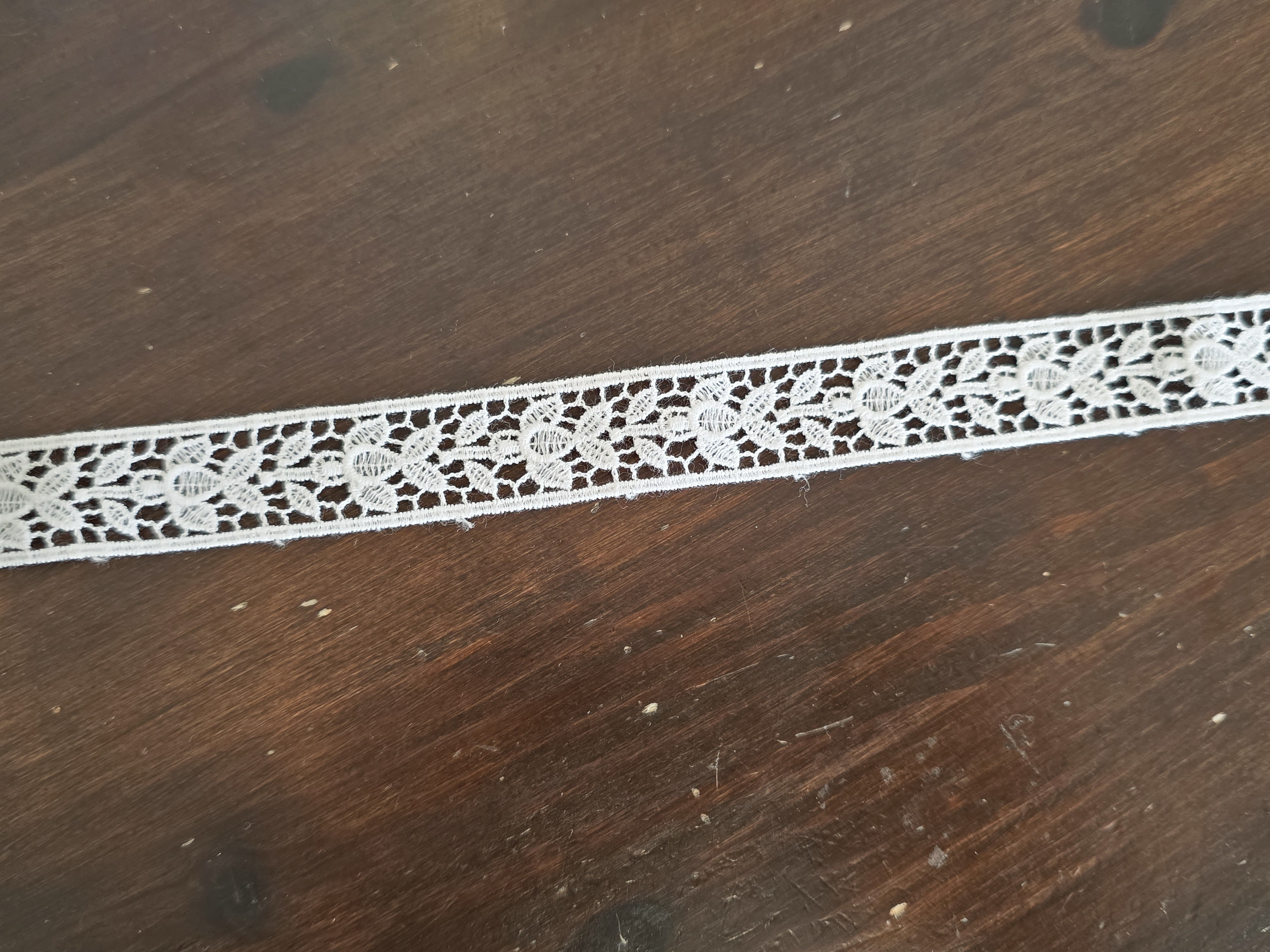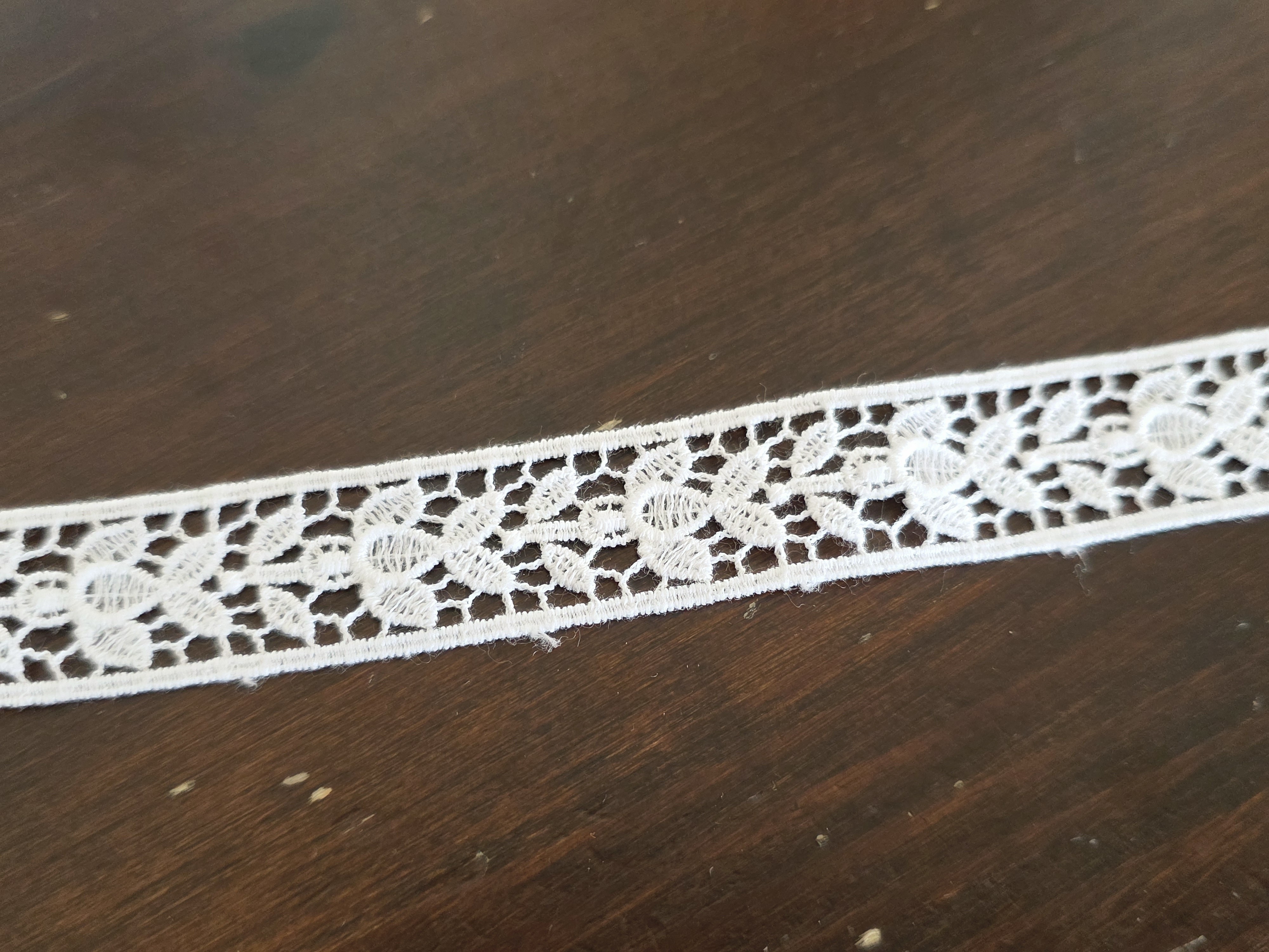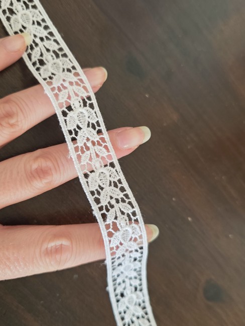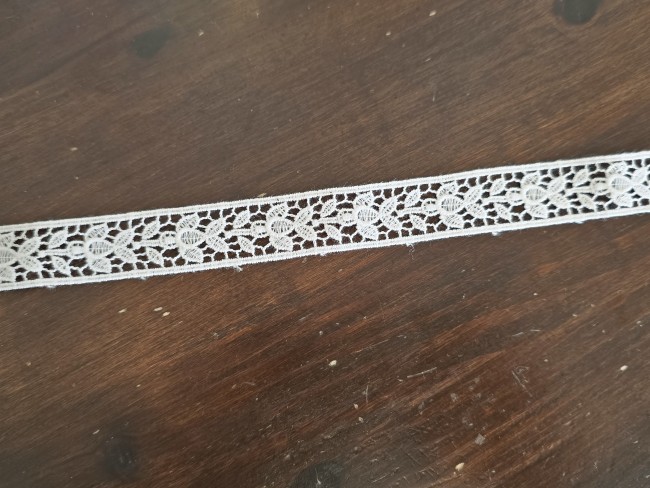 Petit galon de guipure motifs feuilles champêtre ivoire clair