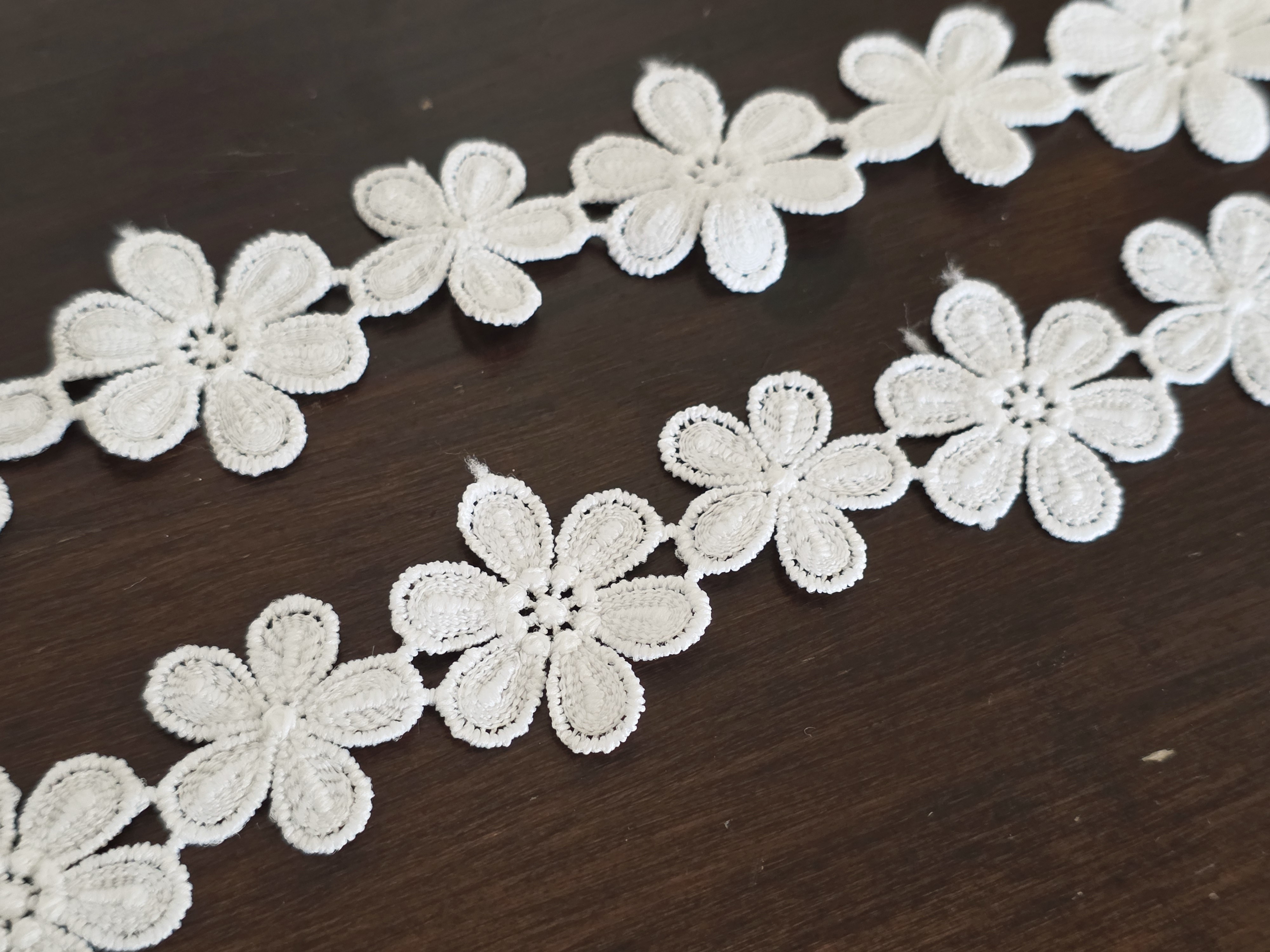 Fournitures pour coudre une robe de mariée. Dentelle, tissus, appliqués, galons, boutons. Robes et accessoires pour la mariée.