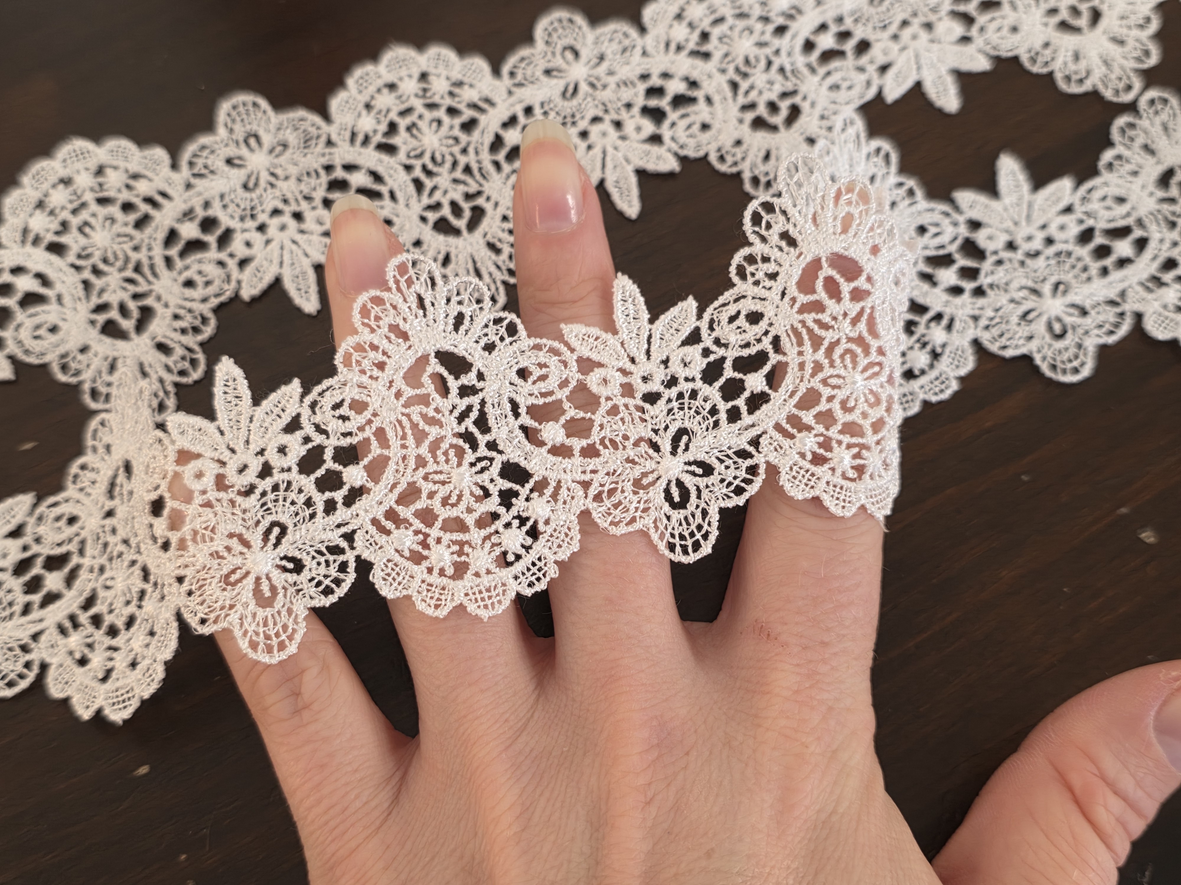 Galon de guipure - bord festonné - motif bohème - ivoire clair