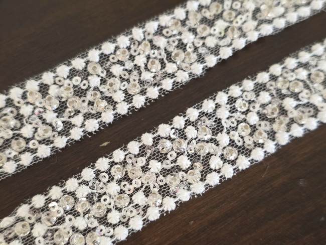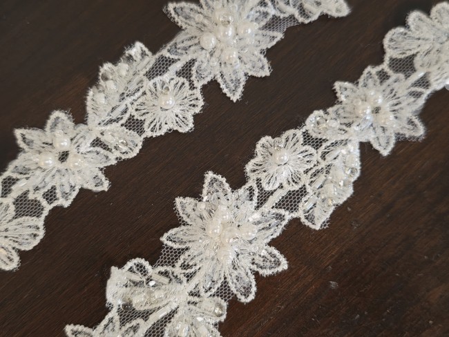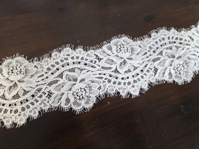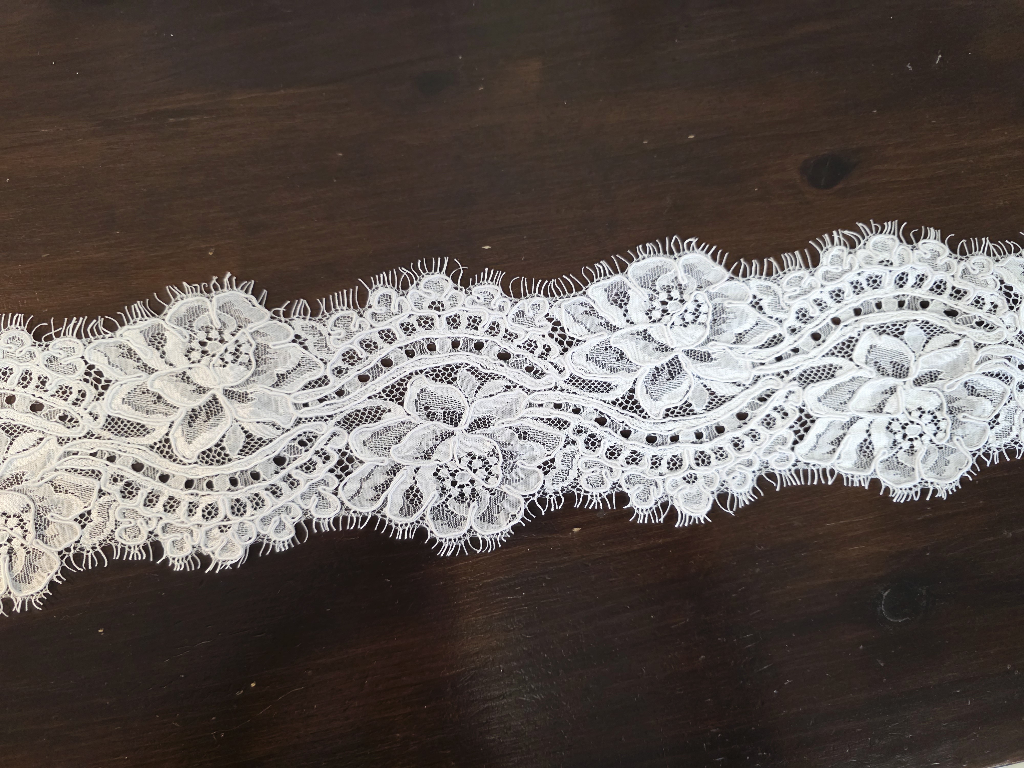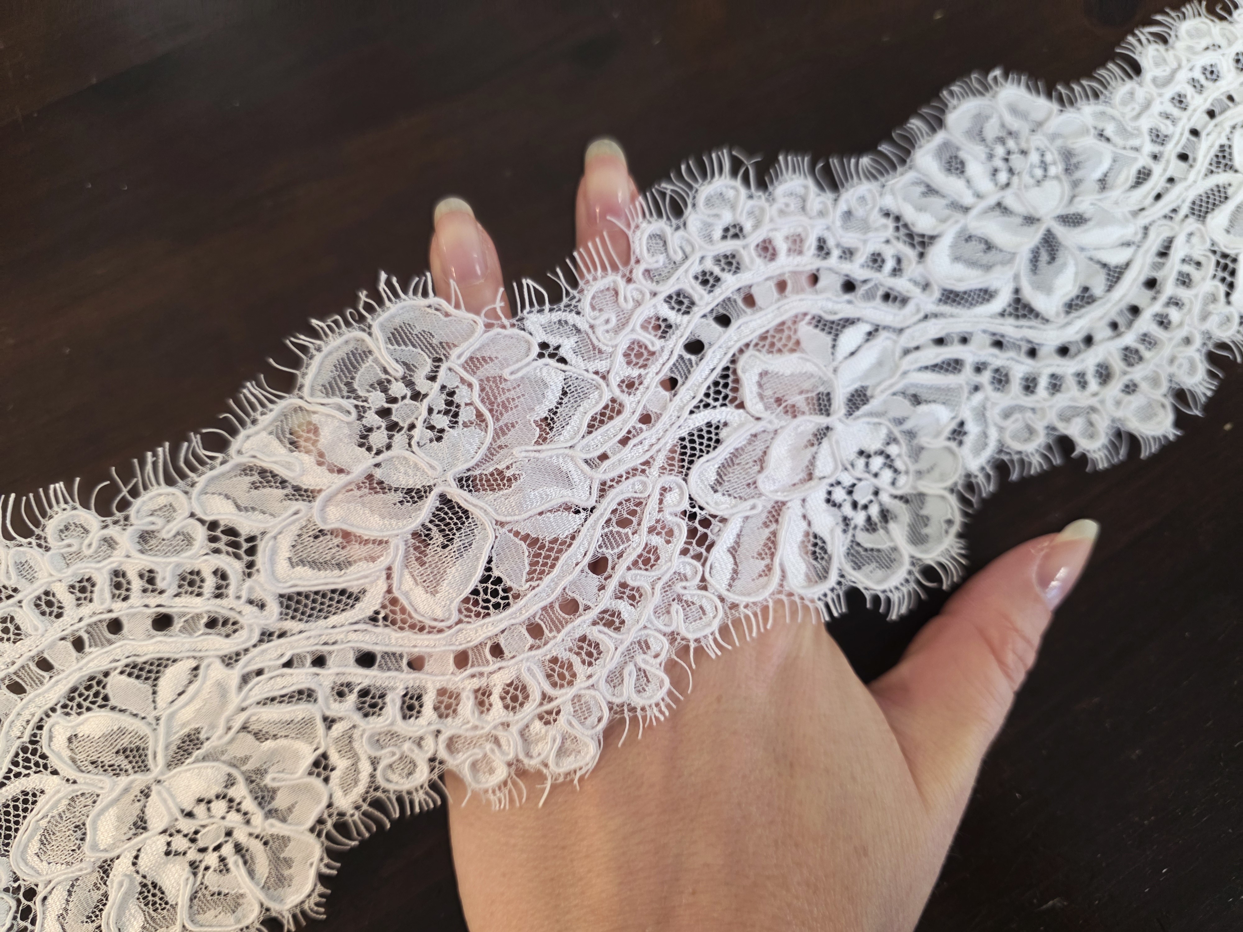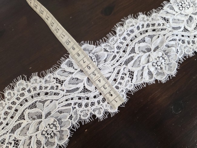 Sublime galon blanc en dentelle, délicatement travaillé avec deux bords festonnés pour une finition raffinée et romantique. Son motif fleurs finement ajouré apporte une touche de douceur et d’élégance à toutes vos créations. Avec sa largeur de 10 cm, ce galon est idéal pour la couture, la customisation textile, la décoration ou les projets de mariage.