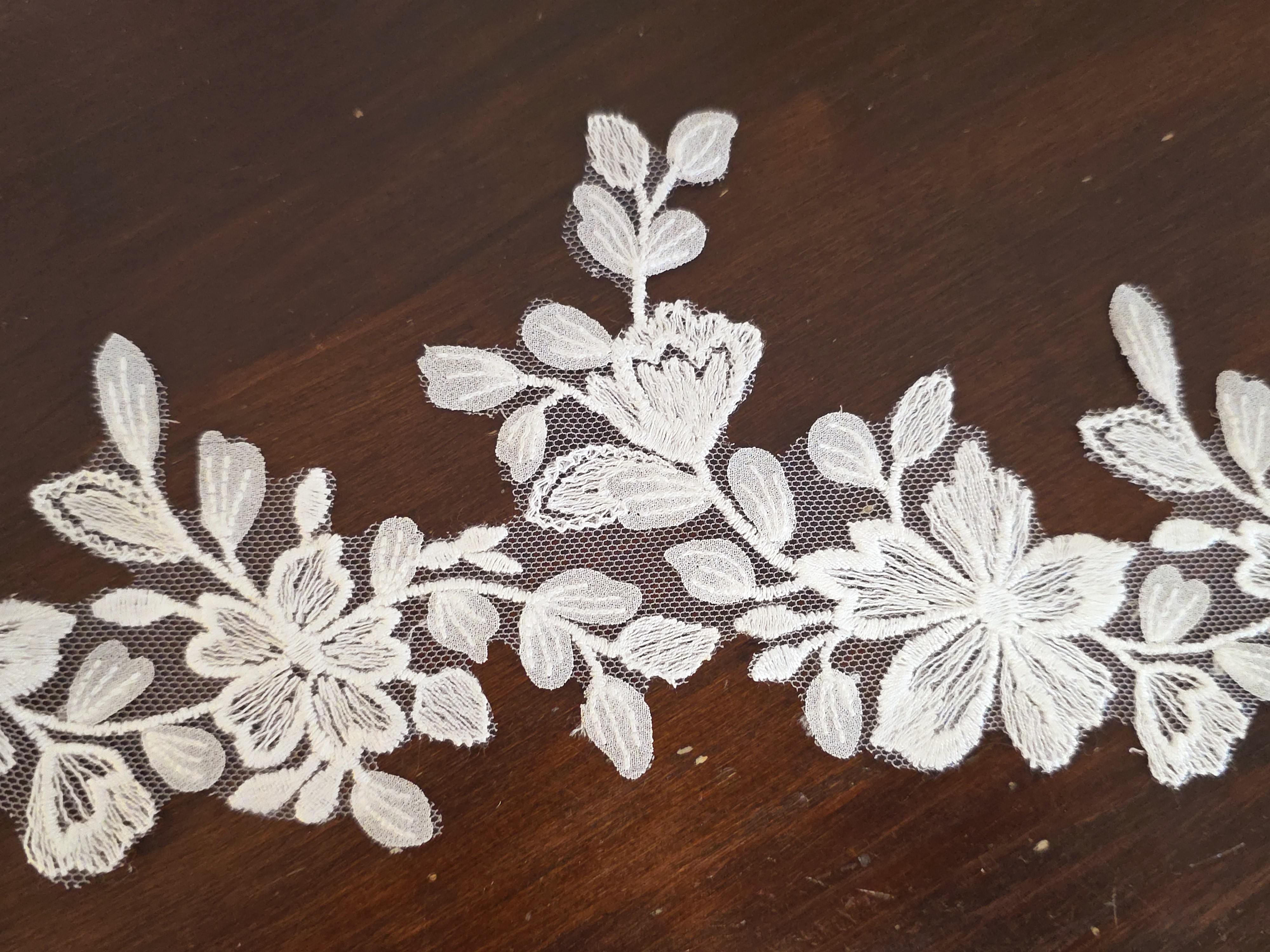 Parfaite pour la création ou la personnalisation de robes de mariée, cette dentelle apporte une touche bohème, douce et intemporelle.