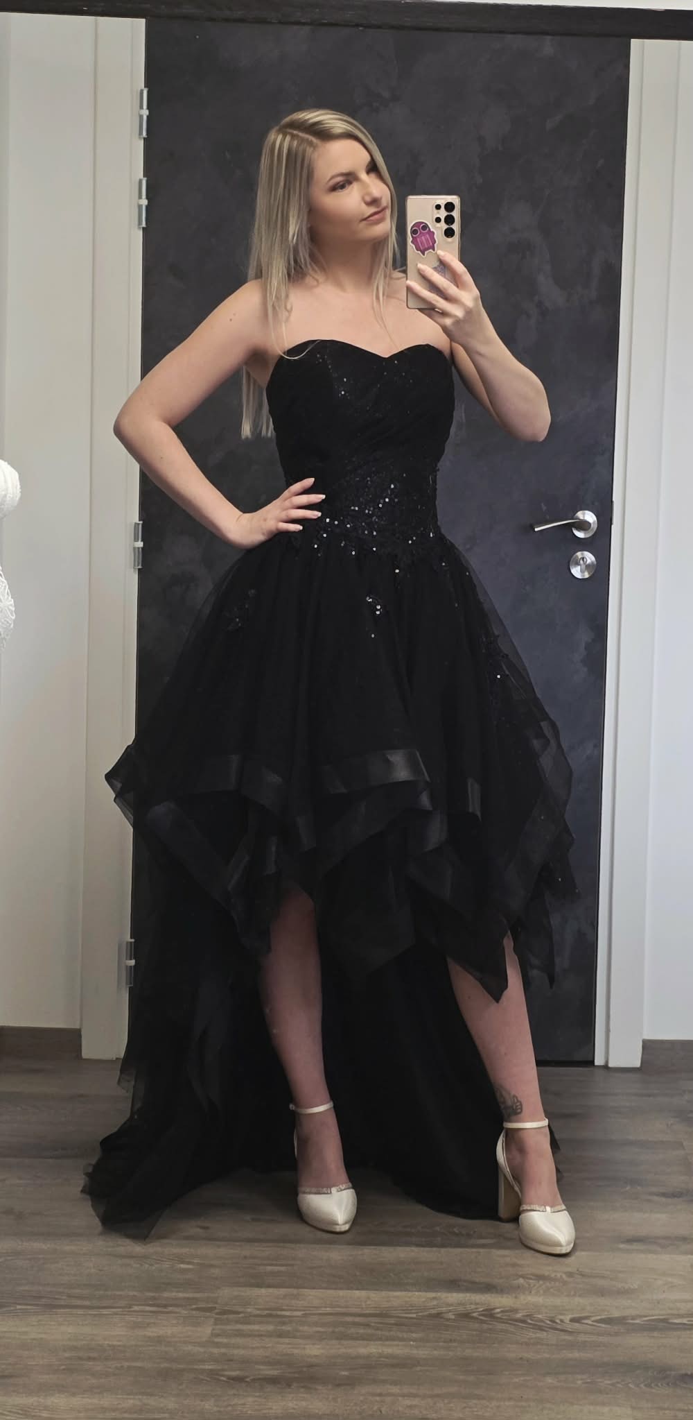 Magnifique robe de mariée noire assymétrique