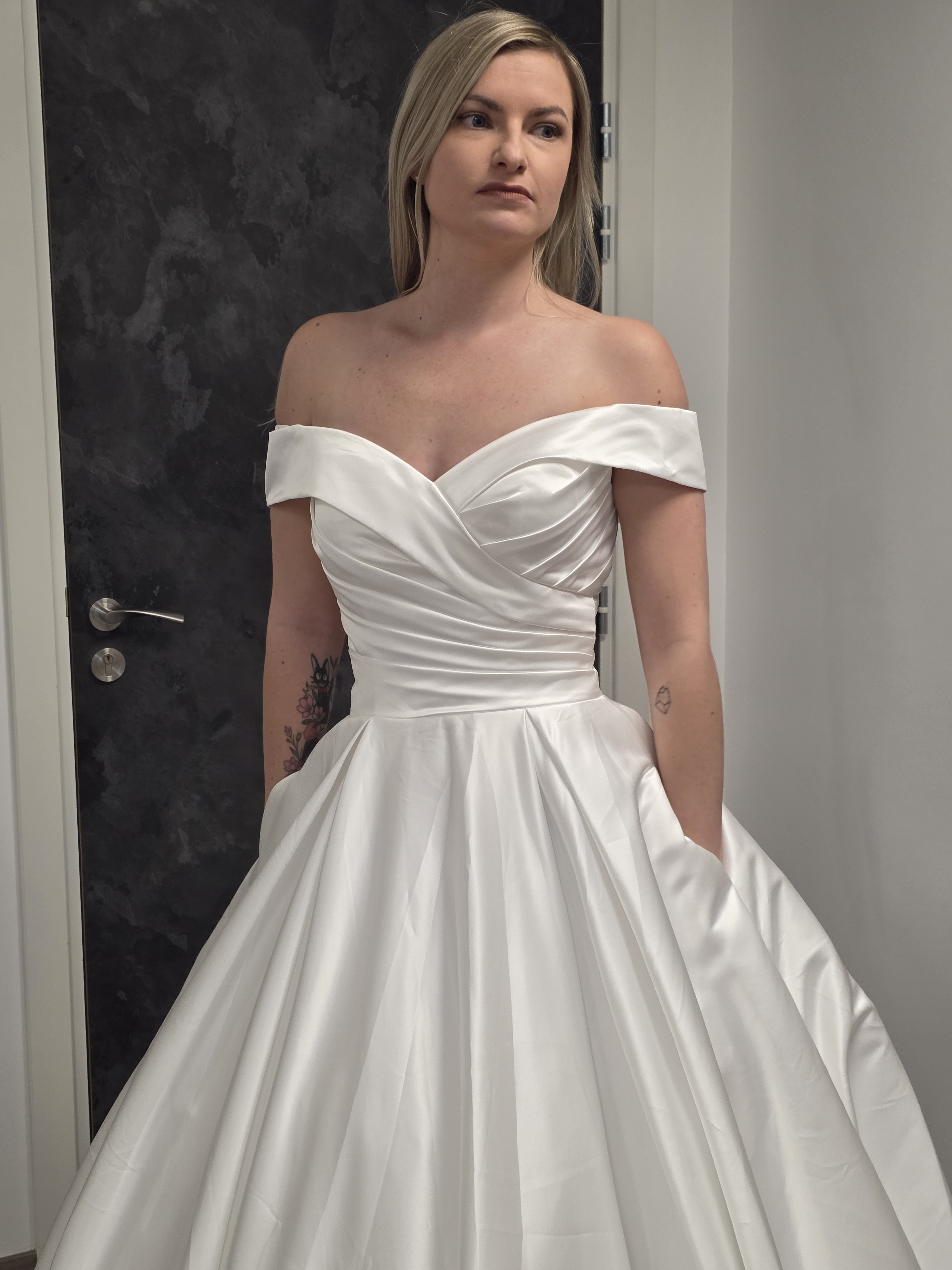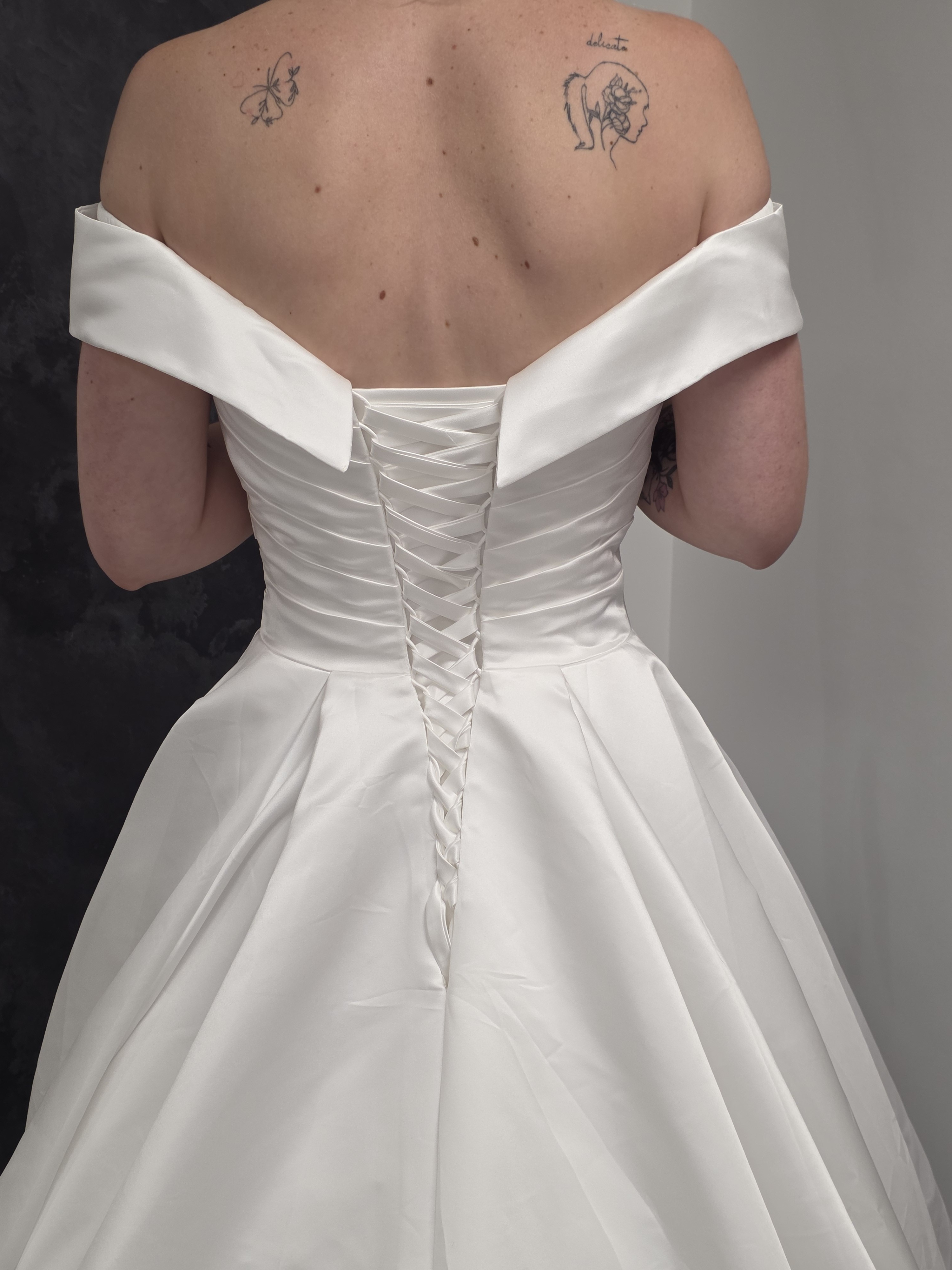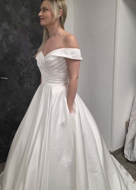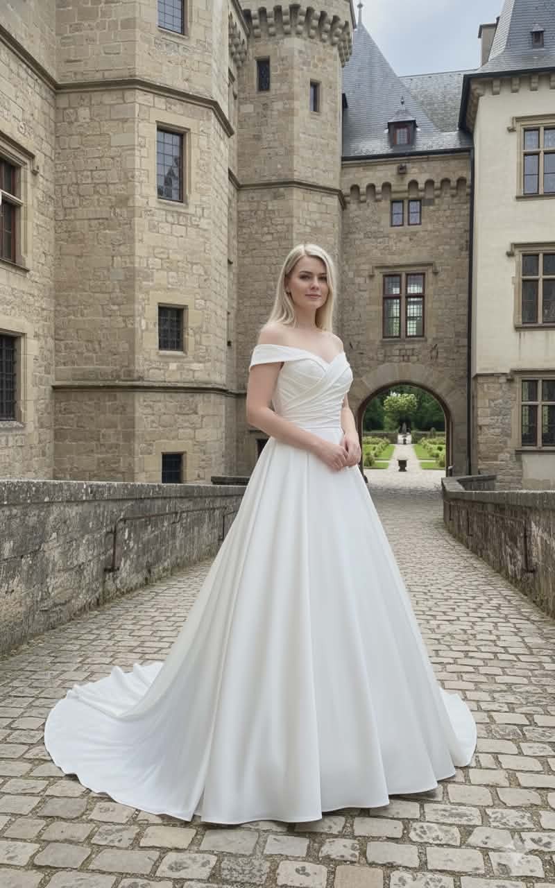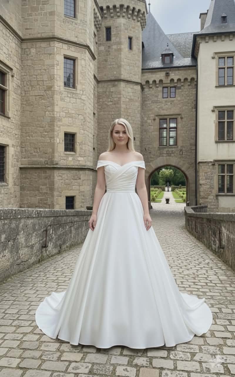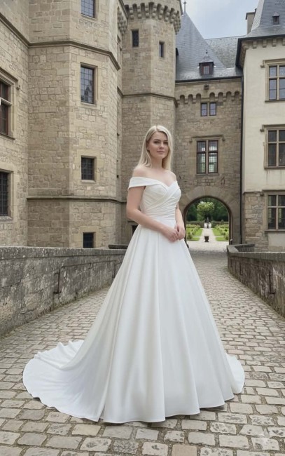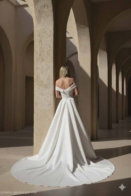 Sublimez votre grand jour avec cette robe de mariée princesse en satin ivoire clair, conçue pour un look élégant et romantique. Grâce à son juponnage en tulle, elle offre un effet princesse Sissi léger et aérien, parfait pour briller à chaque pas.