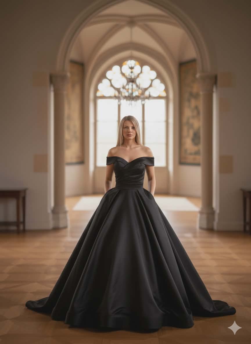 Sublimez votre grand jour avec cette version noire de la robe de mariée princesse en satin duchesse, conçue pour un look élégant et romantique. Grâce à son juponnage en tulle, elle offre un effet princesse Sissi léger et aérien, parfait pour briller à chaque pas.