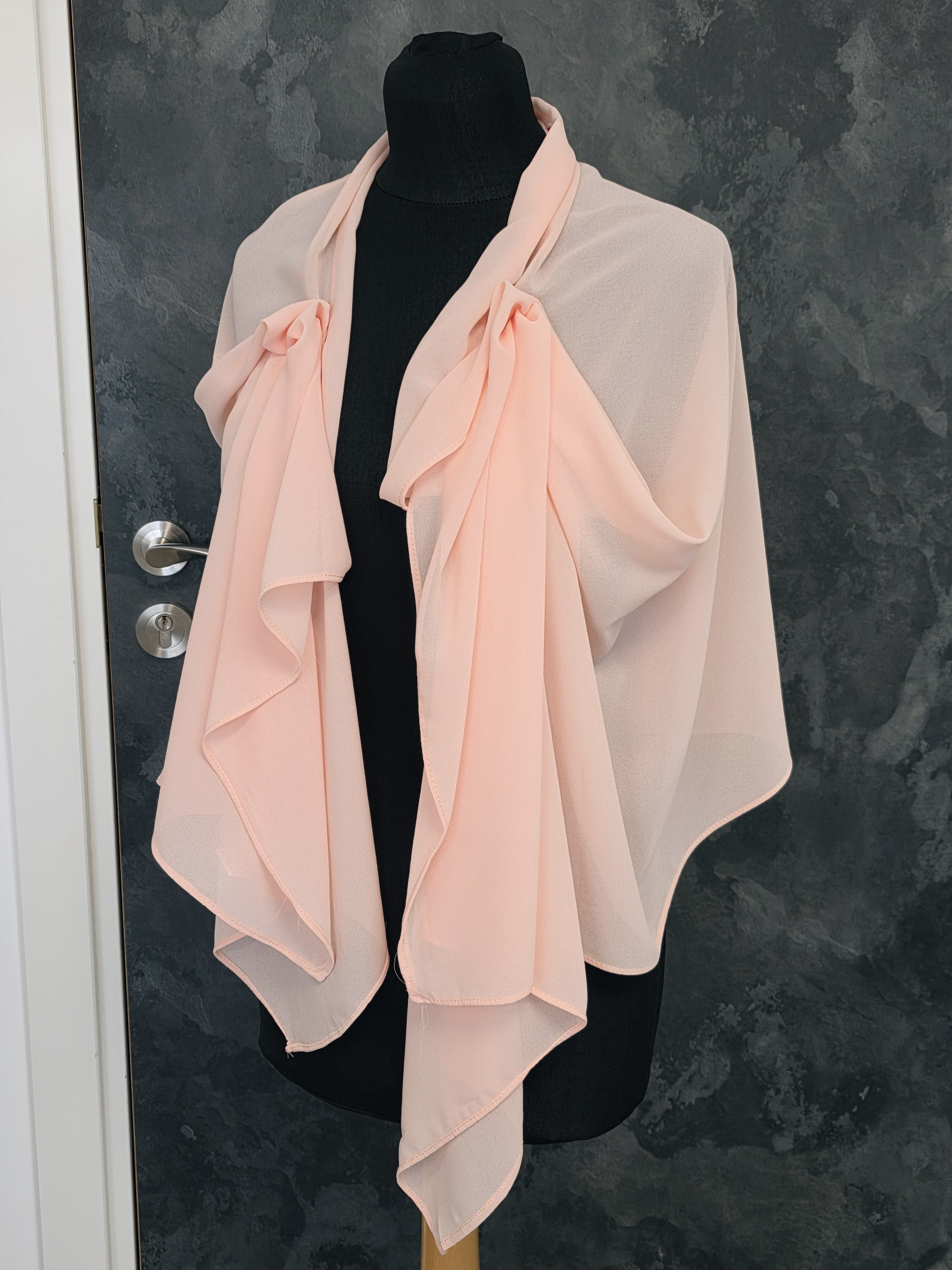 Apportez une touche d’élégance et de douceur à votre tenue avec cette magnifique étole rose saumon au tombé fluide et aérien.