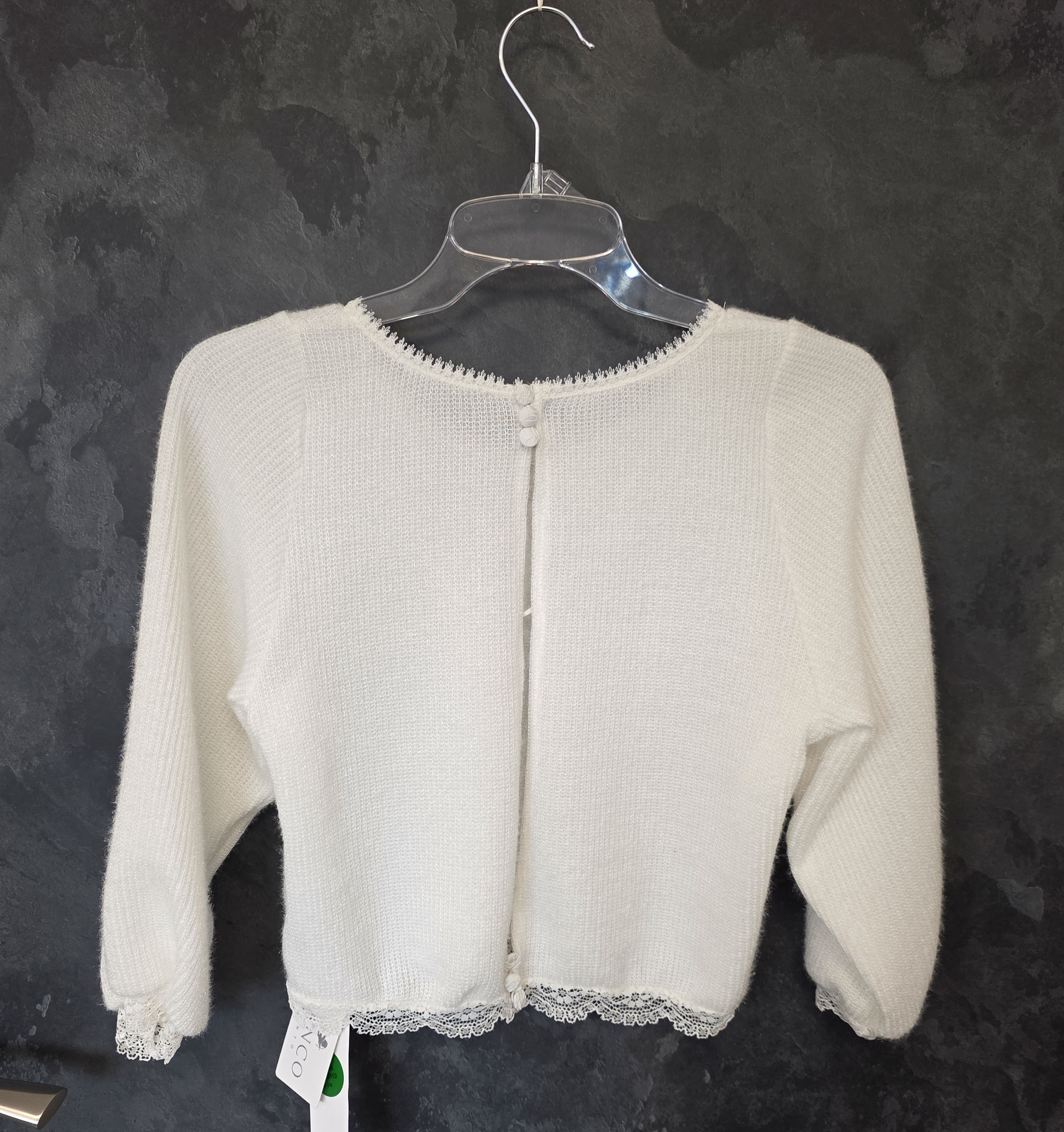 Apportez douceur et élégance à votre tenue de mariage avec ce pull court ivoire spécialement pensé pour les mariées.