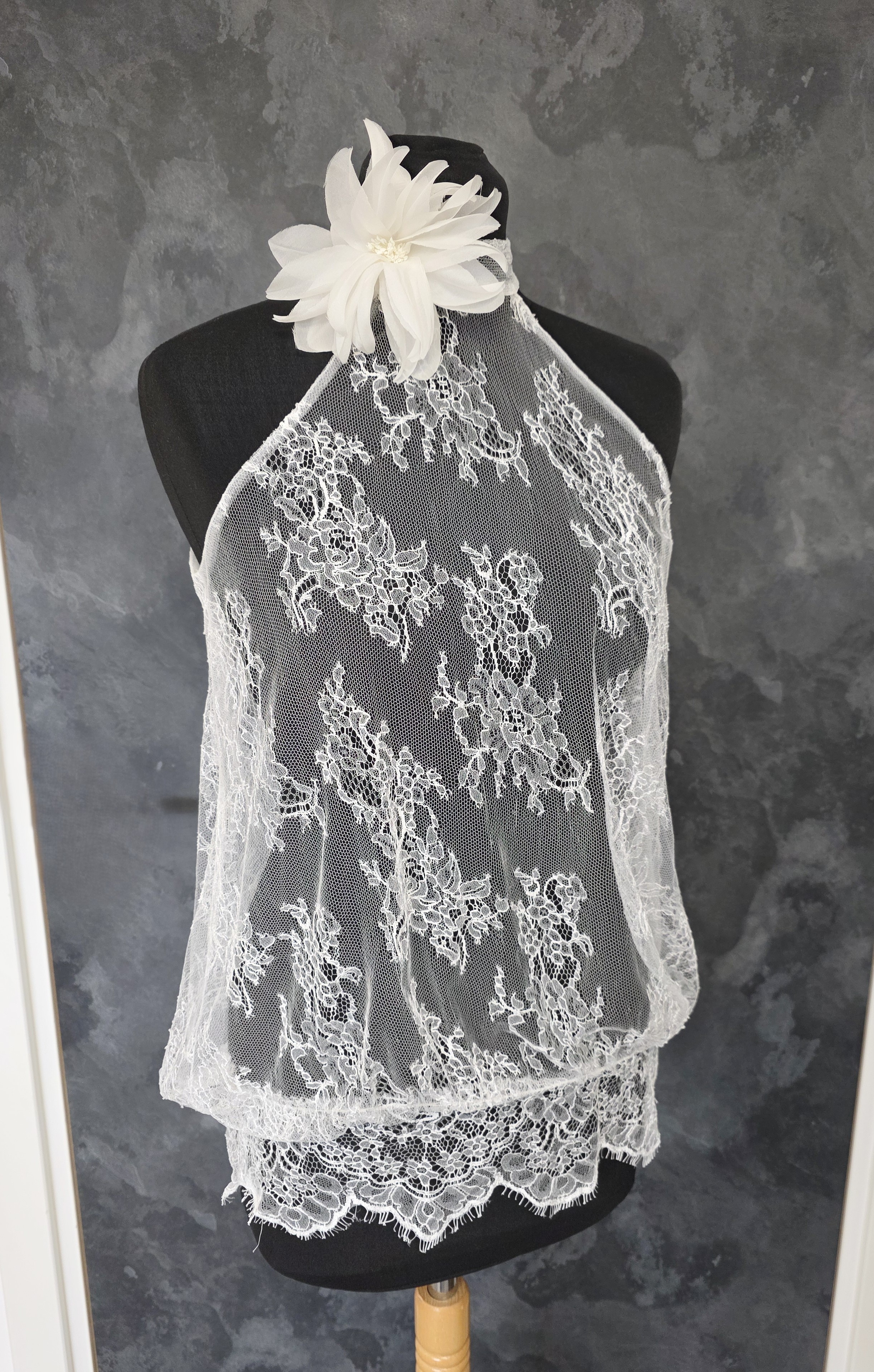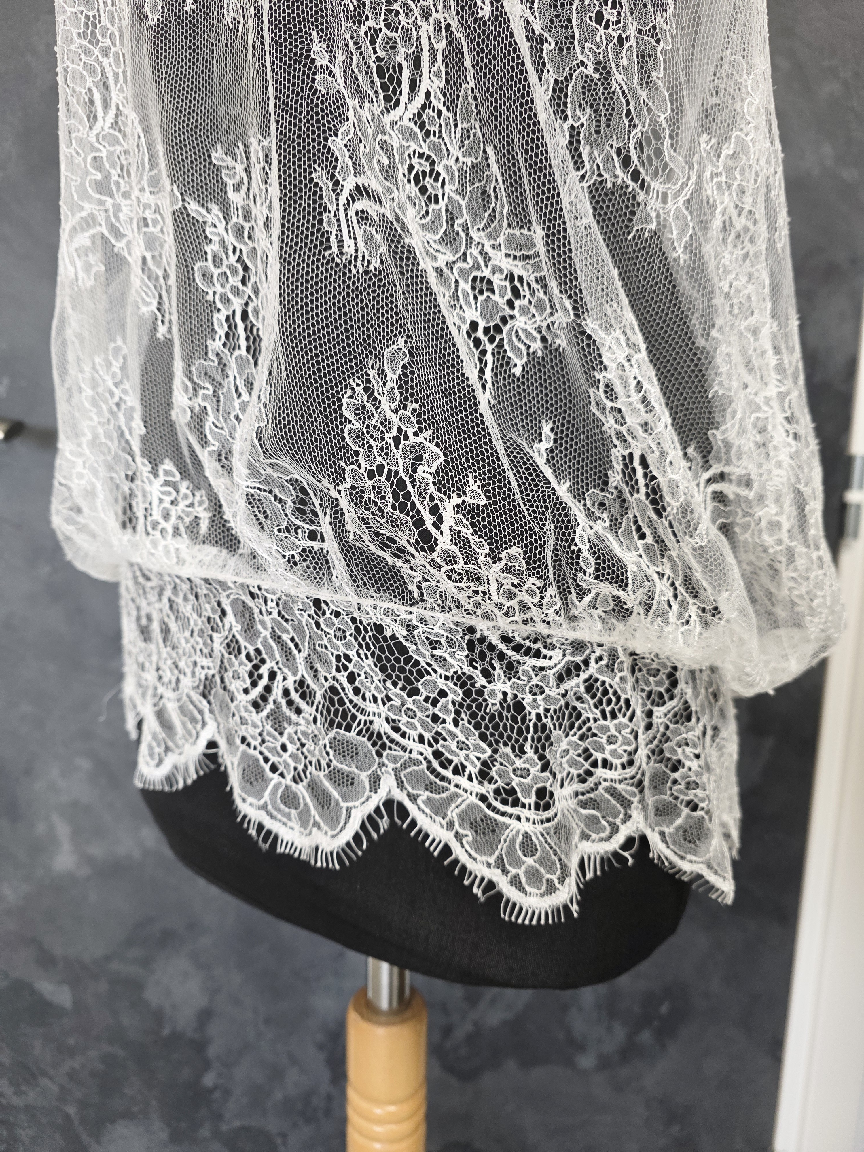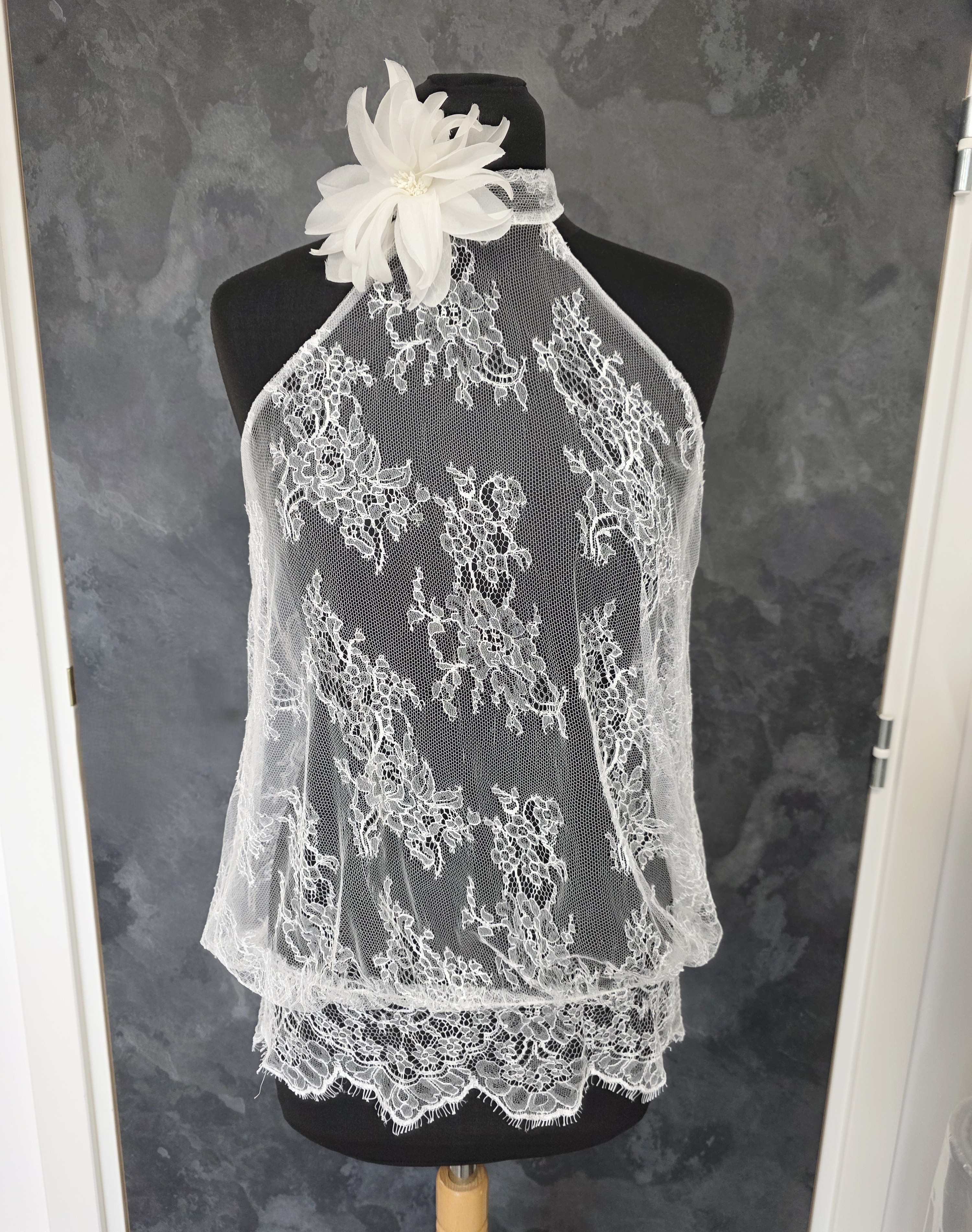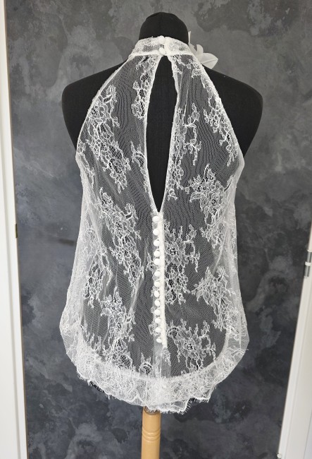 Top mariée blousant en véritable dentelle française de Calais, délicate et raffinée.