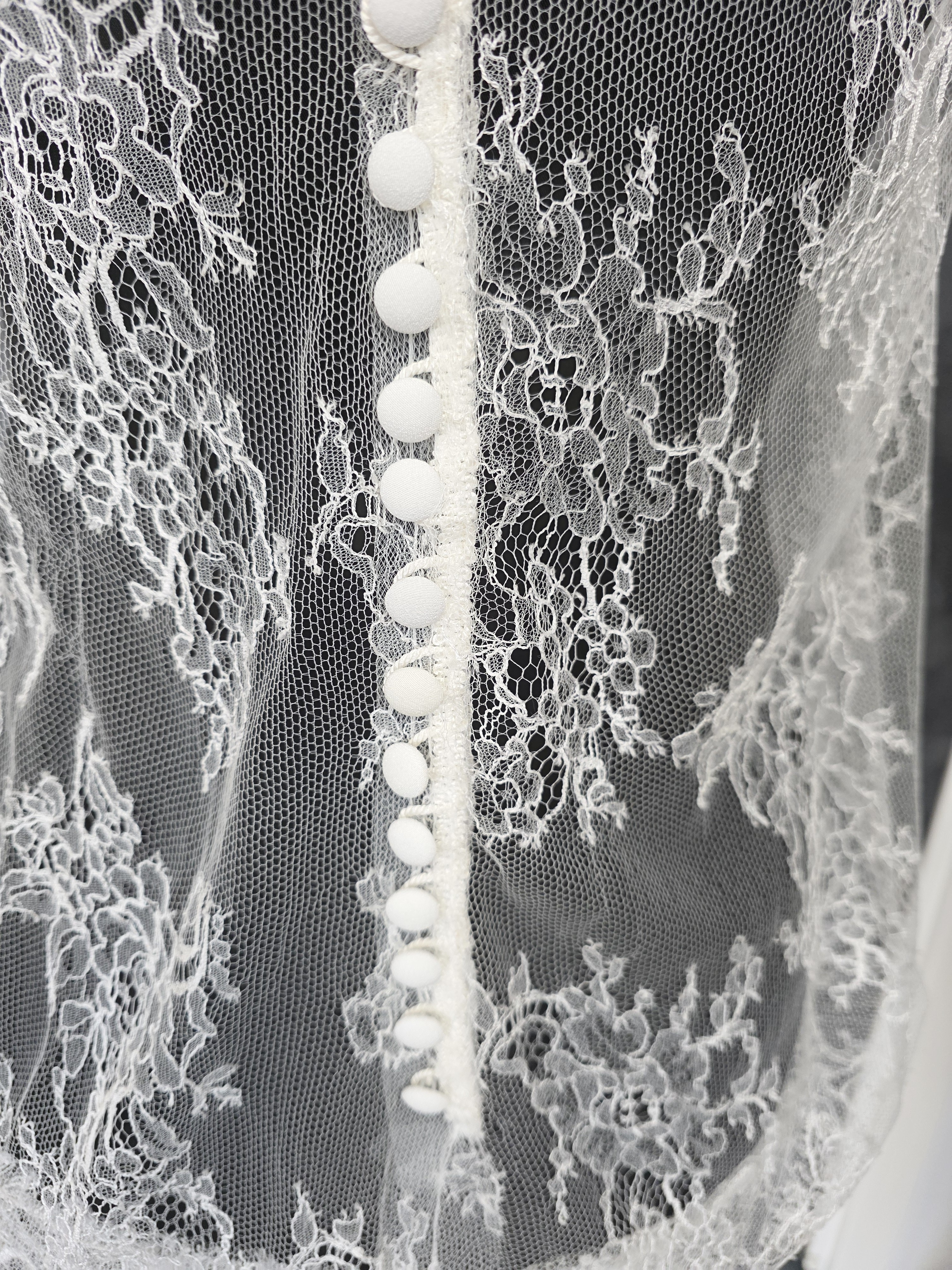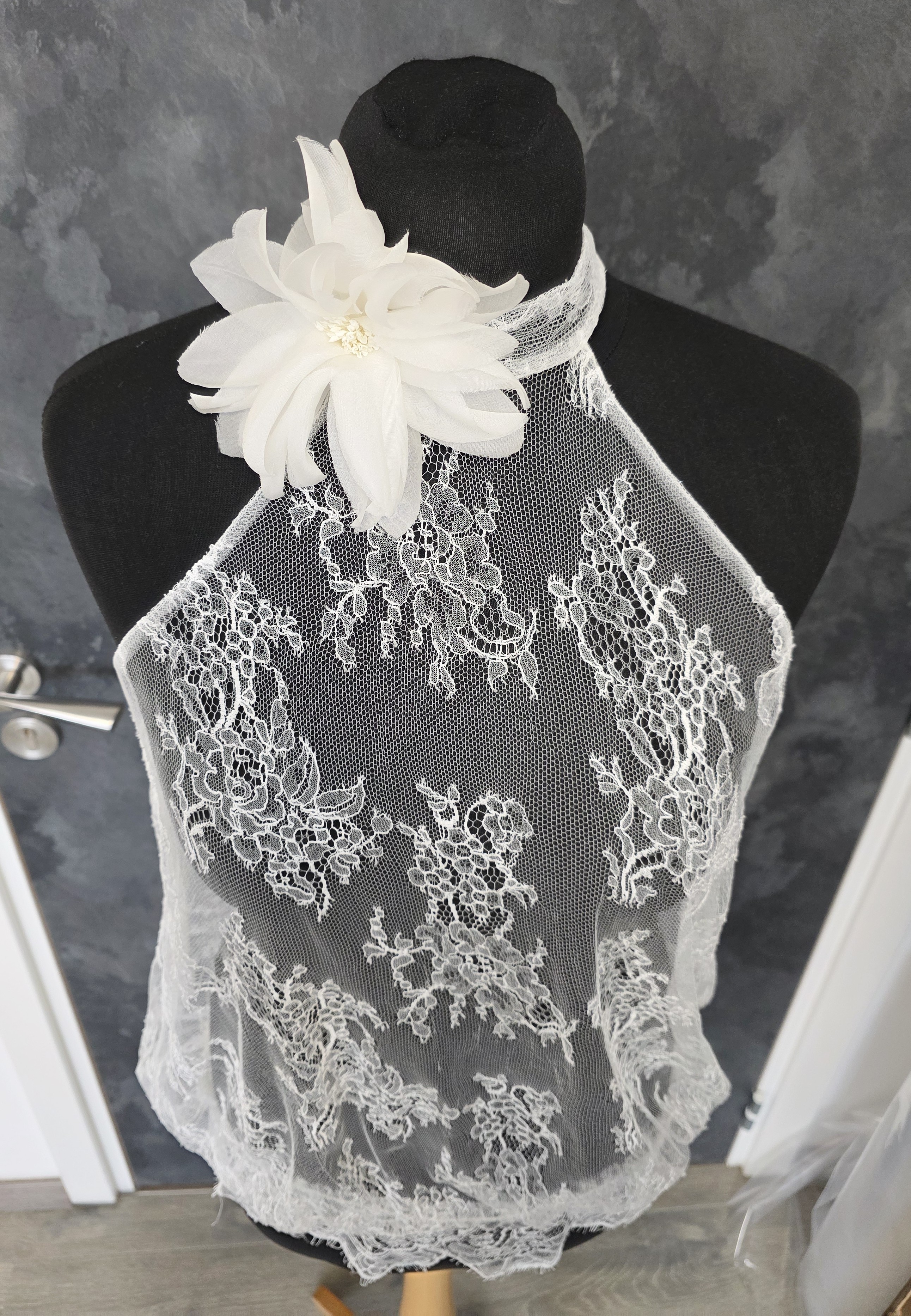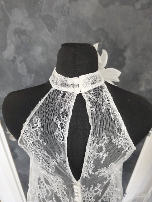 Top mariée blousant en véritable dentelle française de Calais, délicate et raffinée.