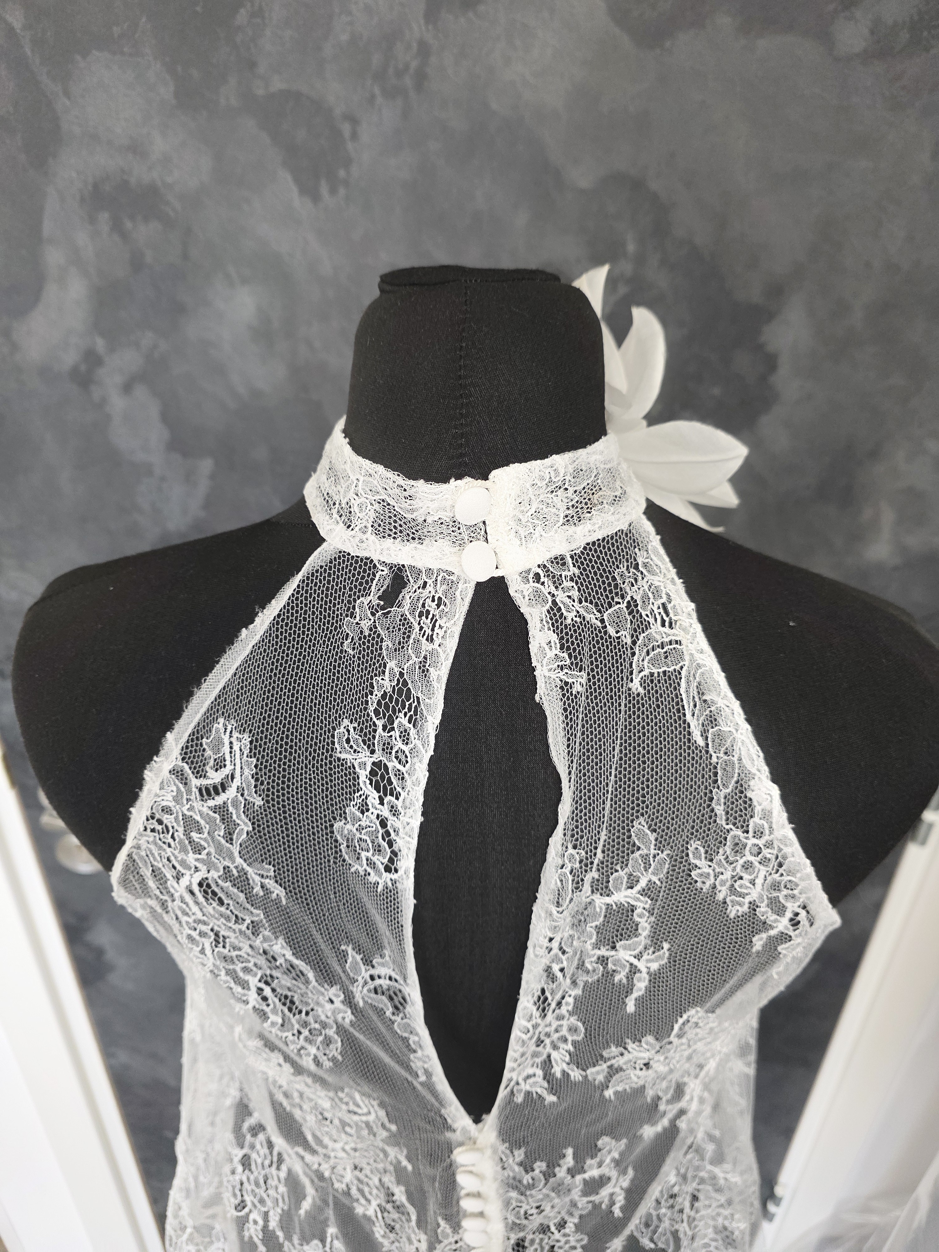 Une pièce de superposition idéale pour personnaliser une robe de mariée avec sophistication et caractère.