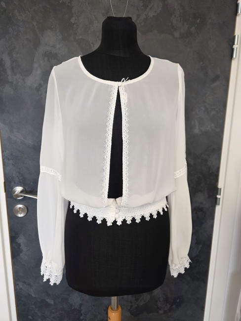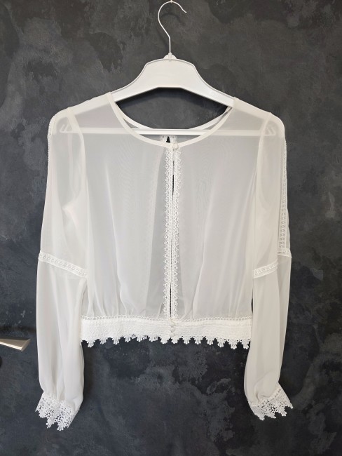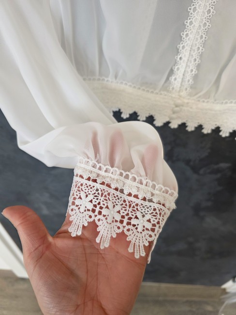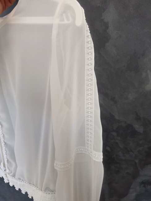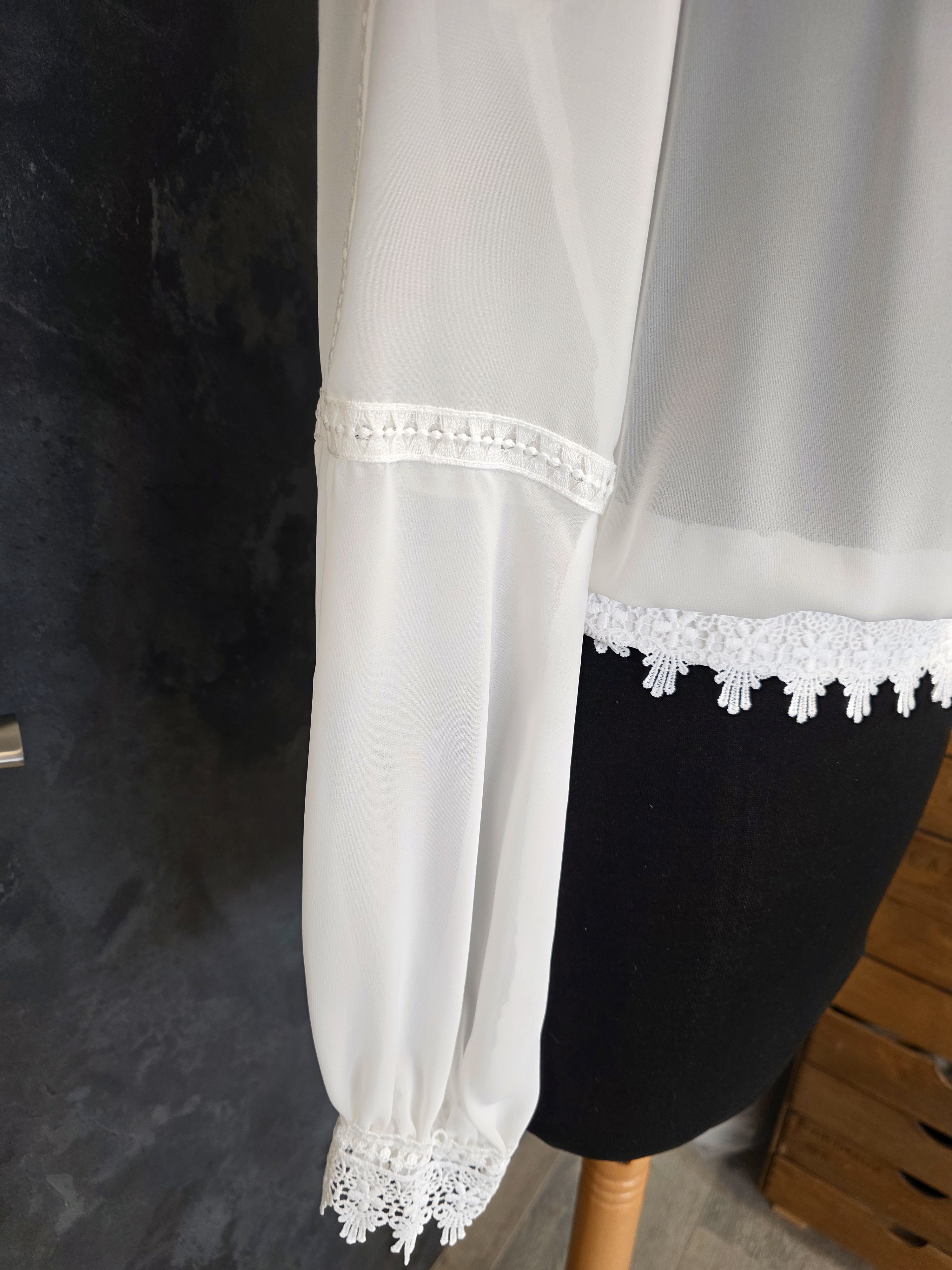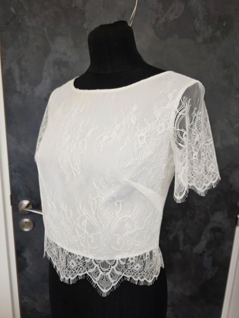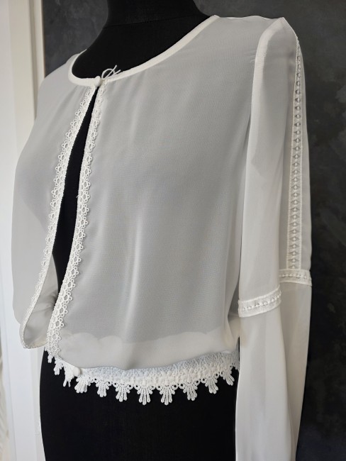 Top pour mariée en mousseline ivoire , manchettes en dentelle Taille