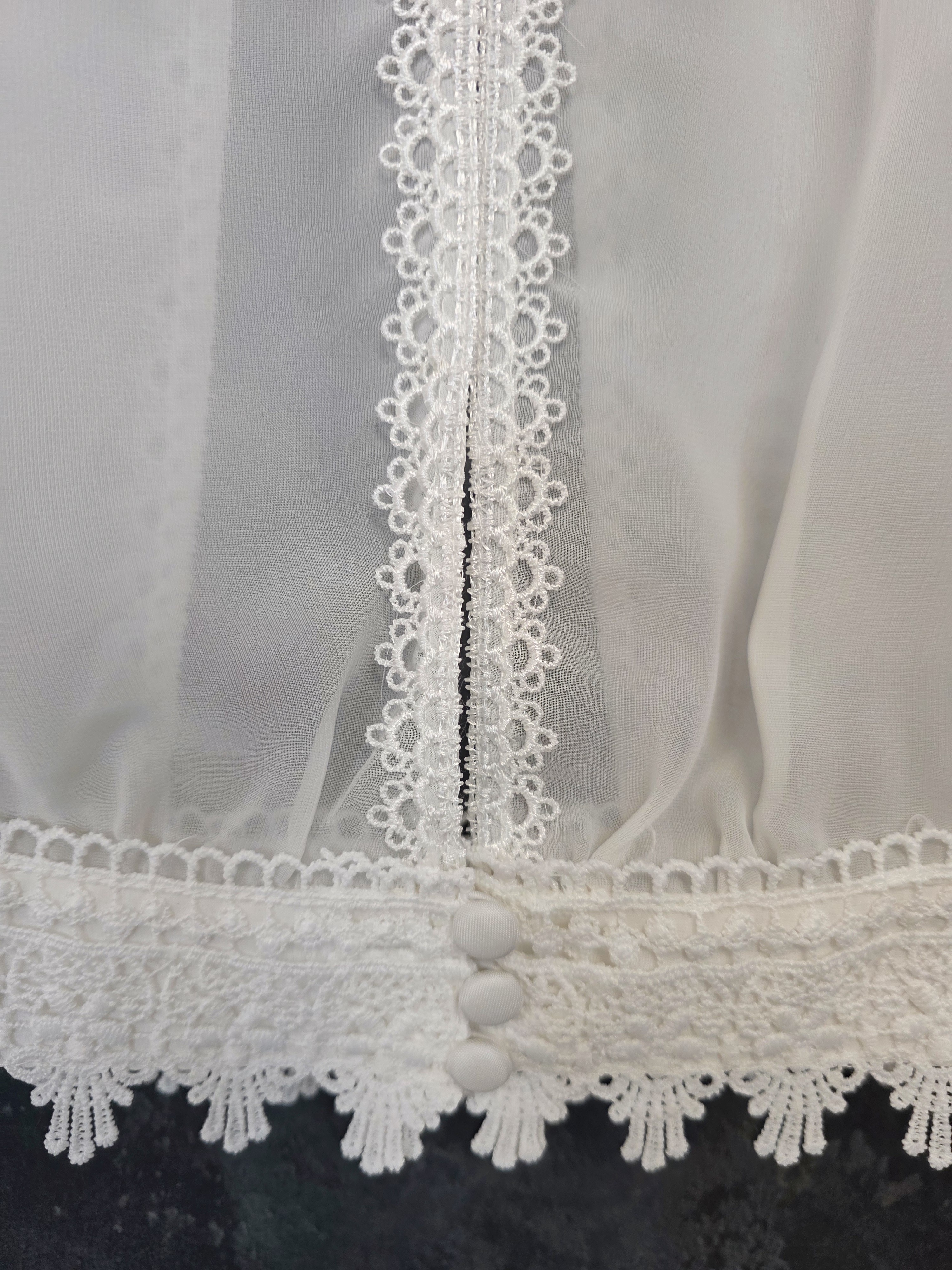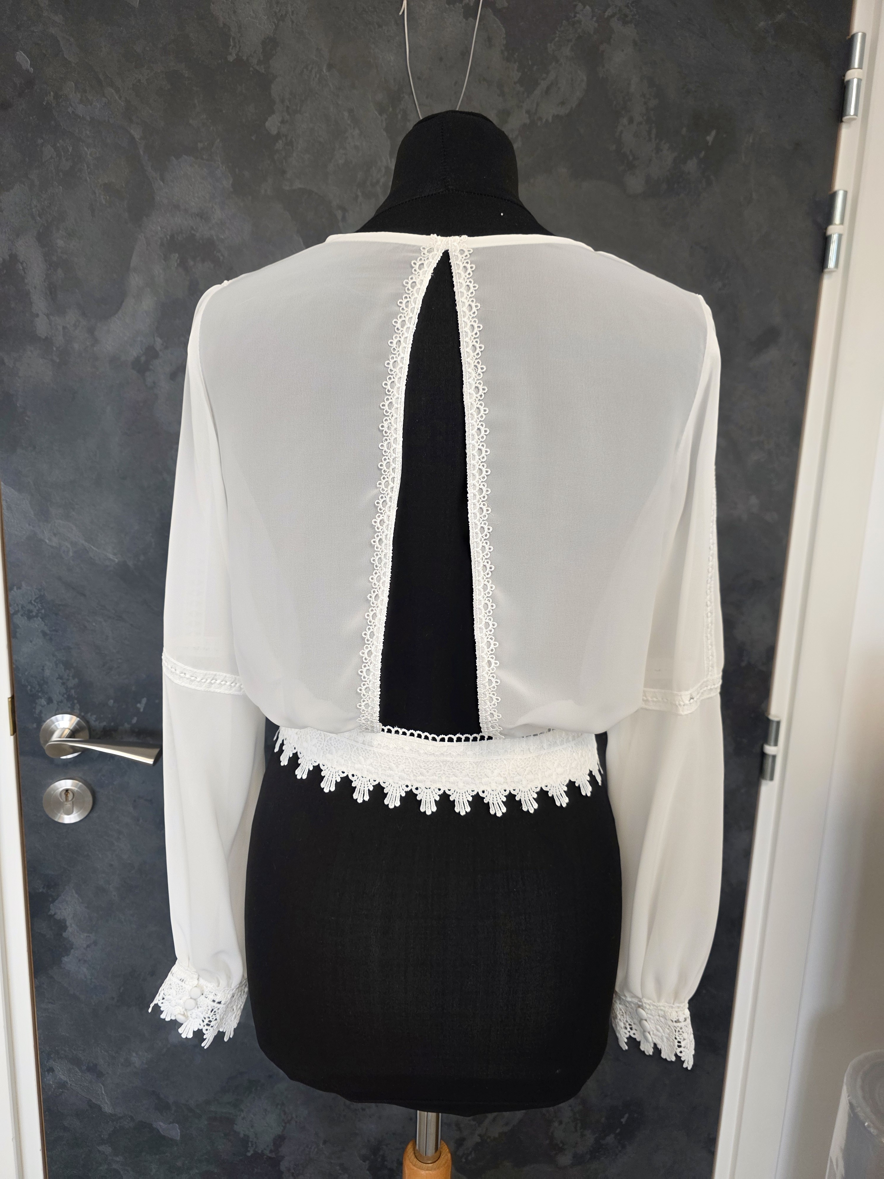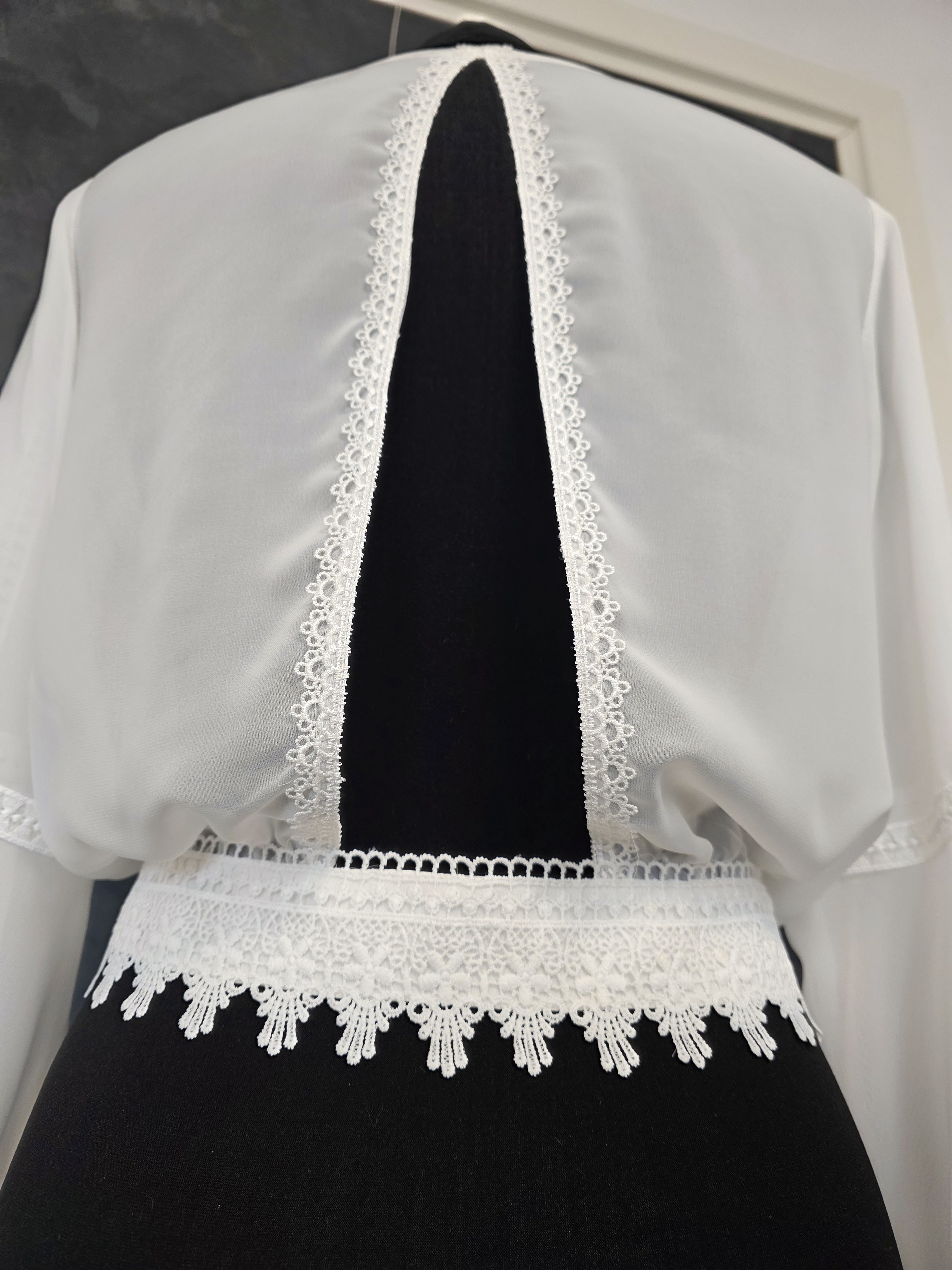 Top pour mariée en mousseline ivoire , manchettes en dentelle Taille
