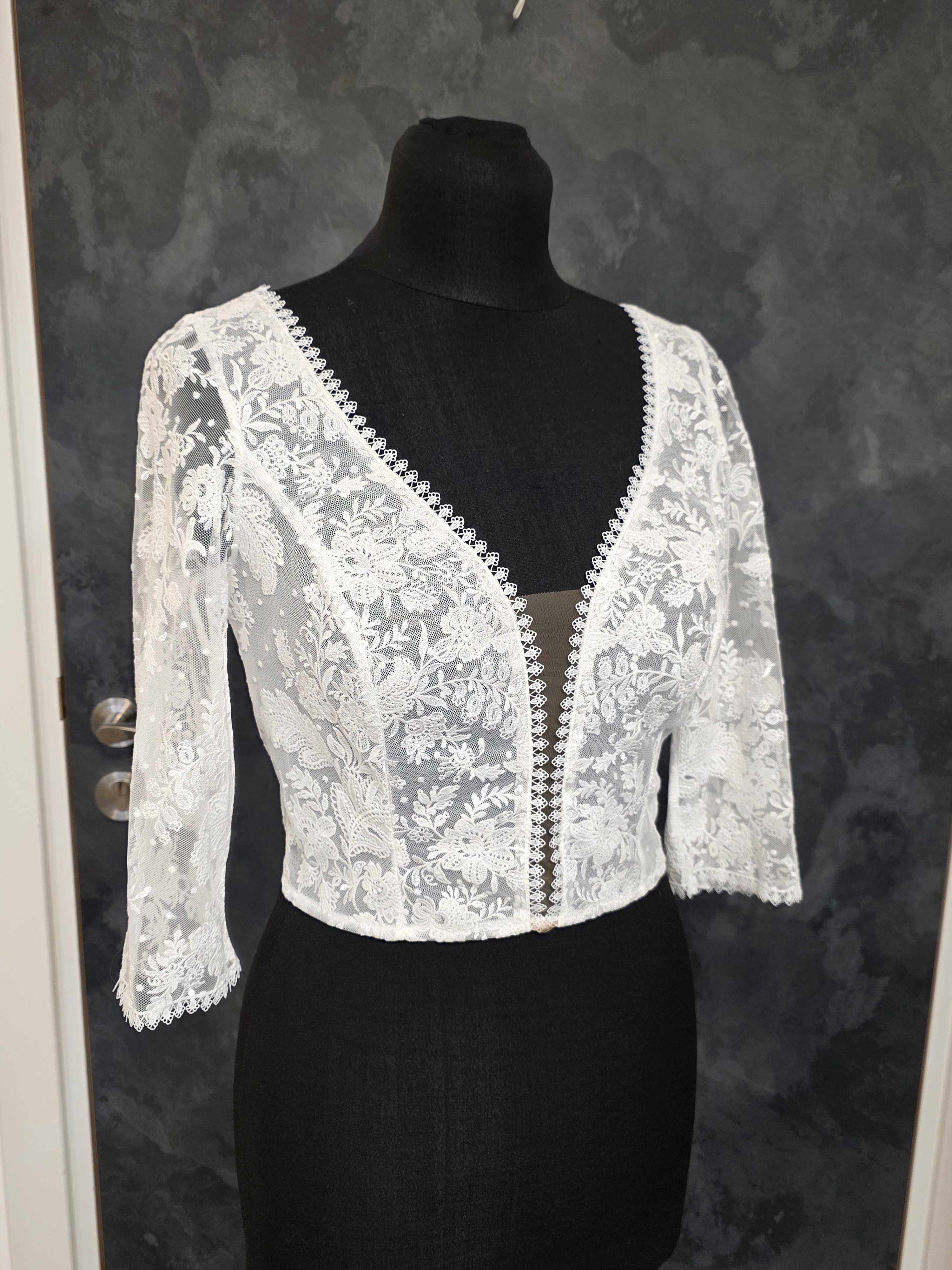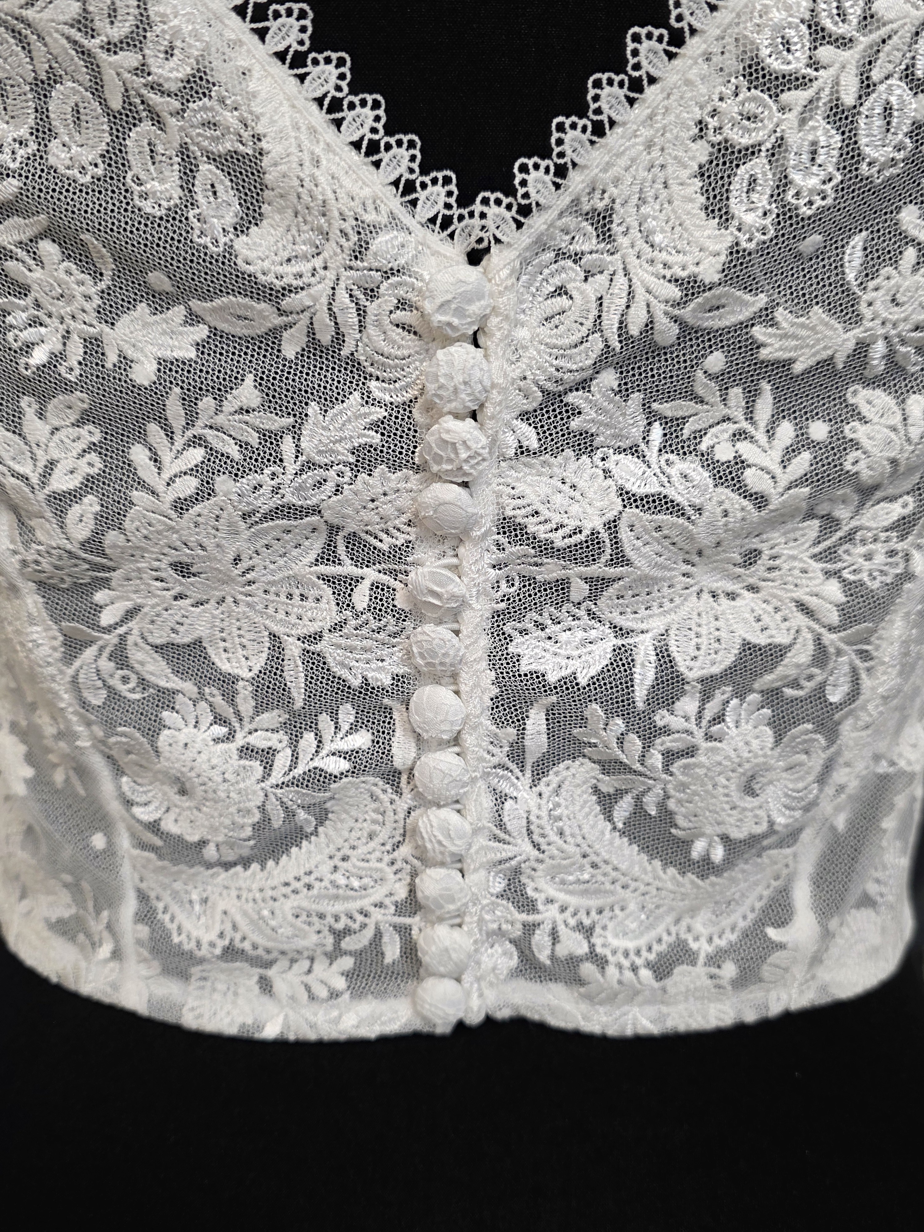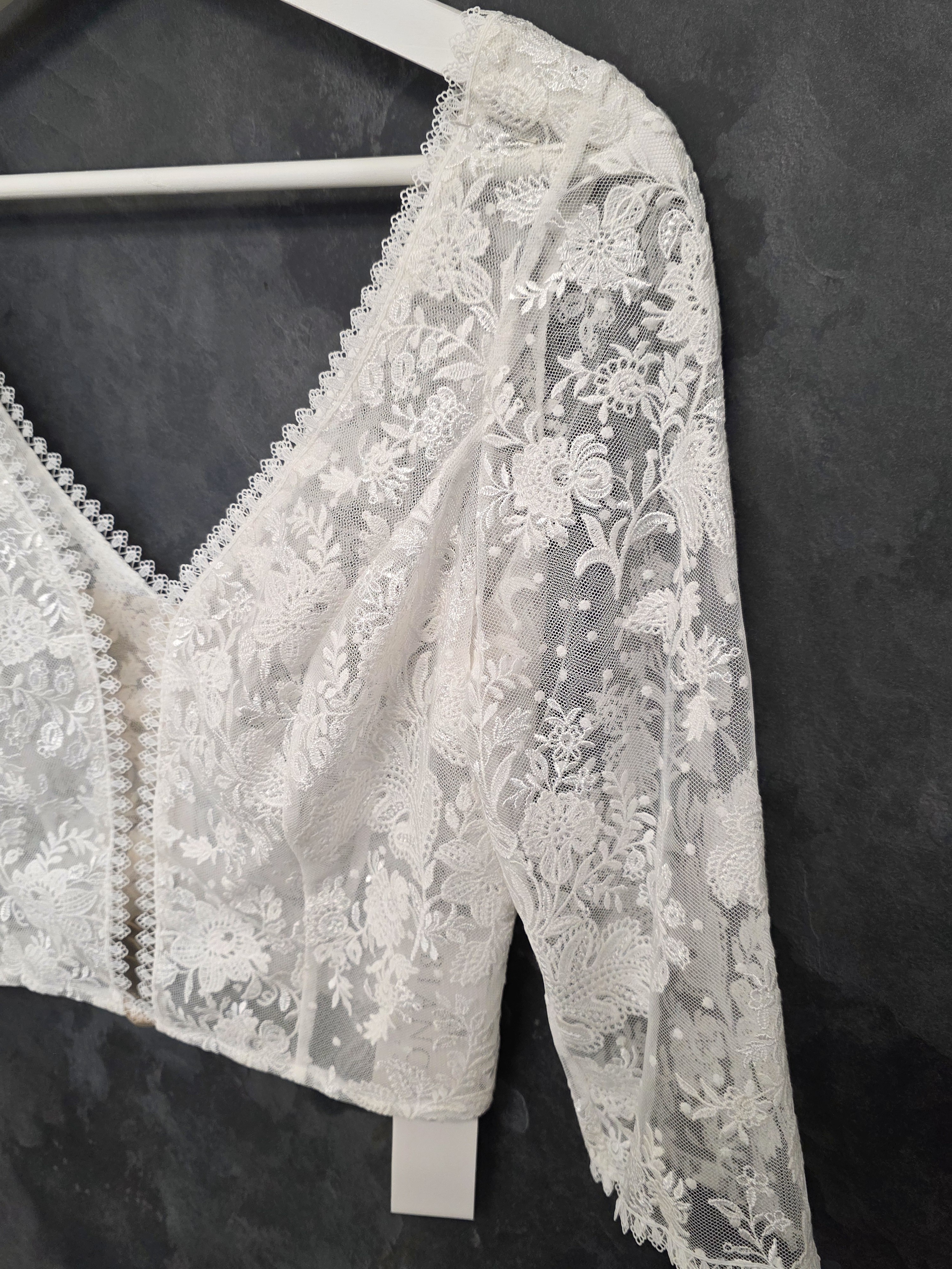Top mariée en dentelle fine ivoire clair, délicat et raffiné.