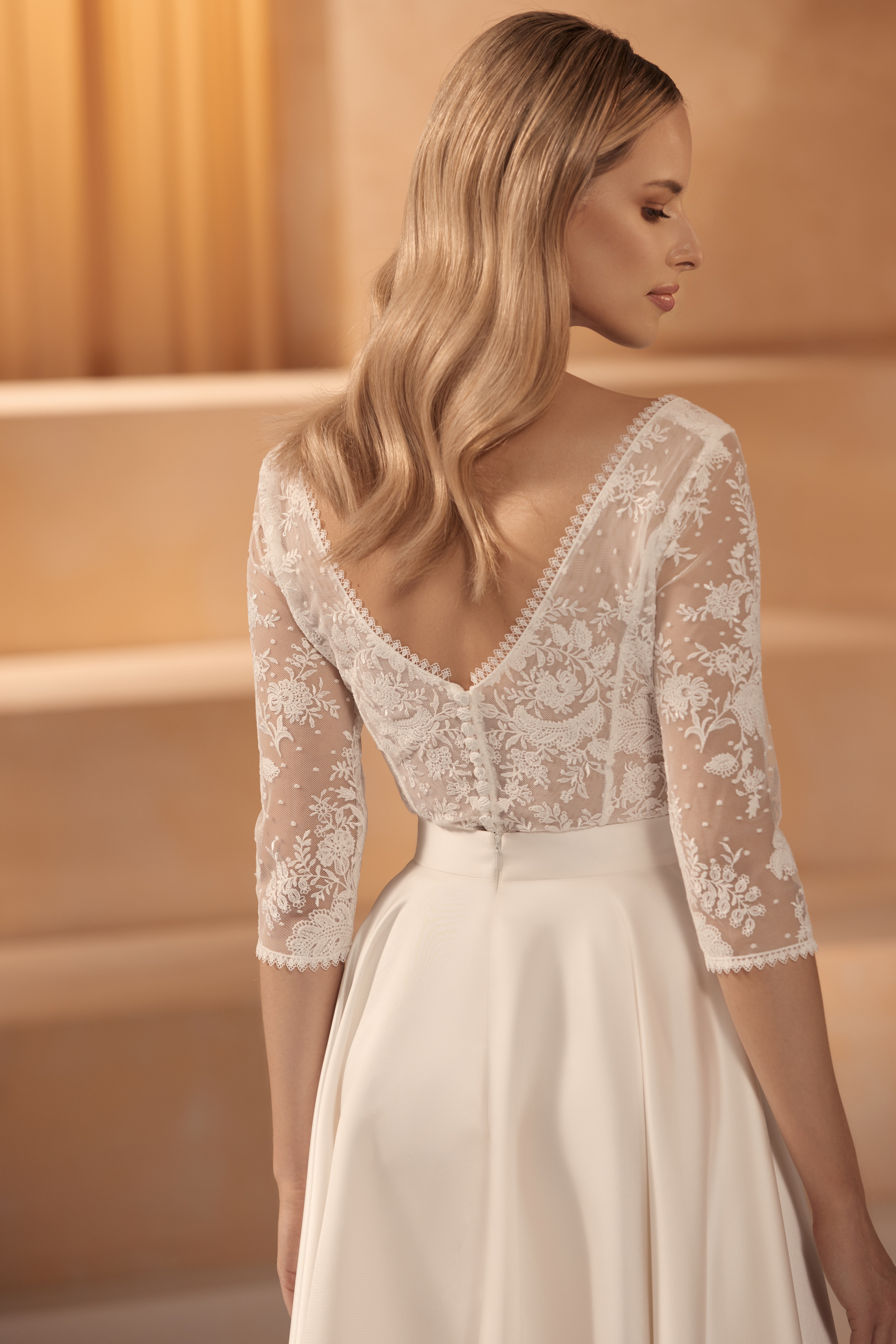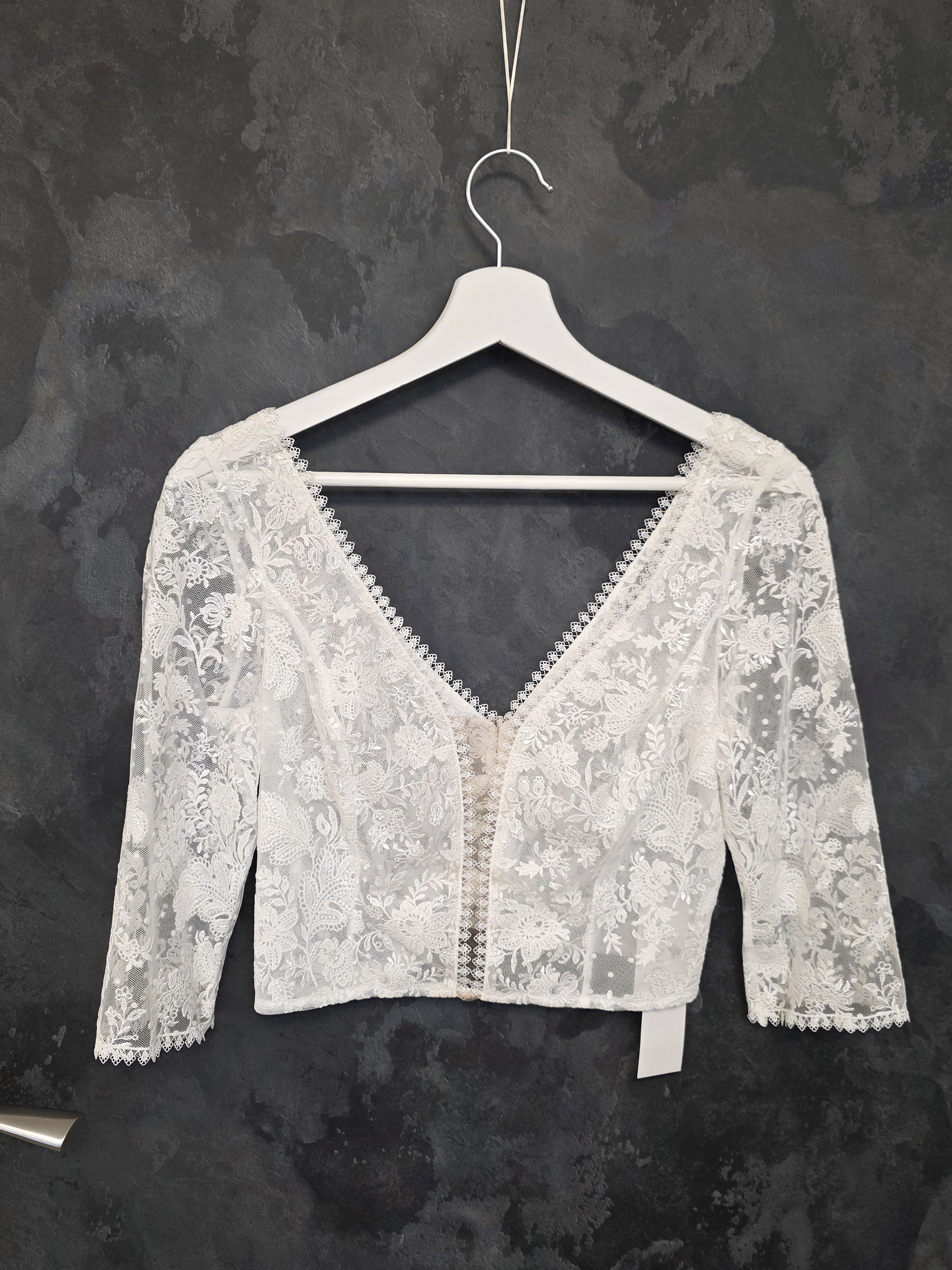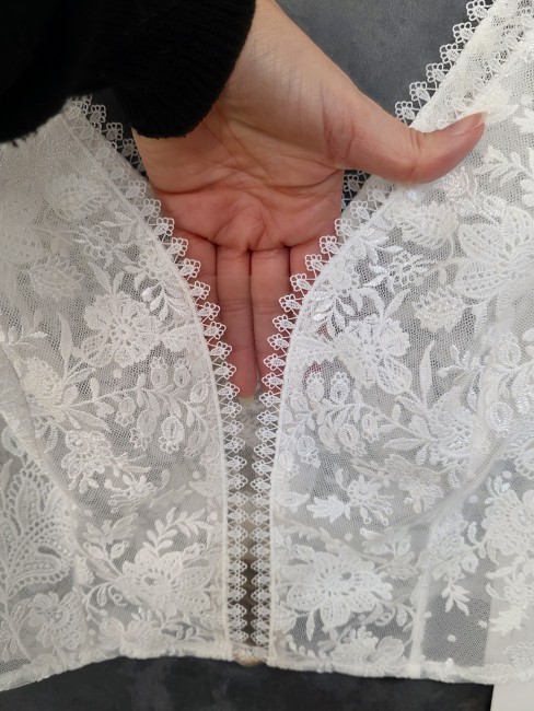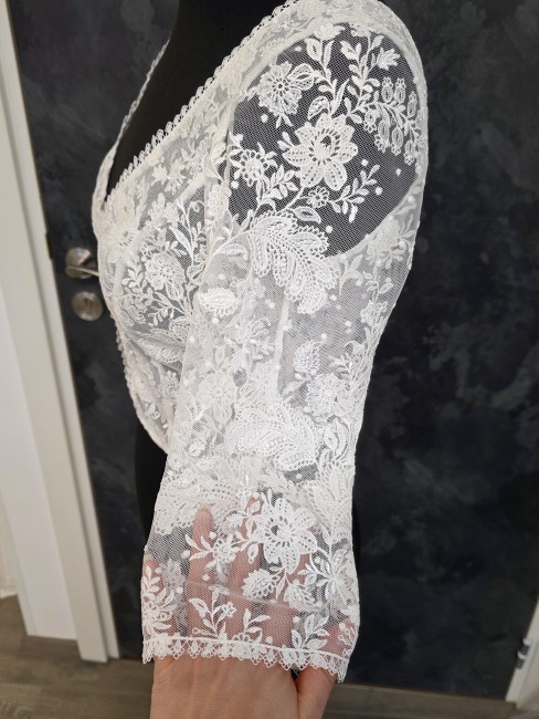 Top mariée en dentelle fine ivoire clair, délicat et raffiné.