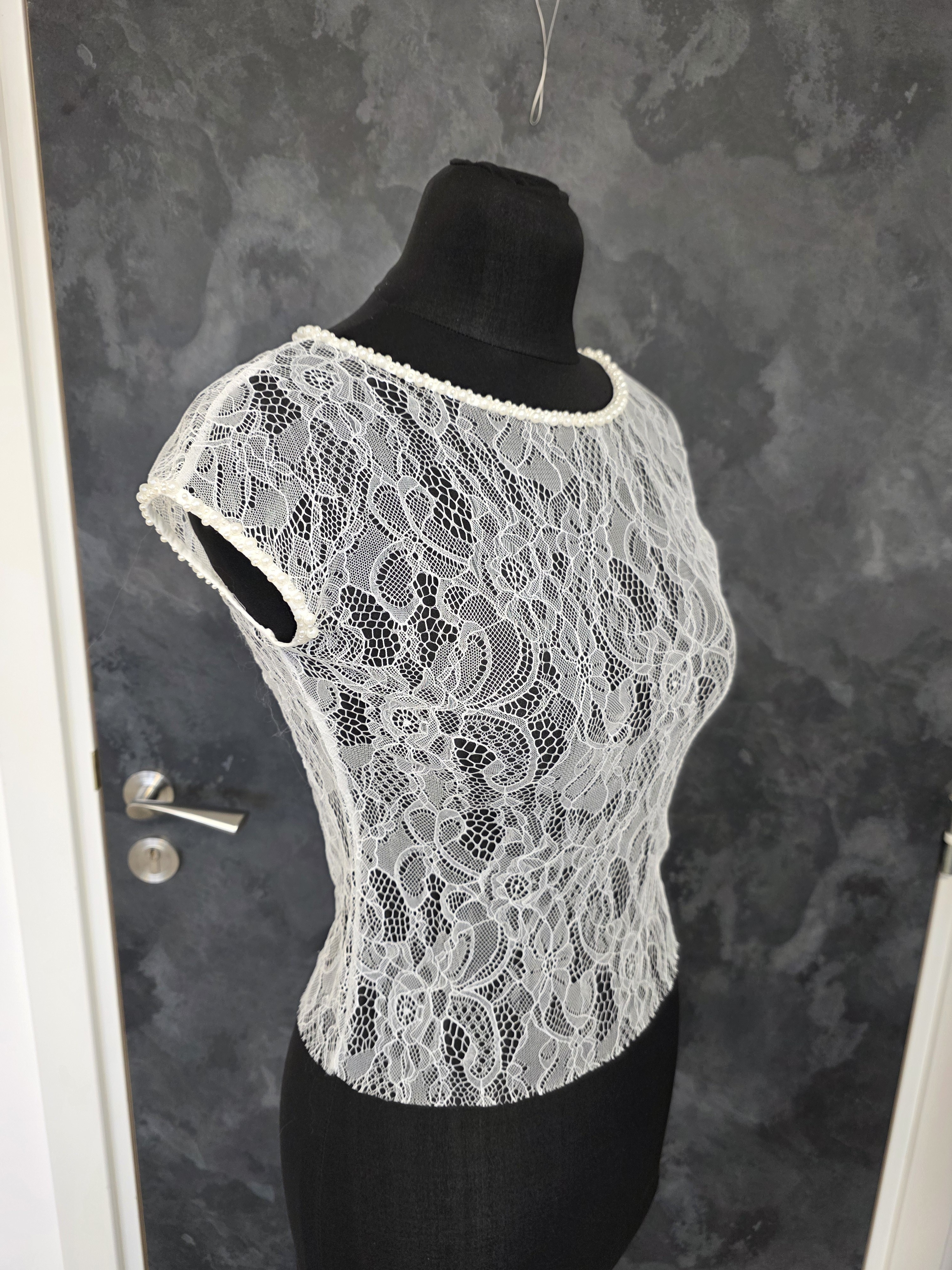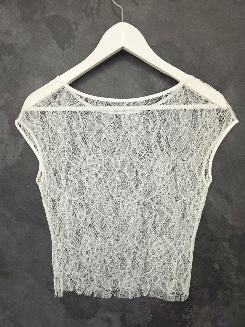 Délicat et raffiné, ce top de mariée en dentelle stretch ivoire clair apporte élégance et confort à votre tenue.
