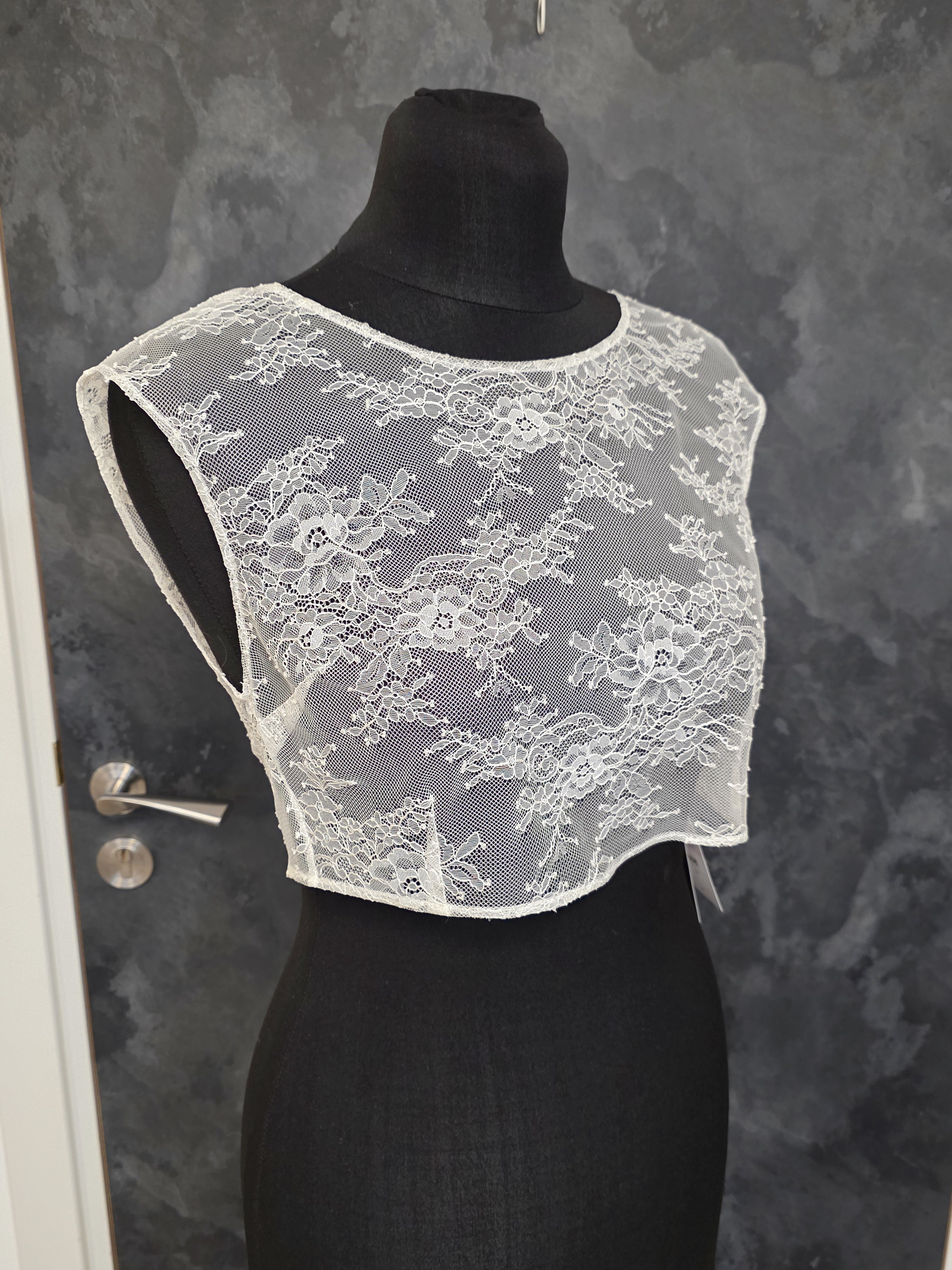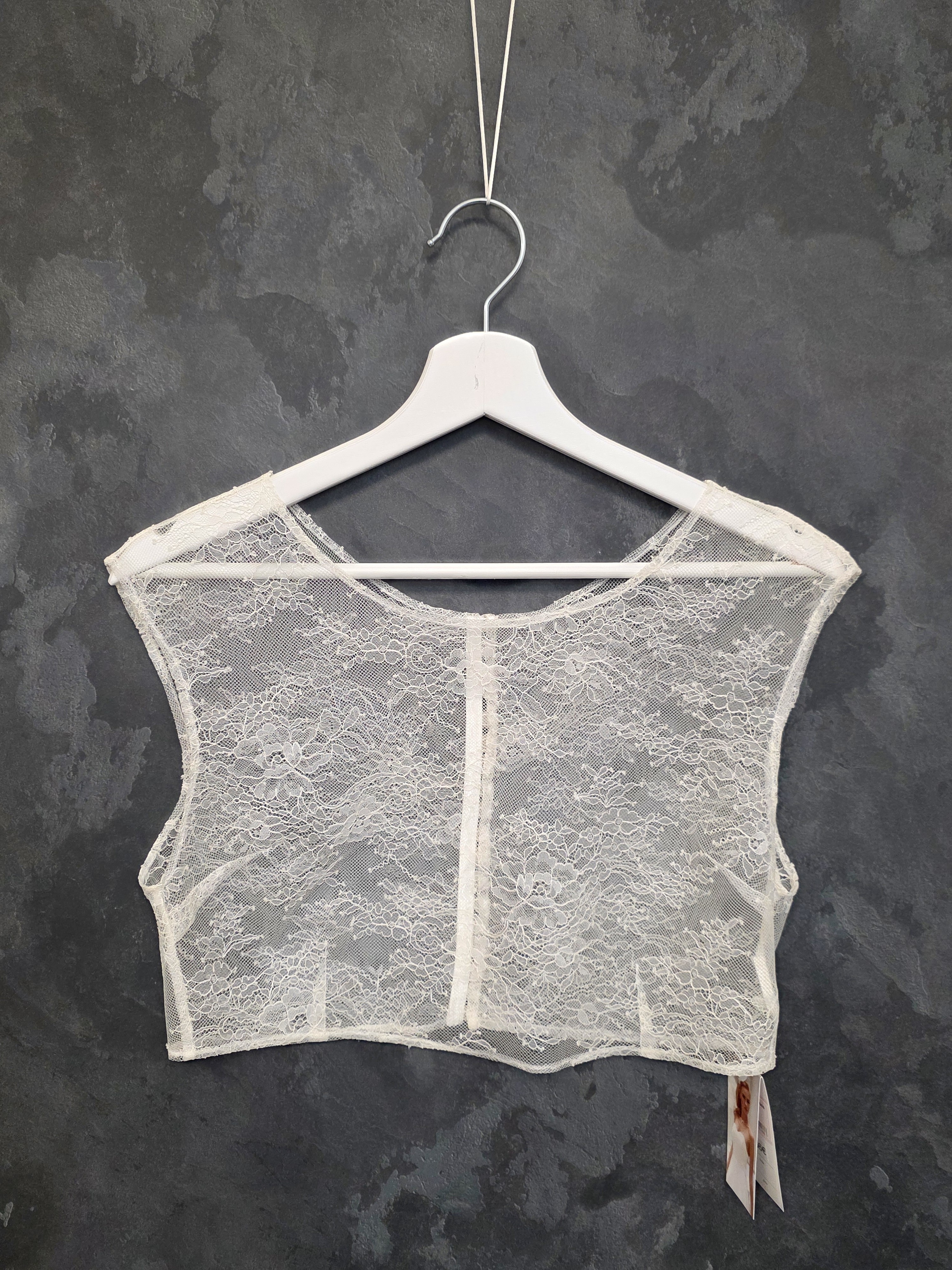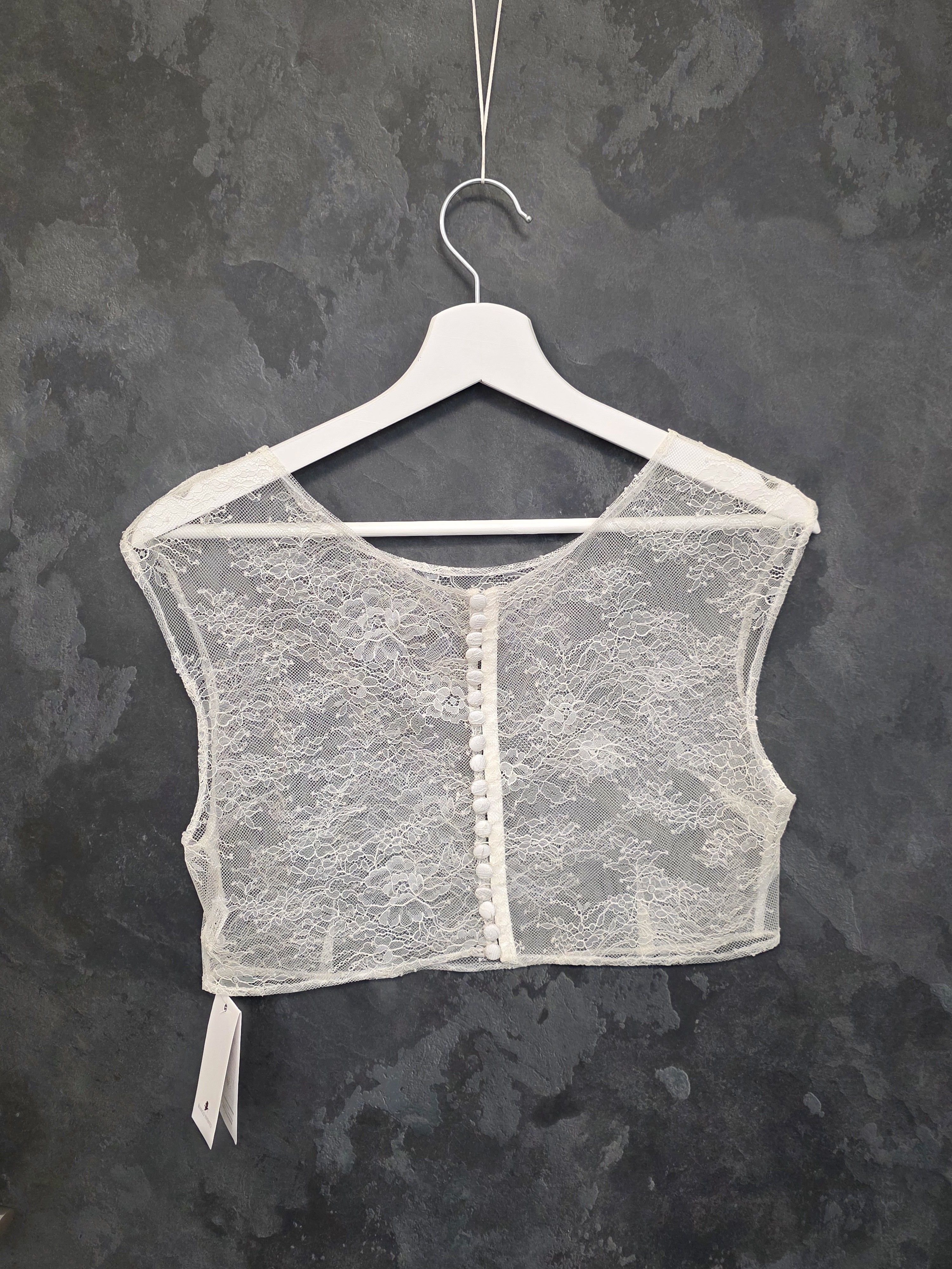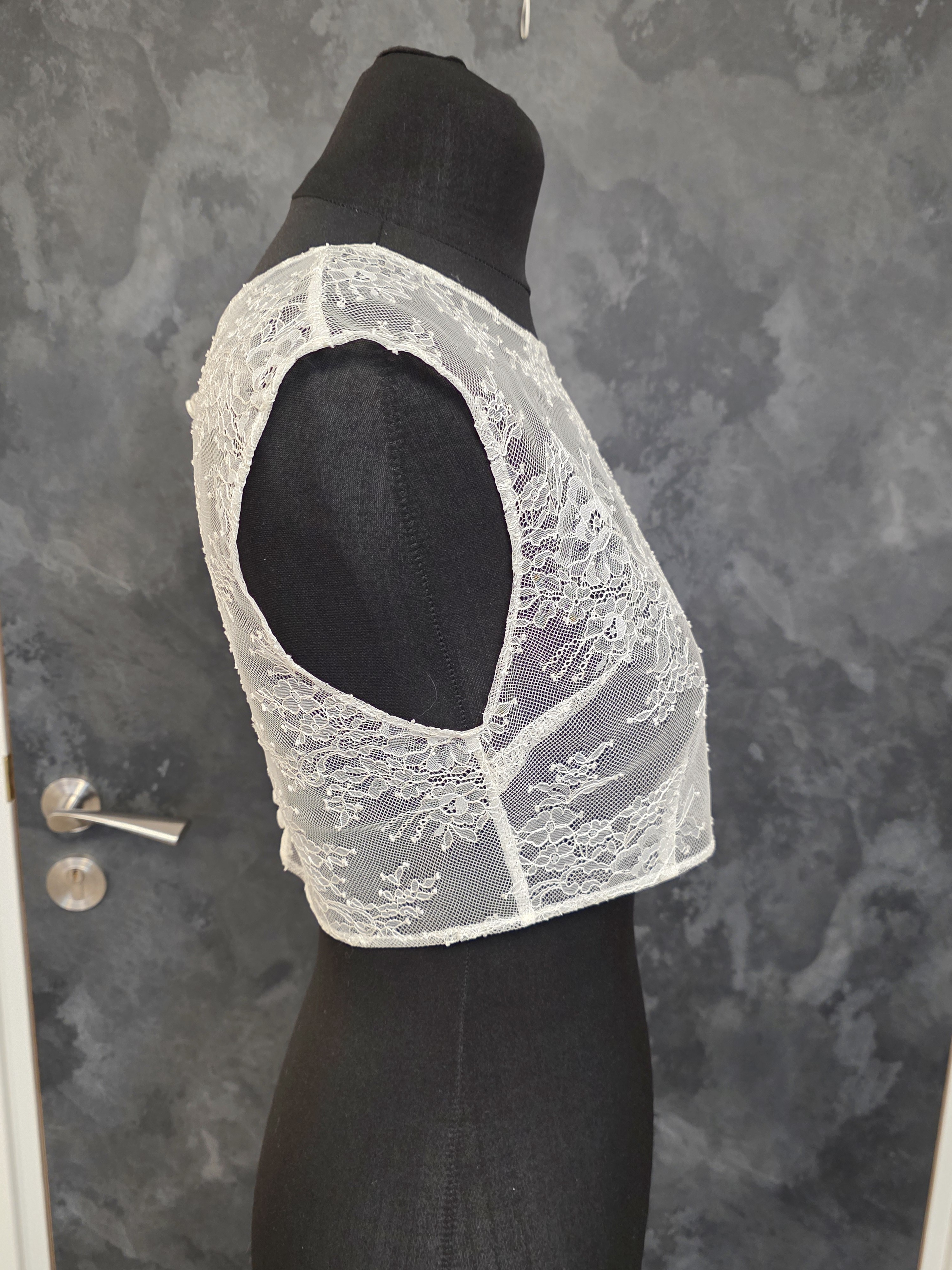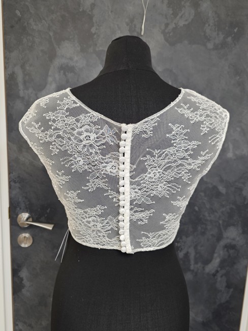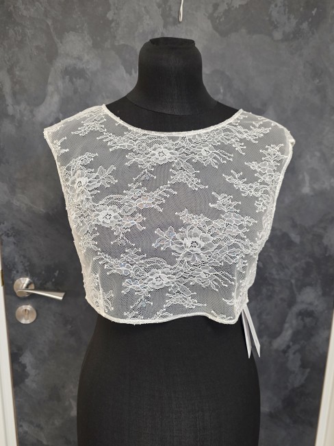 Top de mariée en dentelle fine ivoire clair, délicat et raffiné.