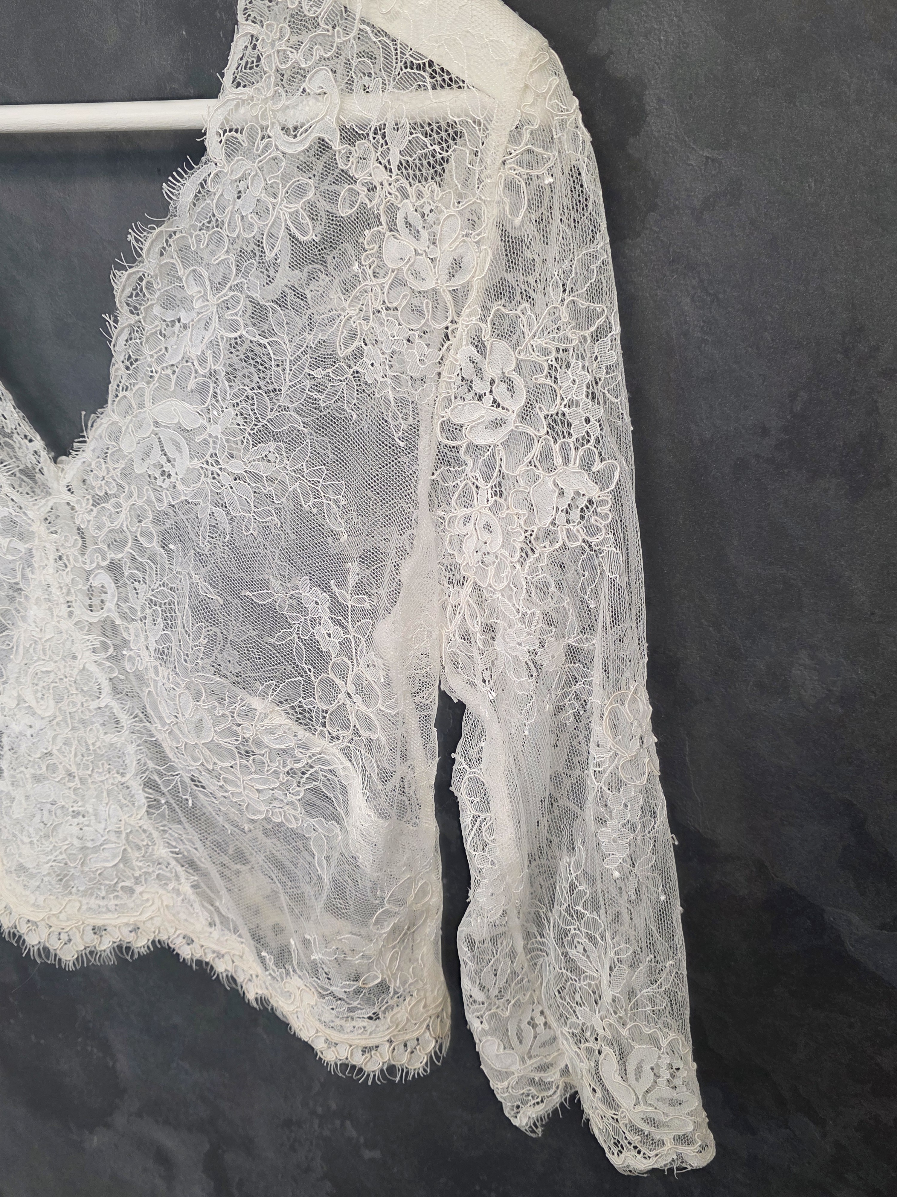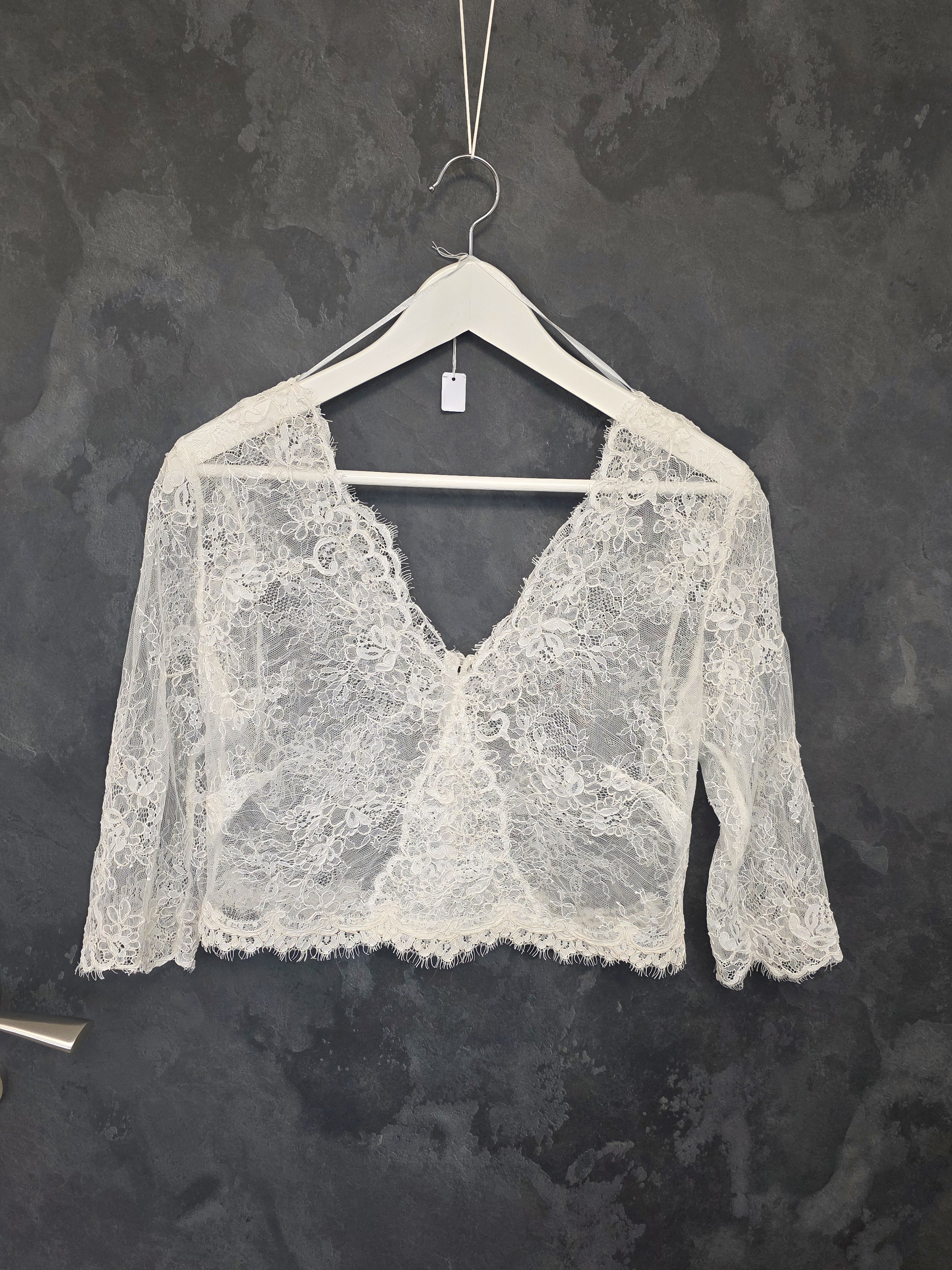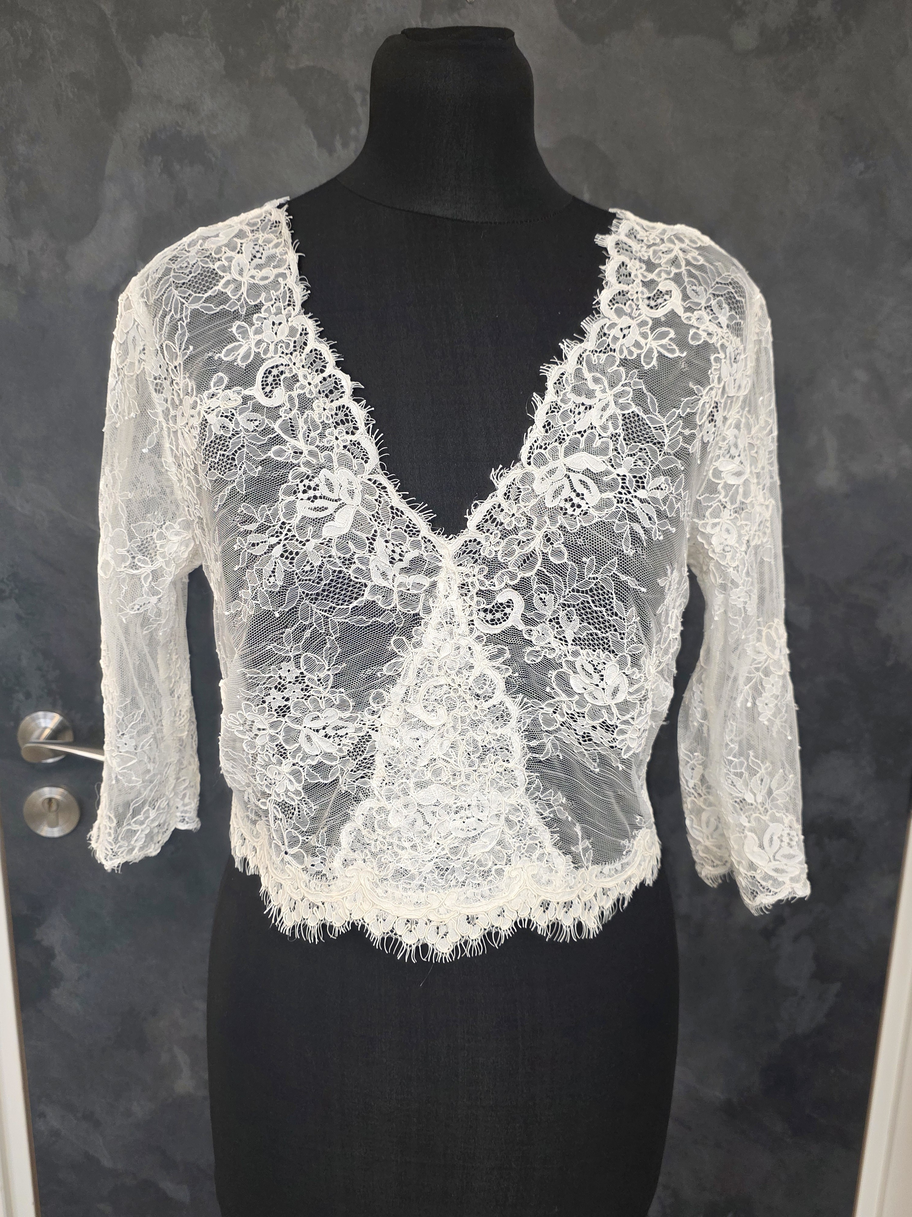 Top de mariée en dentelle ivoire délicate, au style romantique et féminin.