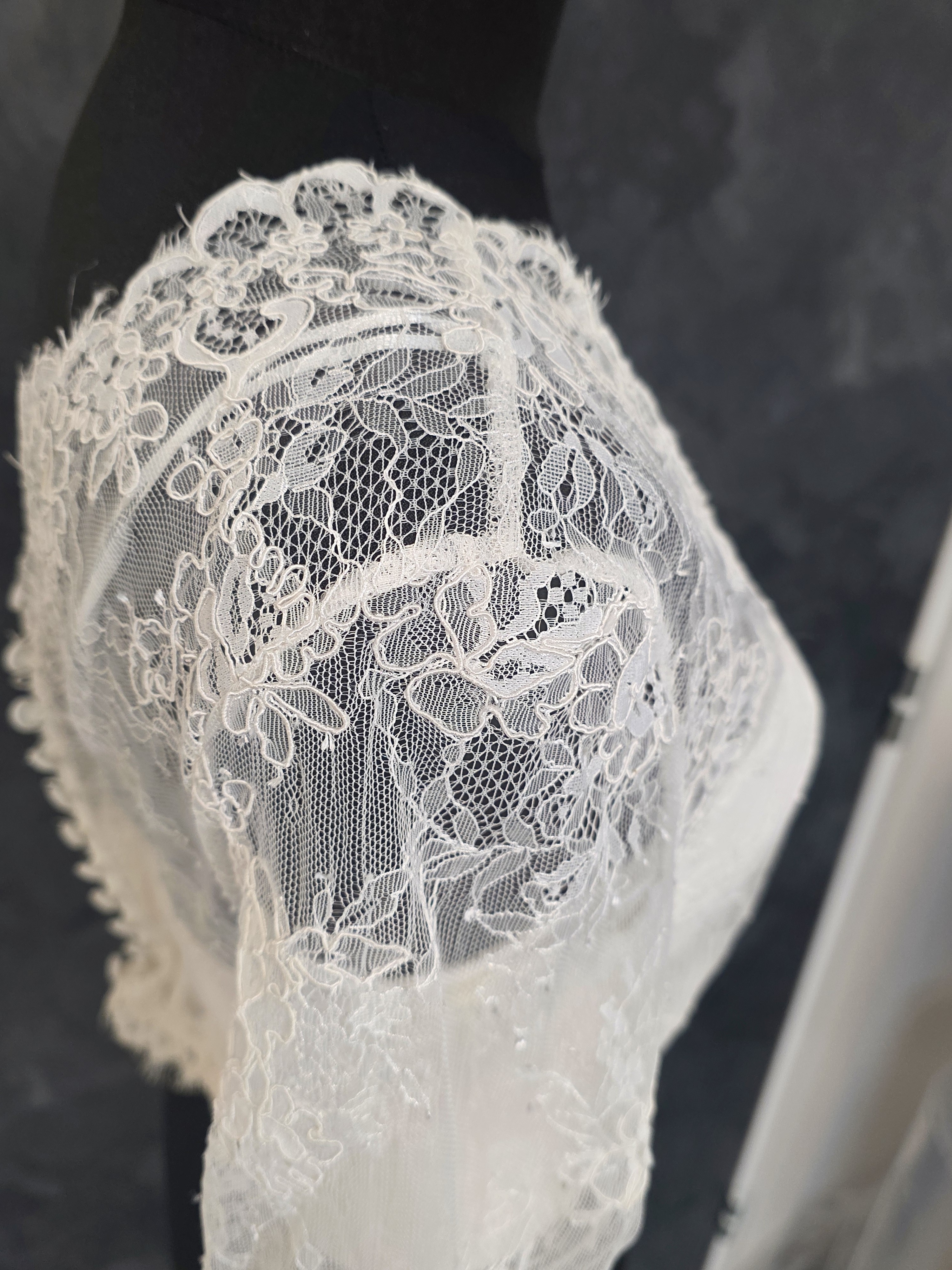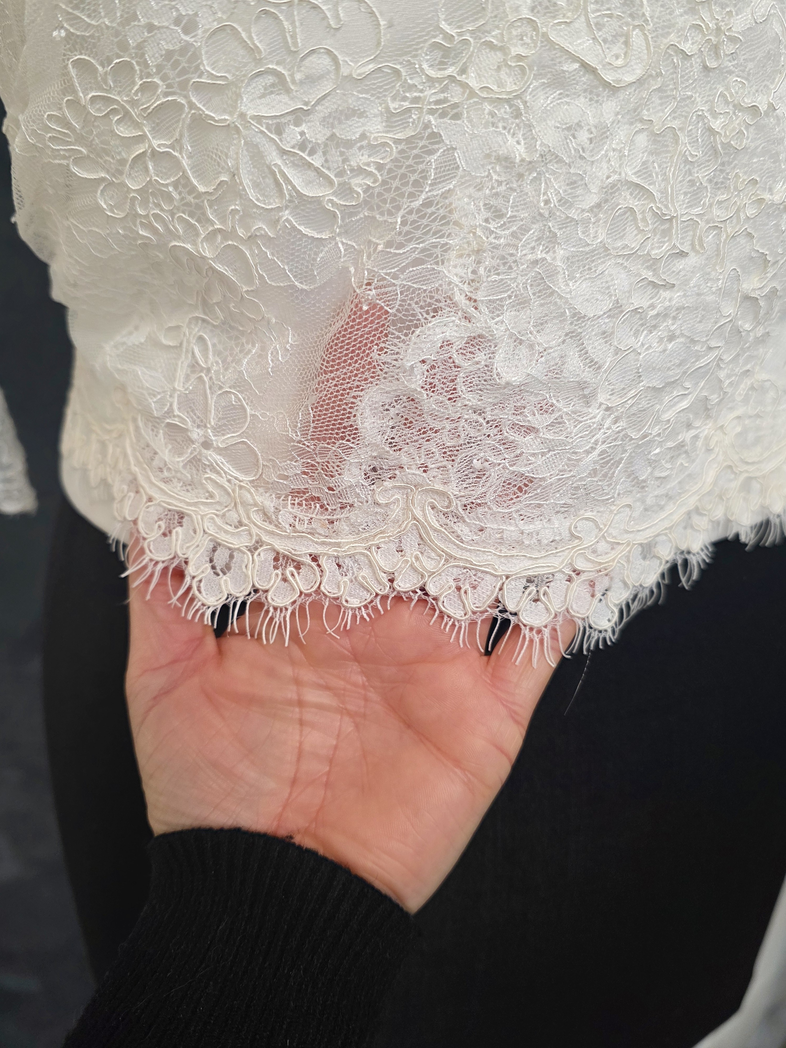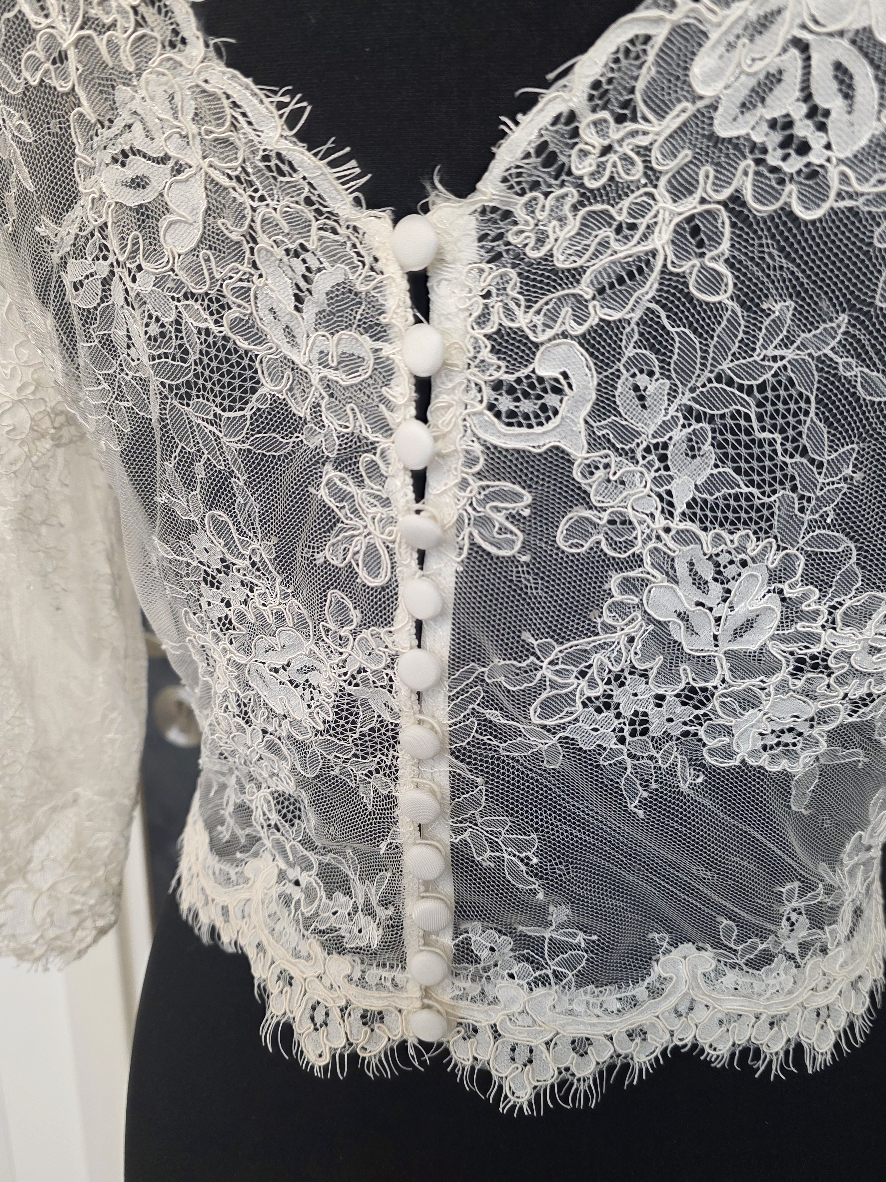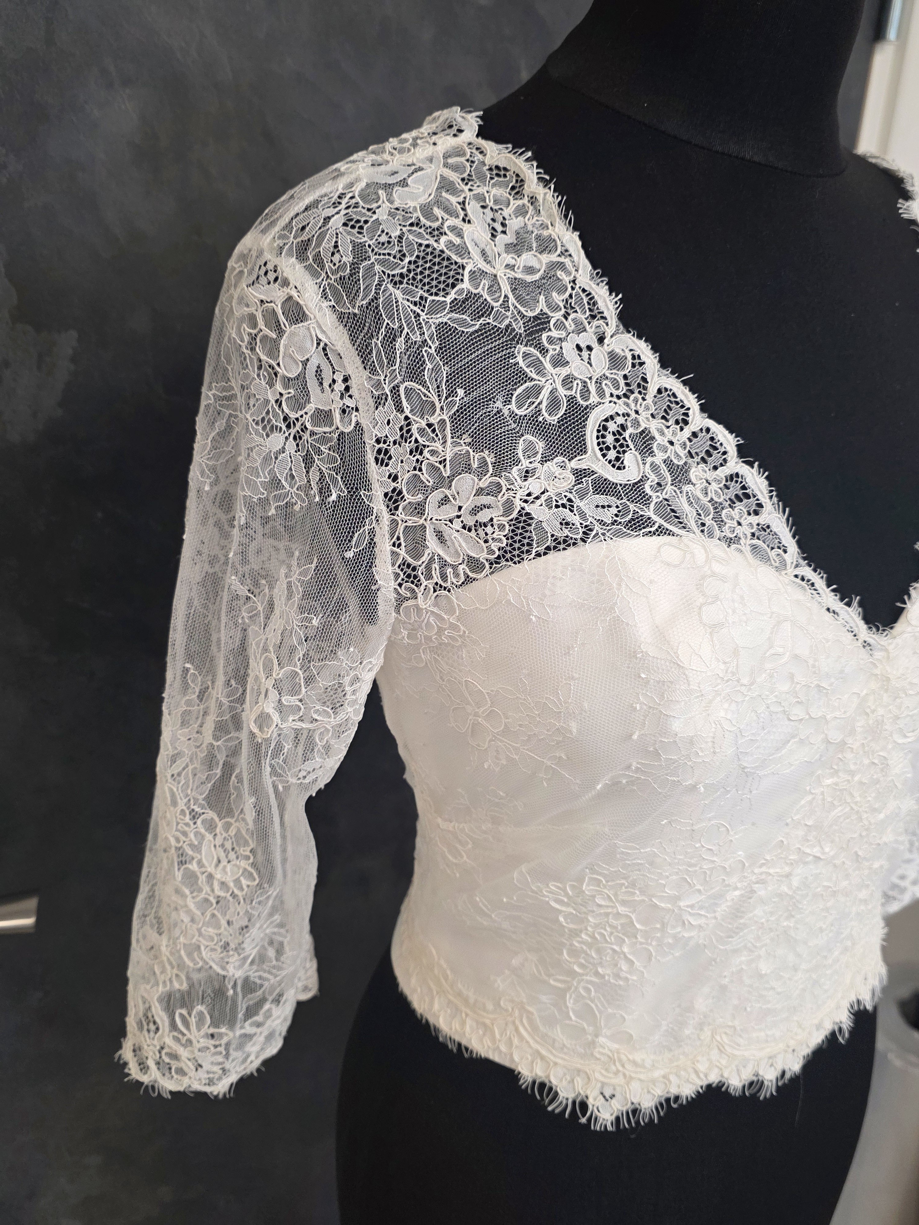 Top de mariée en dentelle ivoire délicate, au style romantique et féminin.