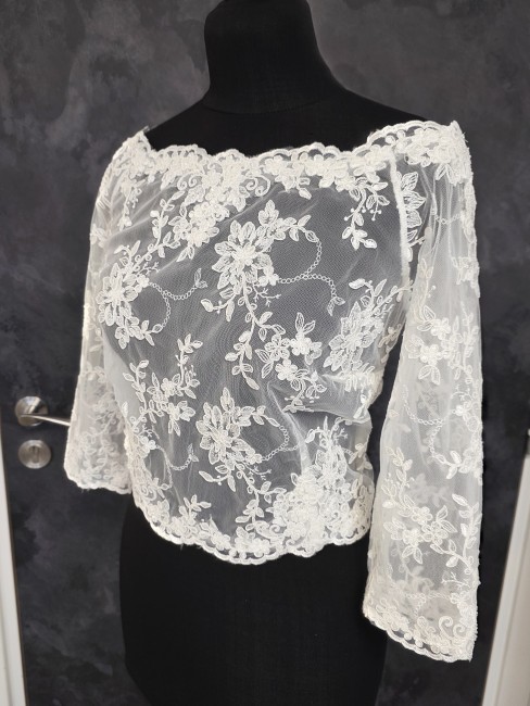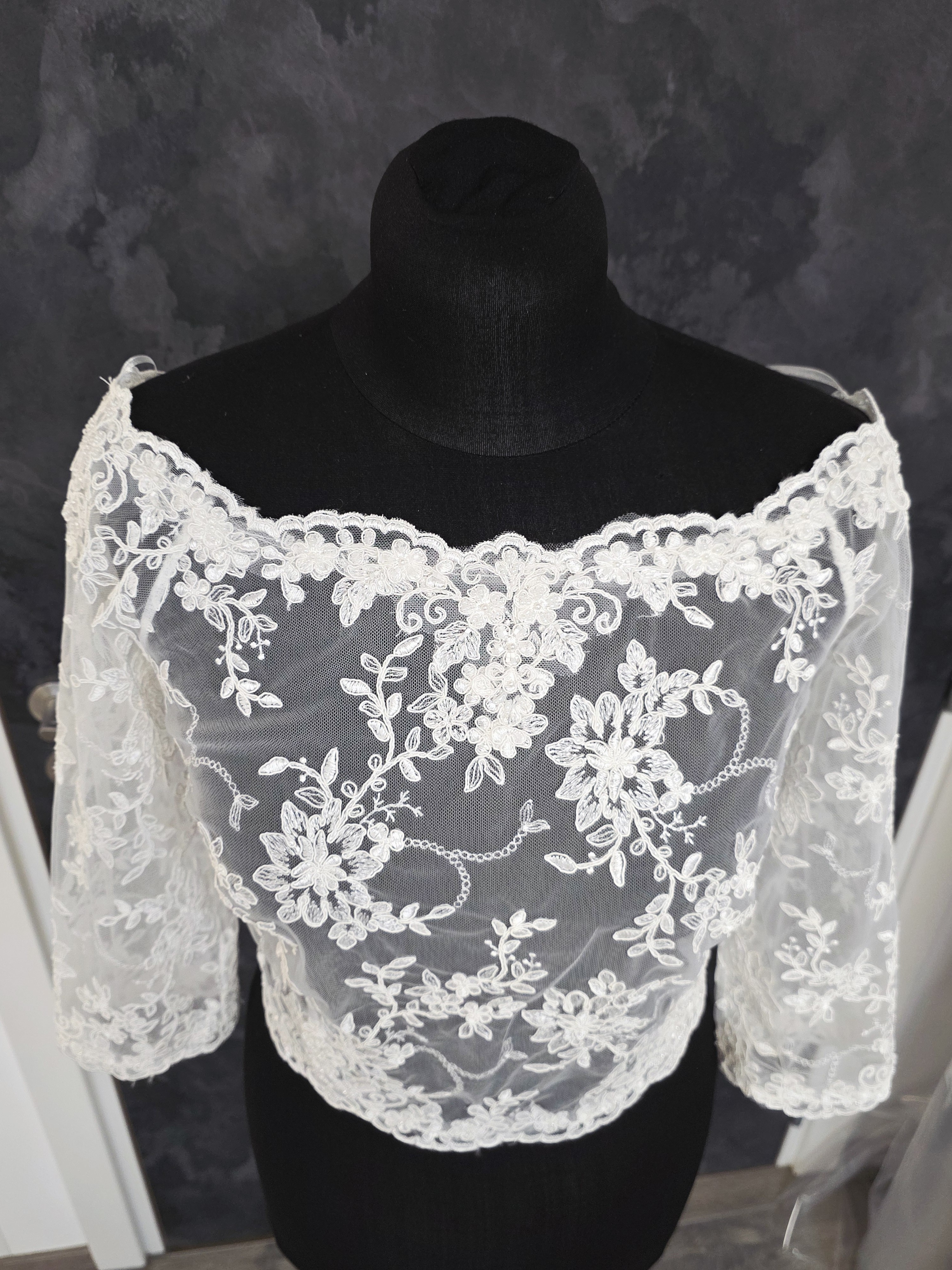 Sublime top de mariée en dentelle ivoire clair, élégant et romantique, parfait pour accompagner une jupe de mariée ou transformer une robe simple.