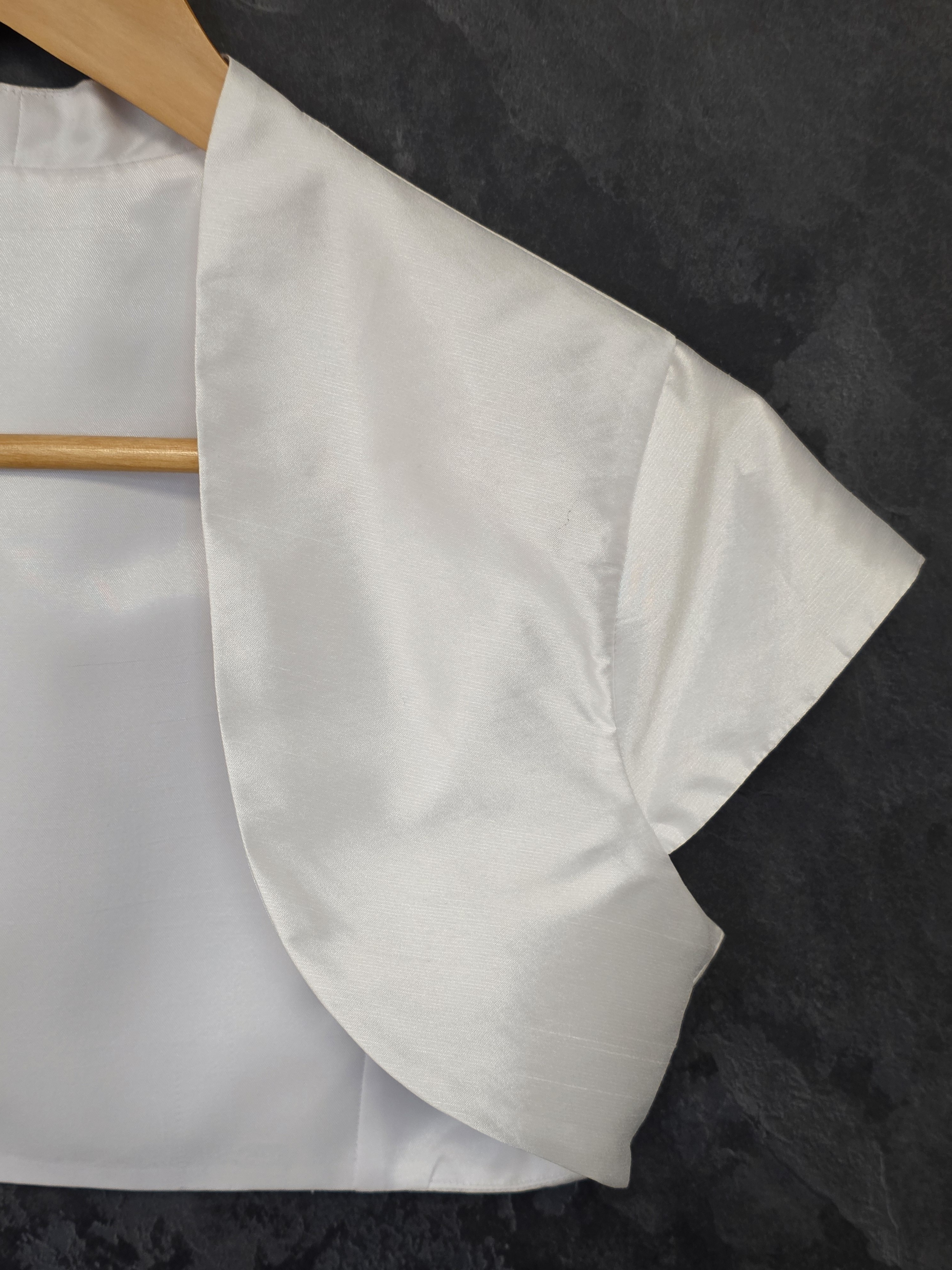 Bolero en taffetas blanc pour mariée , coupe courte , taille 38